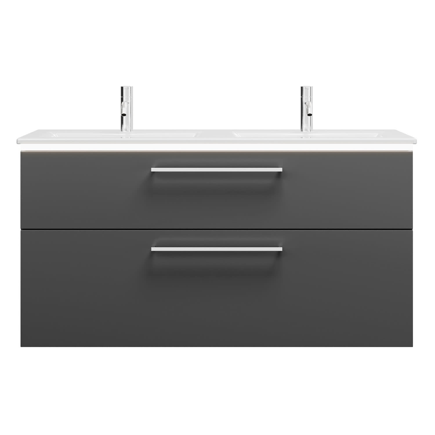 burgbad Eqio Doppelwaschtischkombination mit Keramik-Doppelwaschtisch Slim und LED-Beleuchtung, 122 cm, mit Stangengriff P95