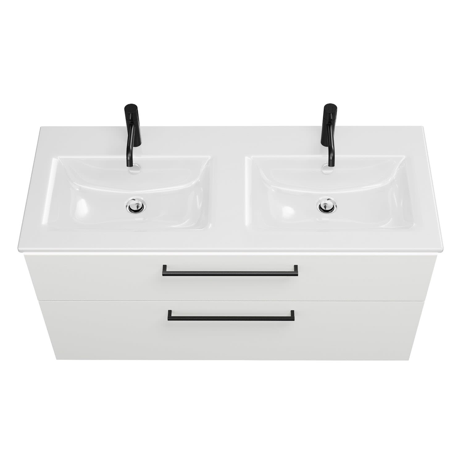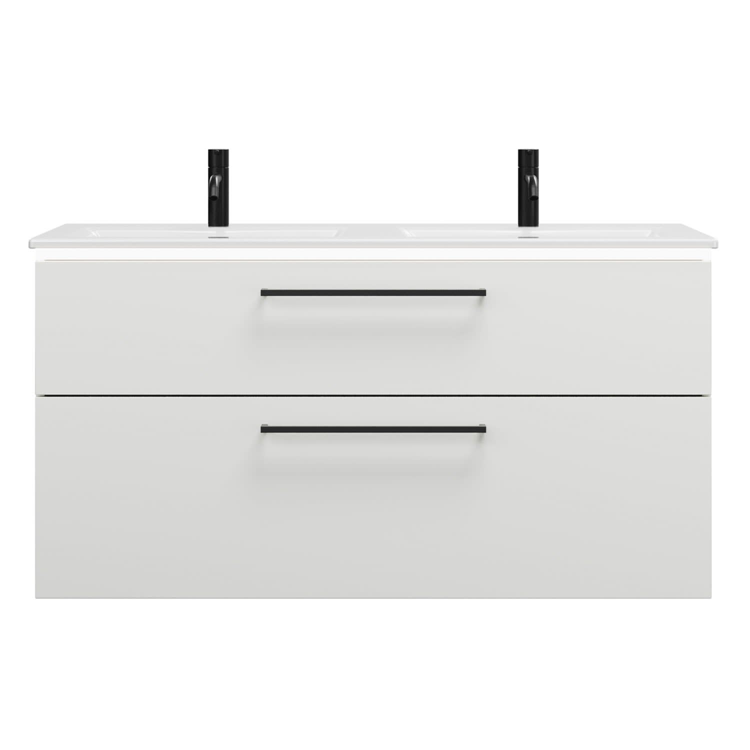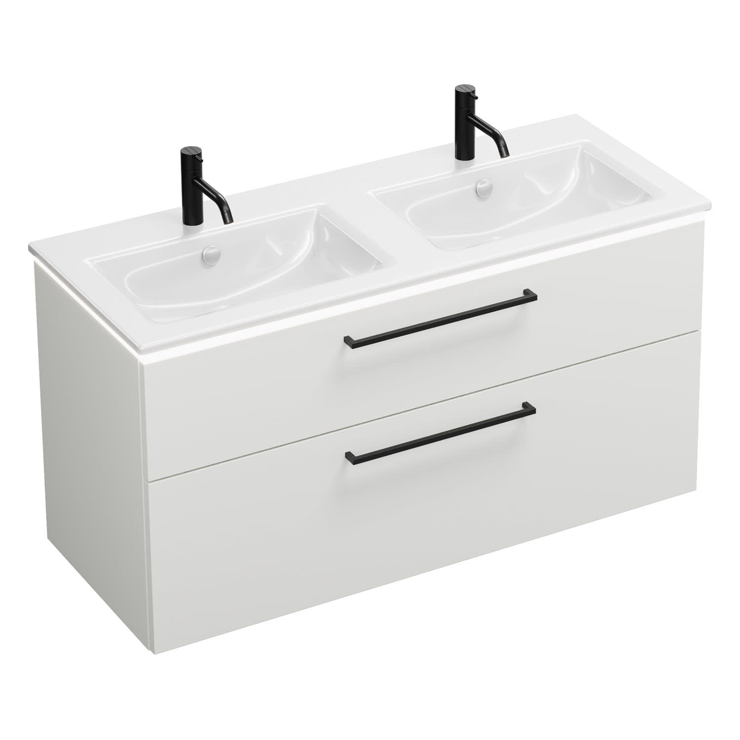 burgbad Eqio Doppelwaschtischkombination mit Keramik-Doppelwaschtisch Slim und LED-Beleuchtung, 122 cm, mit Stangengriff G0234
