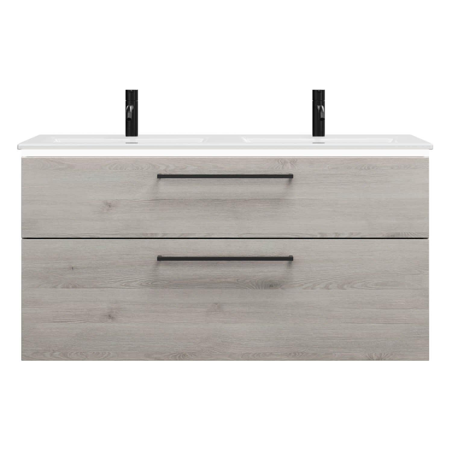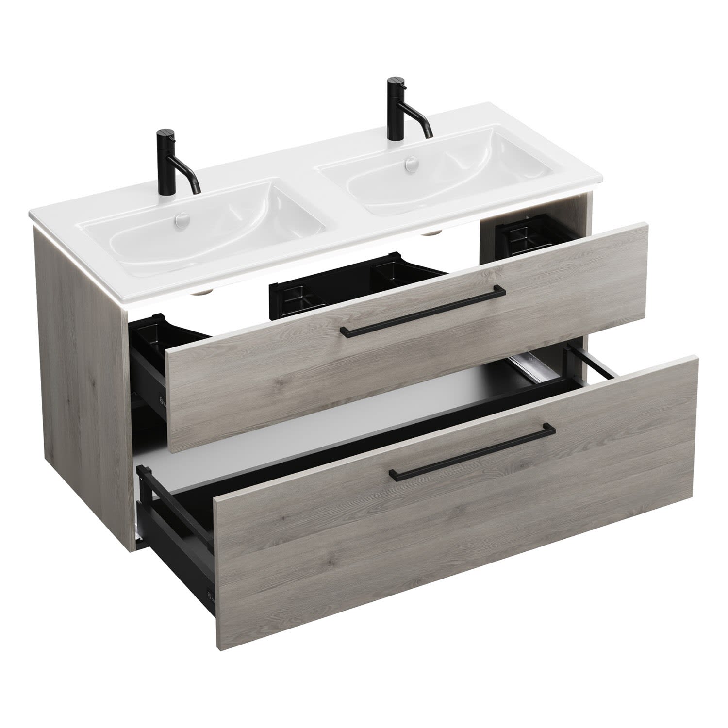 burgbad Eqio Doppelwaschtischkombination mit Keramik-Doppelwaschtisch Slim und LED-Beleuchtung, 122 cm, mit Stangengriff G0234