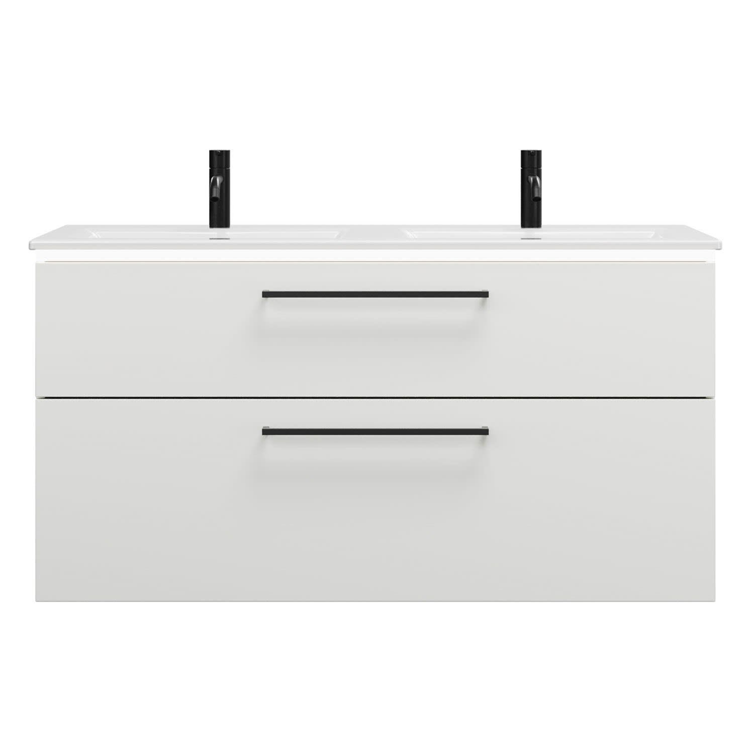 burgbad Eqio Doppelwaschtischkombination mit Keramik-Doppelwaschtisch Slim und LED-Beleuchtung, 122 cm, mit Stangengriff G0234
