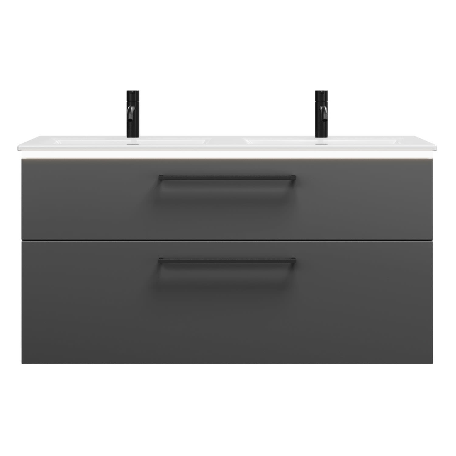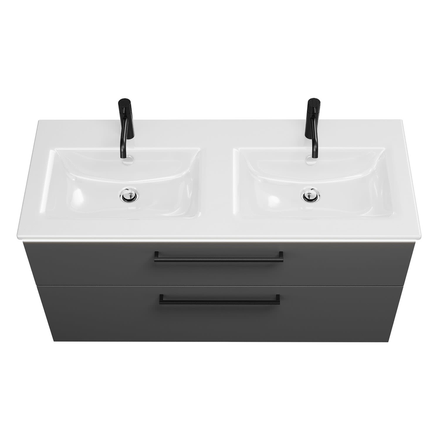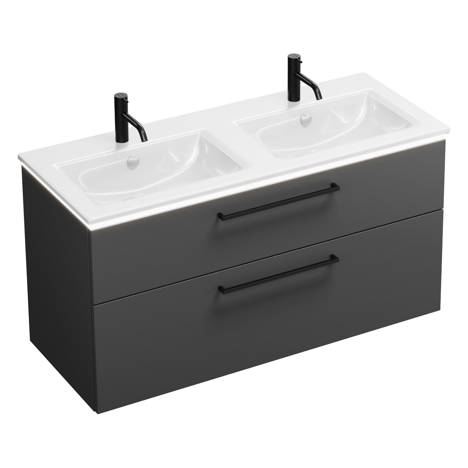 burgbad Eqio Doppelwaschtischkombination mit Keramik-Doppelwaschtisch Slim und LED-Beleuchtung, 122 cm, mit Stangengriff G0234