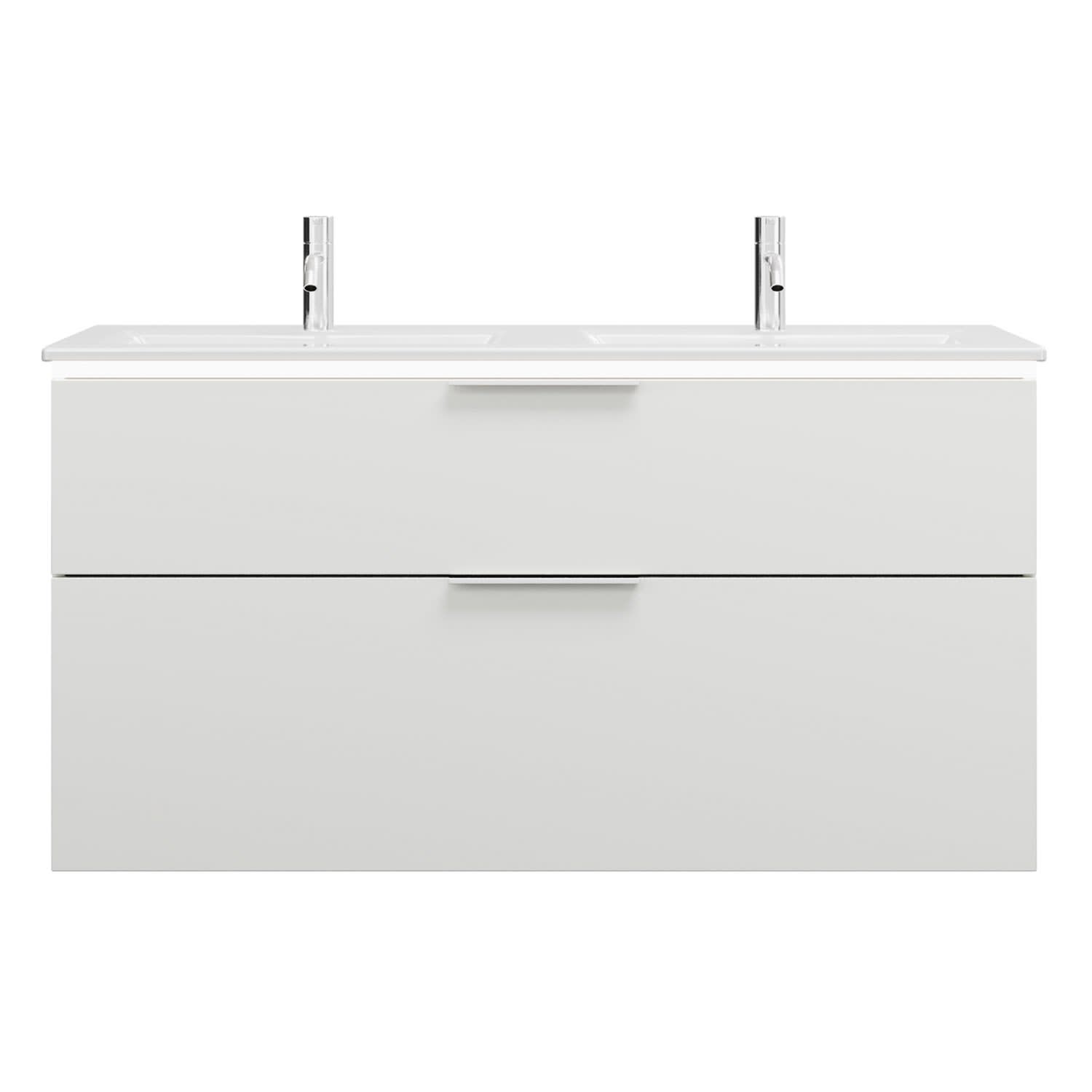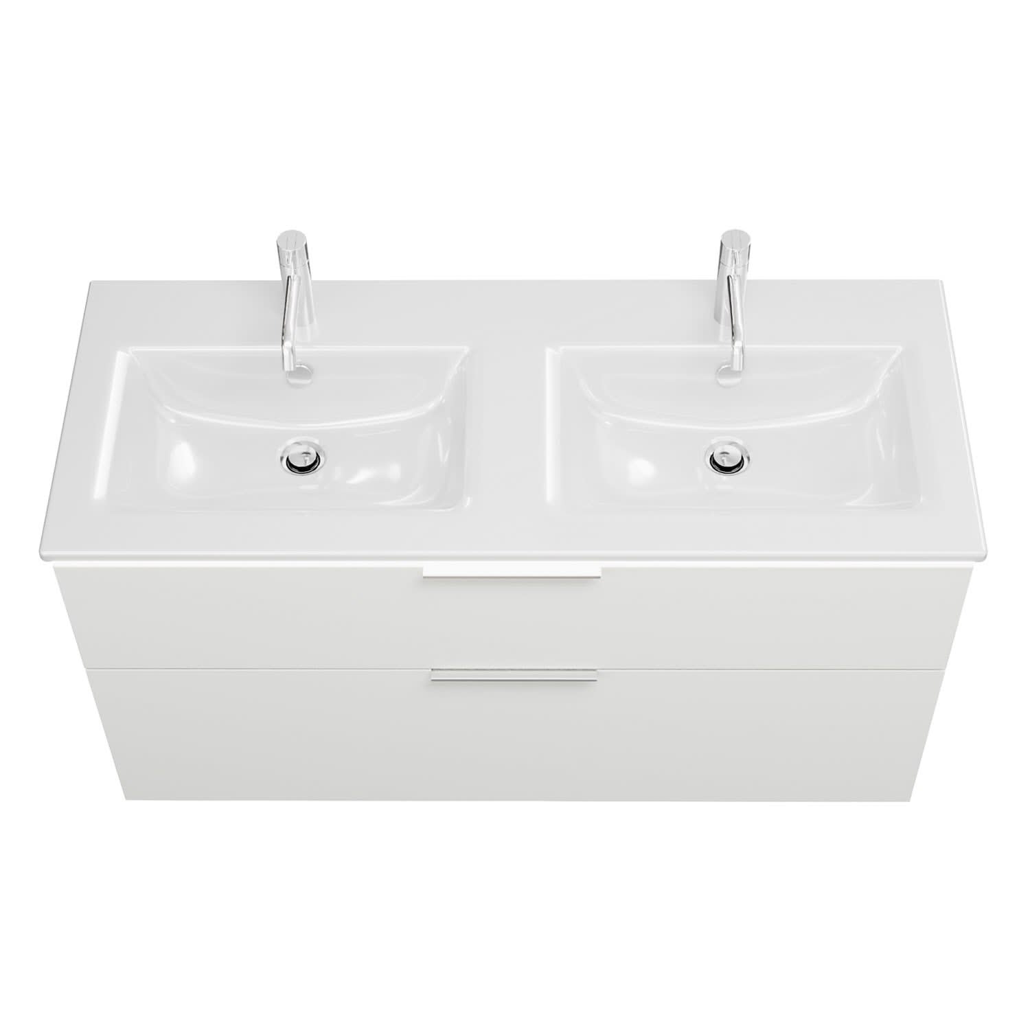 burgbad Eqio Doppelwaschtischkombination mit Keramik-Doppelwaschtisch Slim und LED-Beleuchtung, 122 cm, mit Griff G0146