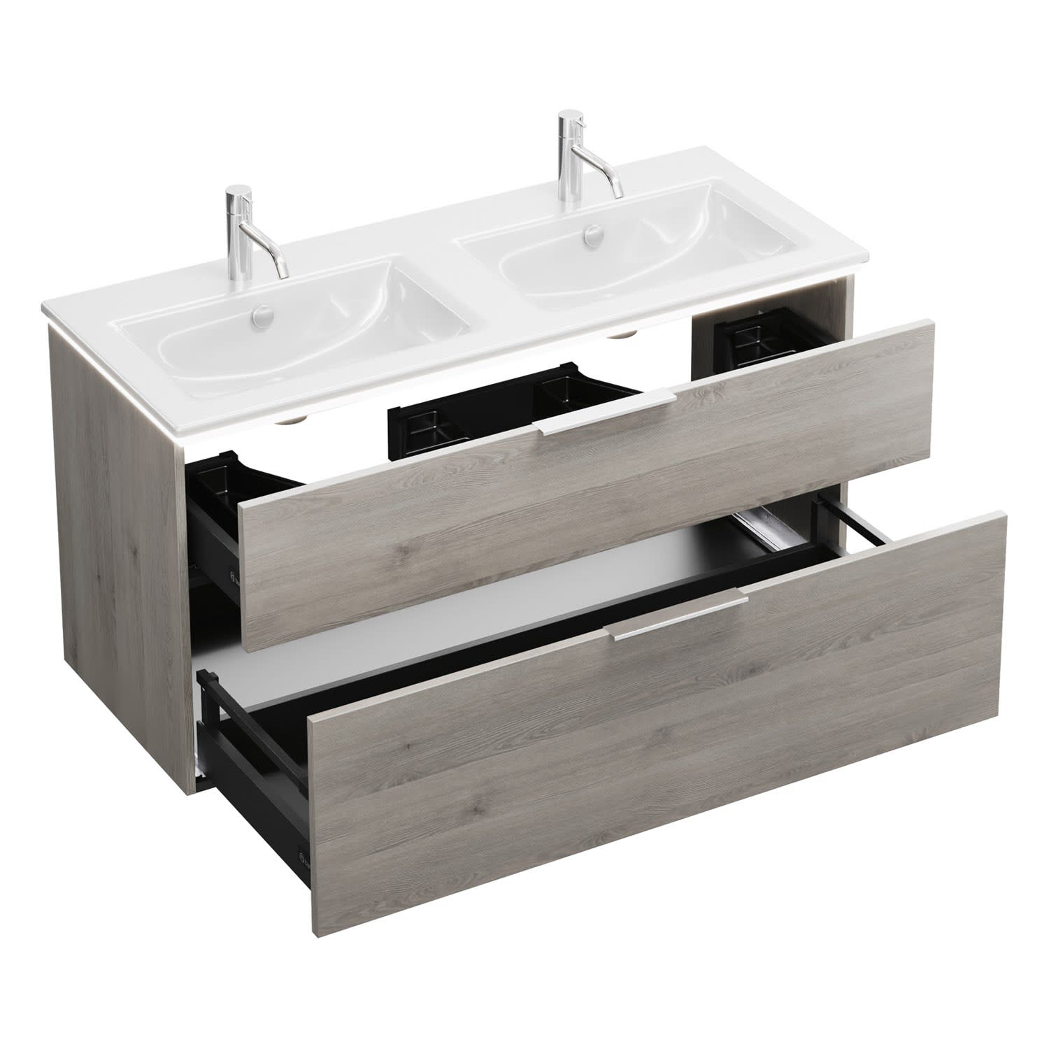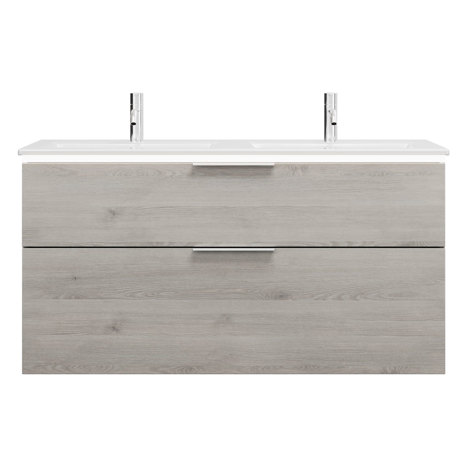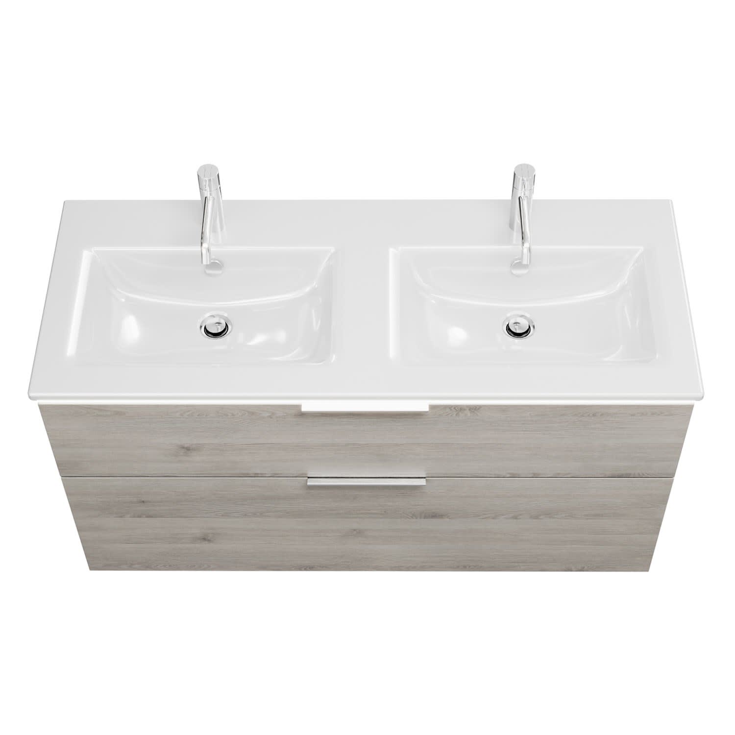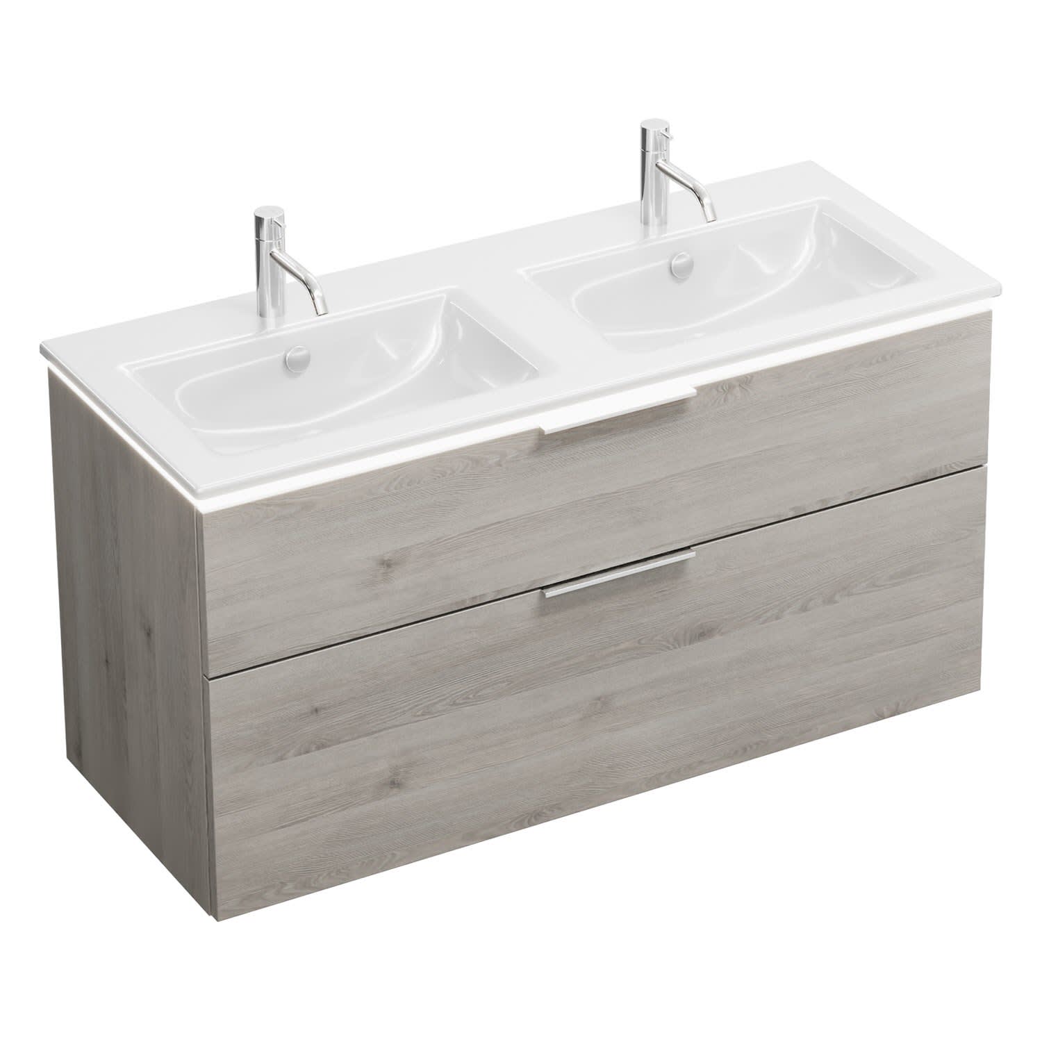 burgbad Eqio Doppelwaschtischkombination mit Keramik-Doppelwaschtisch Slim und LED-Beleuchtung, 122 cm, mit Griff G0146