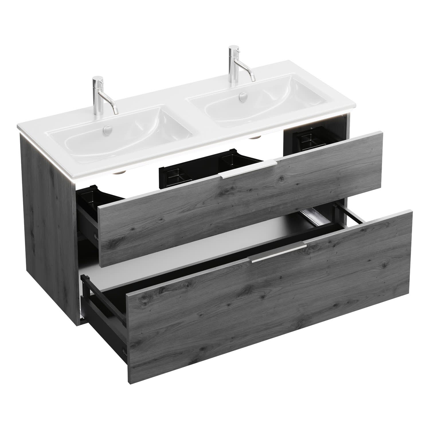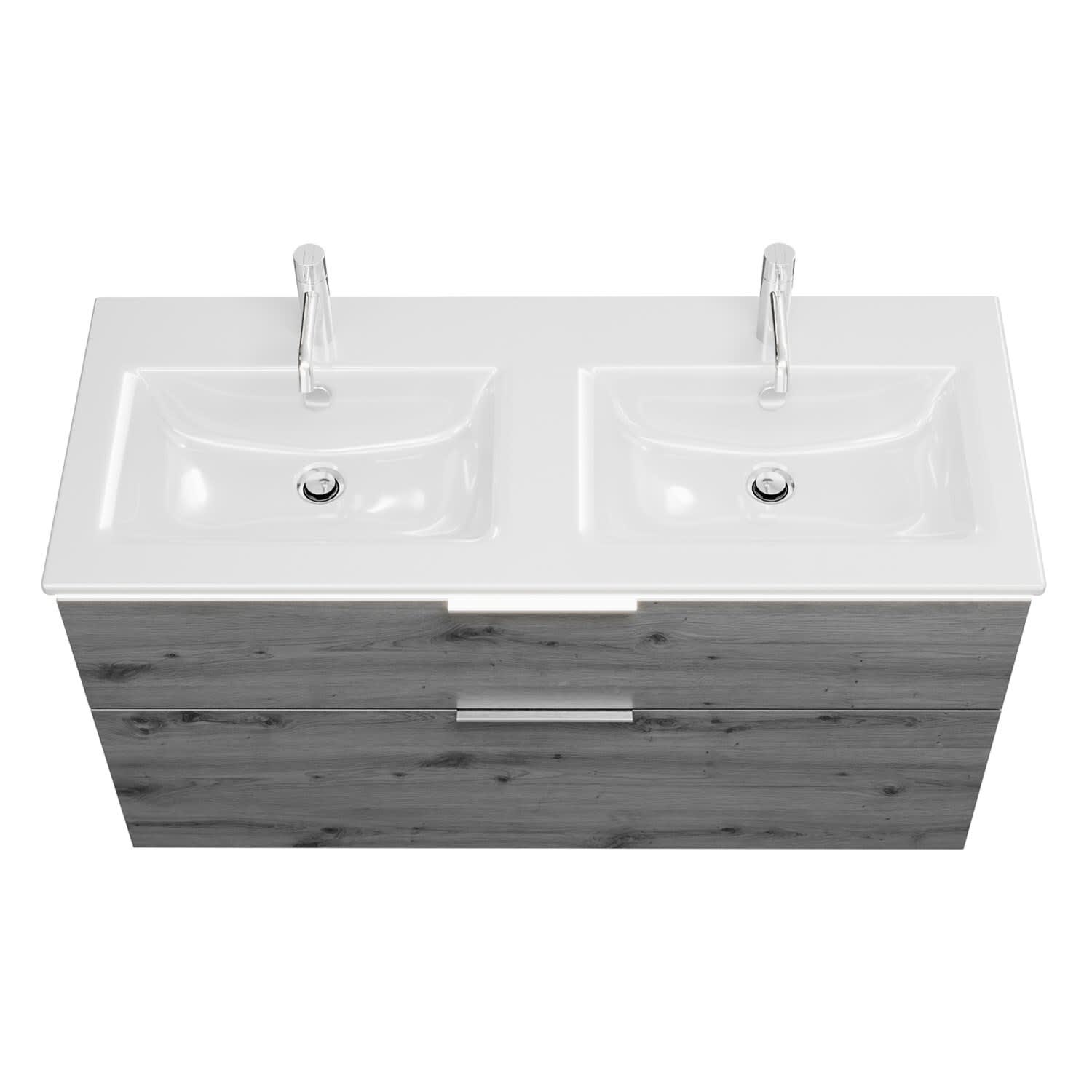 burgbad Eqio Doppelwaschtischkombination mit Keramik-Doppelwaschtisch Slim und LED-Beleuchtung, 122 cm, mit Griff G0146