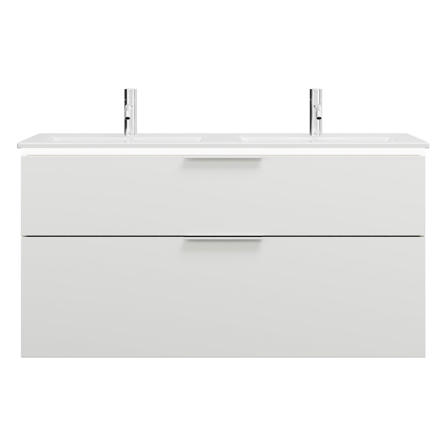 burgbad Eqio Doppelwaschtischkombination mit Keramik-Doppelwaschtisch Slim und LED-Beleuchtung, 122 cm, mit Griff G0146