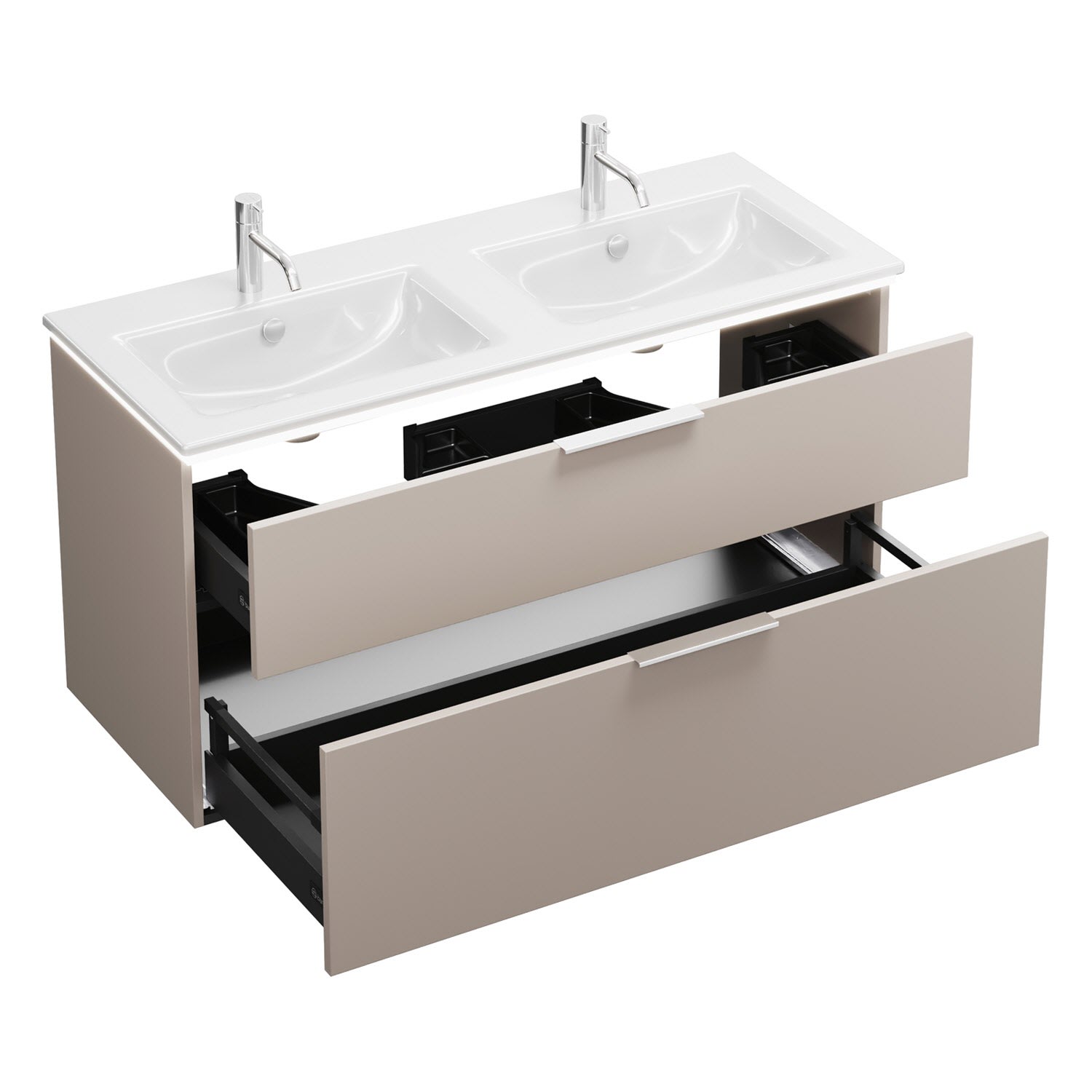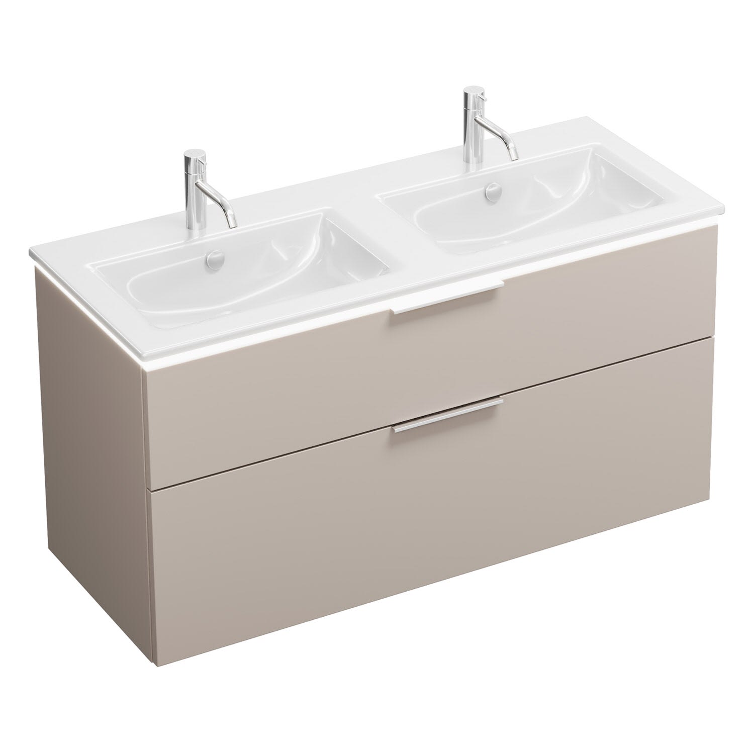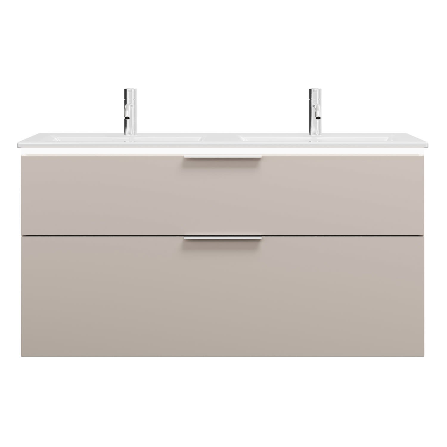 burgbad Eqio Doppelwaschtischkombination mit Keramik-Doppelwaschtisch Slim und LED-Beleuchtung, 122 cm, mit Griff G0146