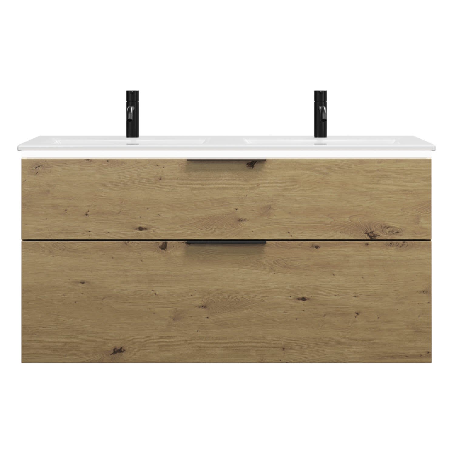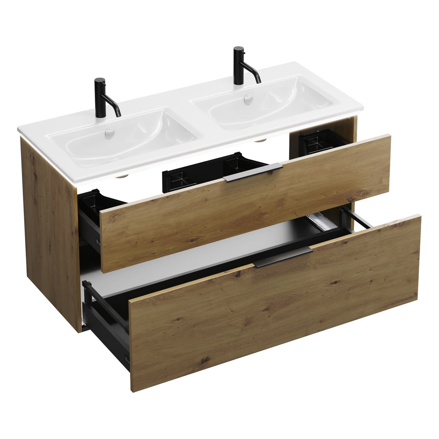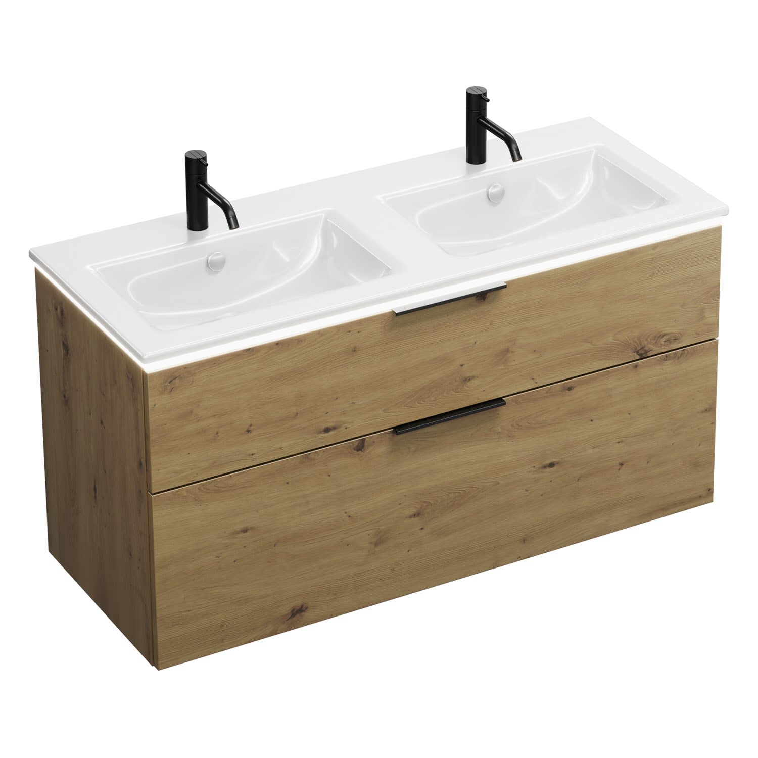 burgbad Eqio Doppelwaschtischkombination mit Keramik-Doppelwaschtisch Slim und LED-Beleuchtung, 122 cm, mit Griff G0200