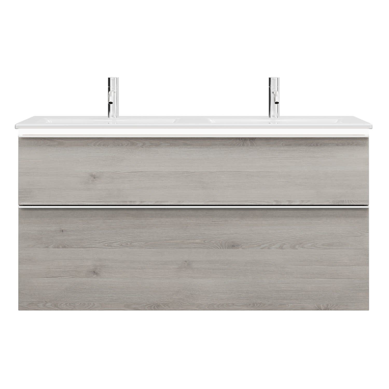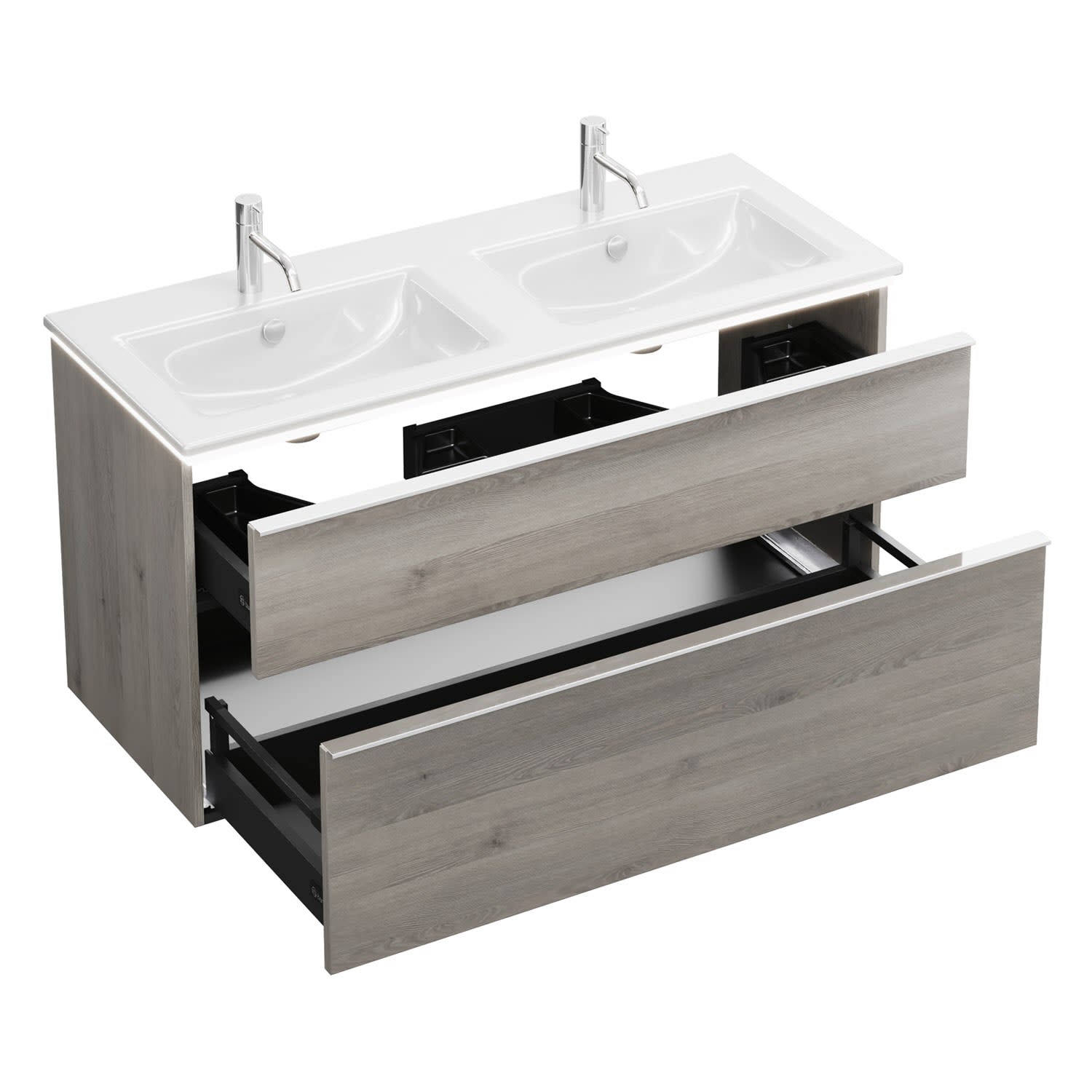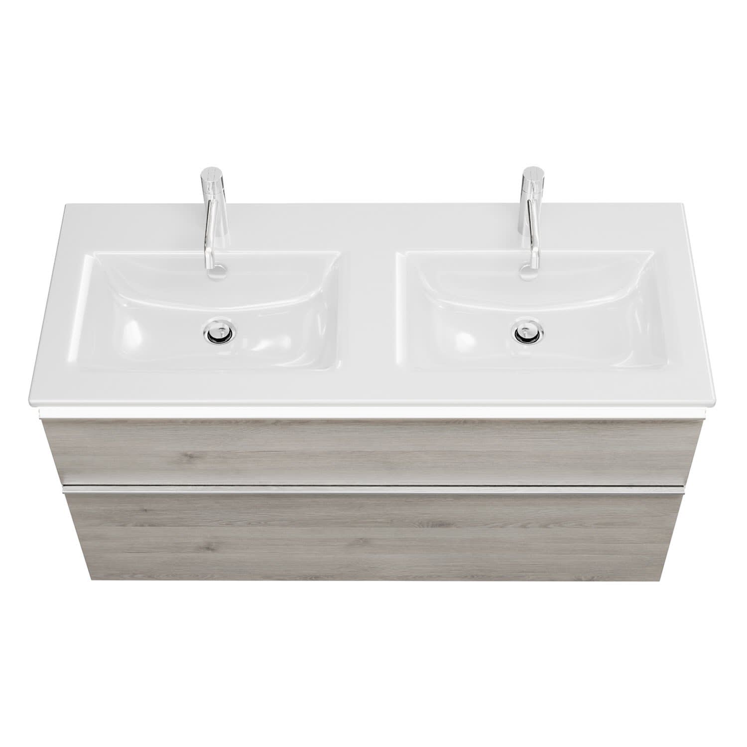 burgbad Eqio Doppelwaschtischkombination mit Keramik-Doppelwaschtisch Slim und LED-Beleuchtung, 122 cm, mit Griffleiste G0251