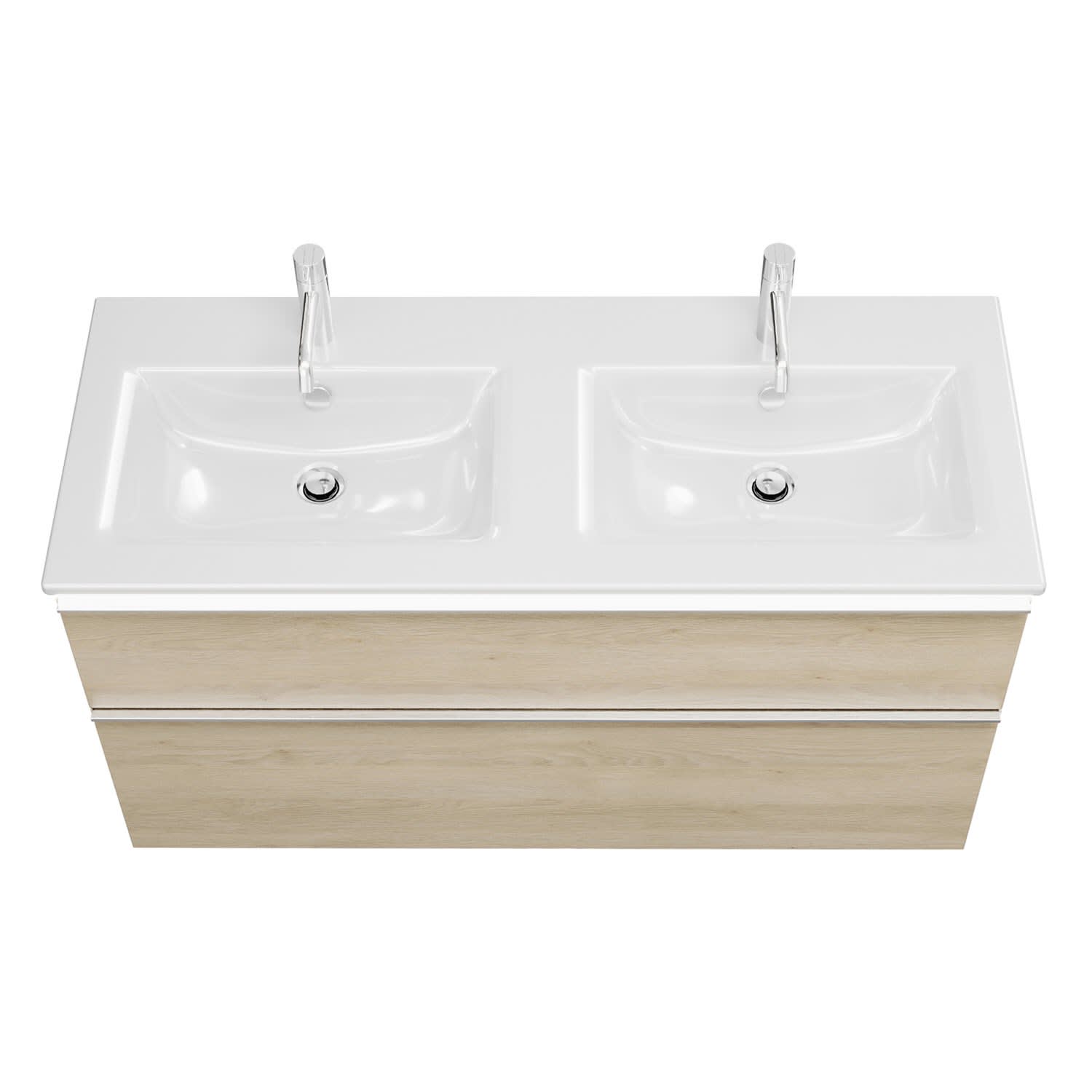 burgbad Eqio Doppelwaschtischkombination mit Keramik-Doppelwaschtisch Slim und LED-Beleuchtung, 122 cm, mit Griffleiste G0251