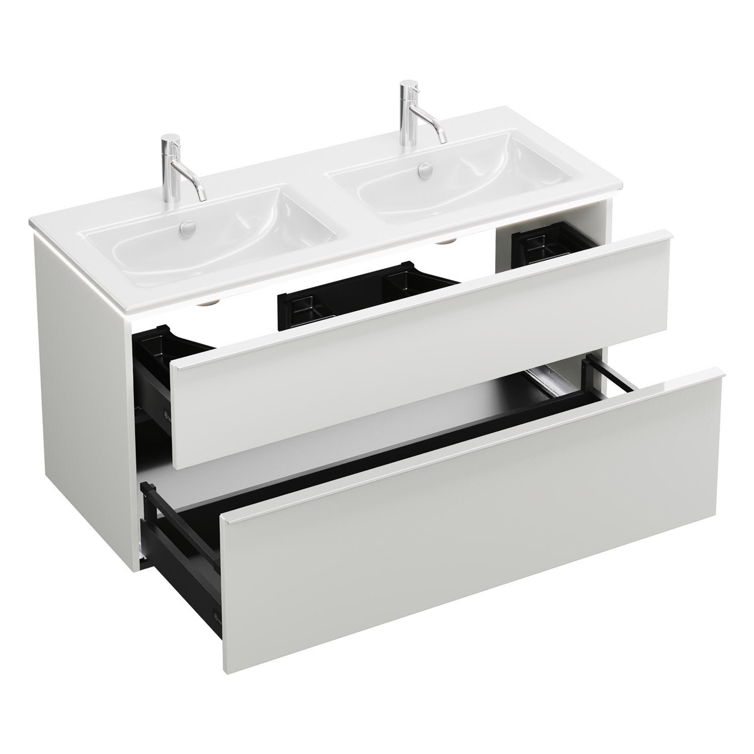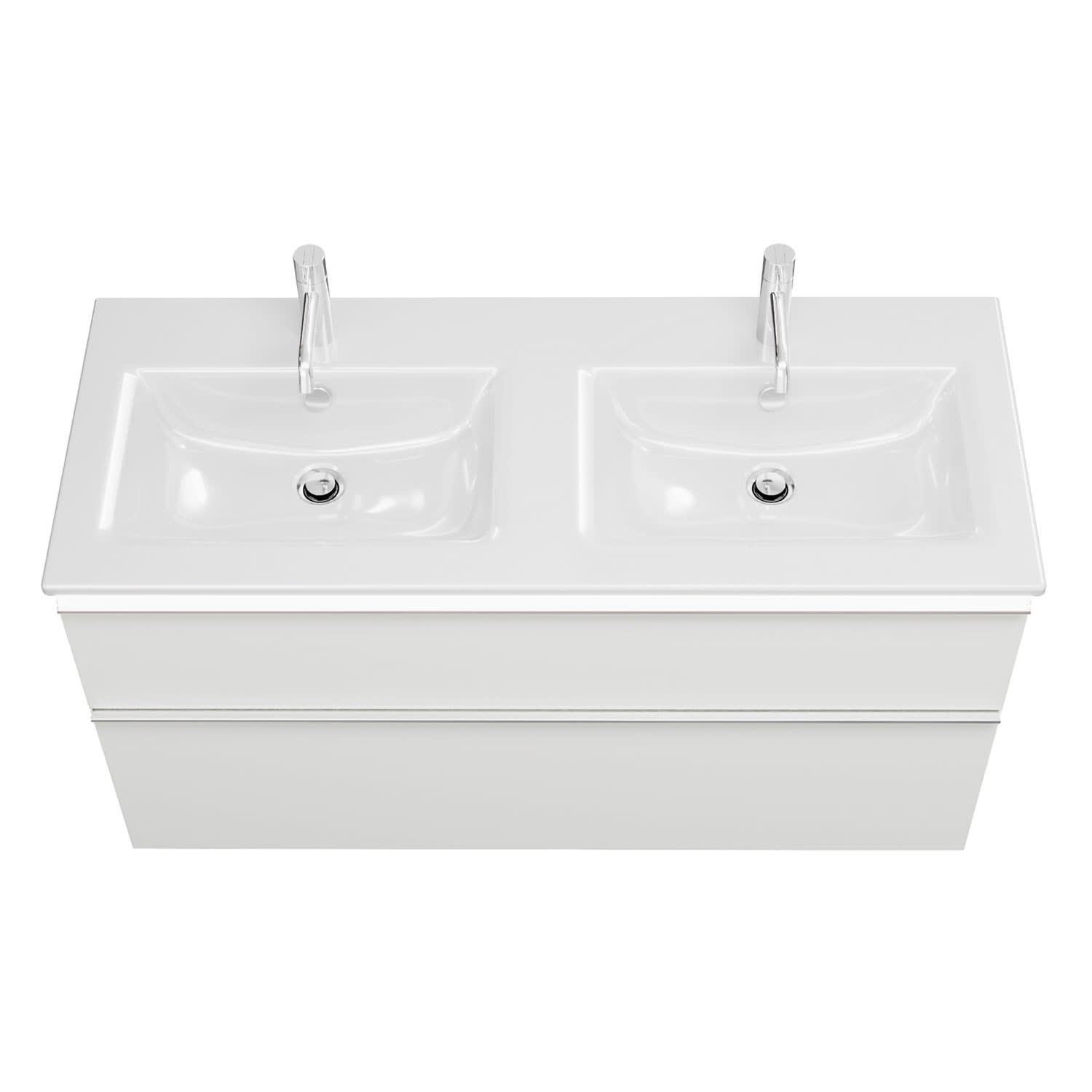 burgbad Eqio Doppelwaschtischkombination mit Keramik-Doppelwaschtisch Slim und LED-Beleuchtung, 122 cm, mit Griffleiste G0251