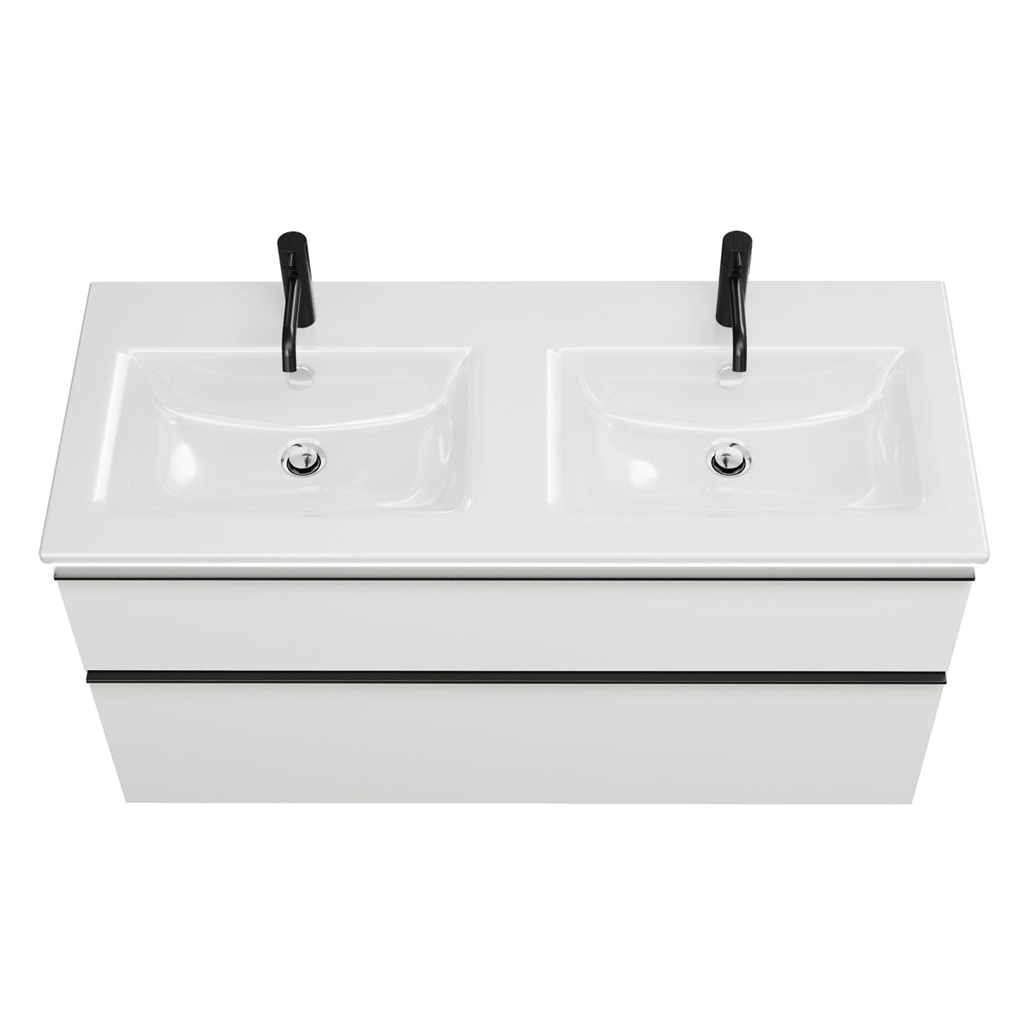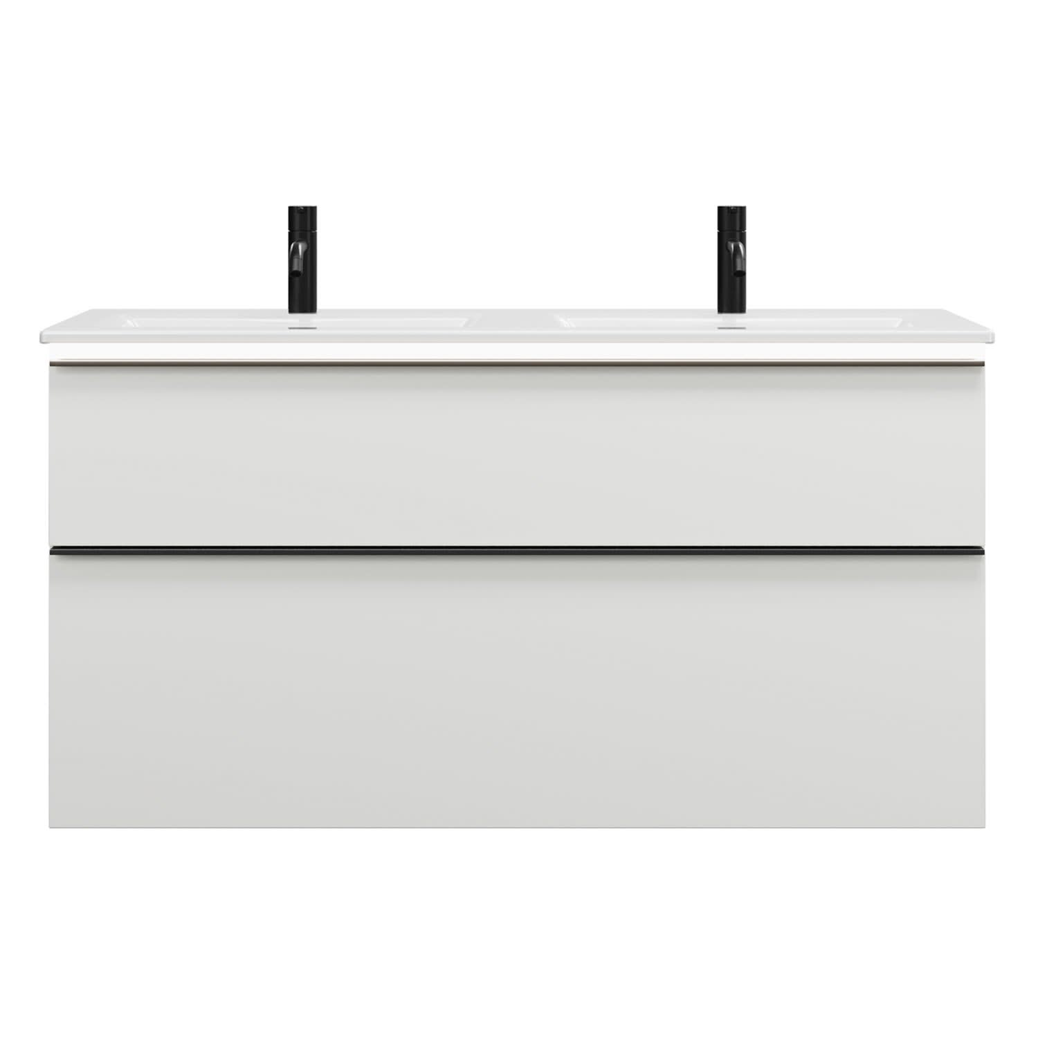burgbad Eqio Doppelwaschtischkombination mit Keramik-Doppelwaschtisch Slim und LED-Beleuchtung, 122 cm, mit Griffleiste G0252