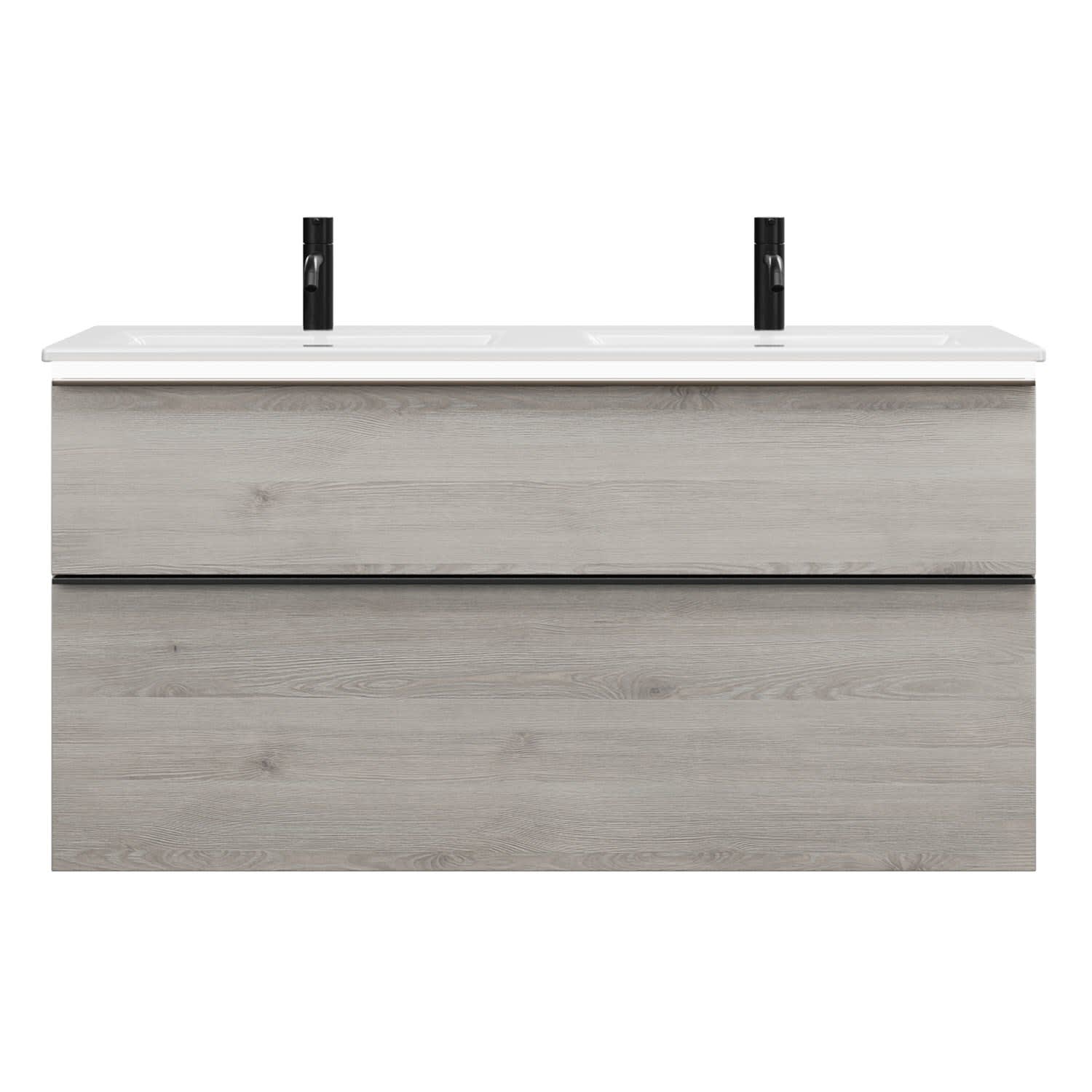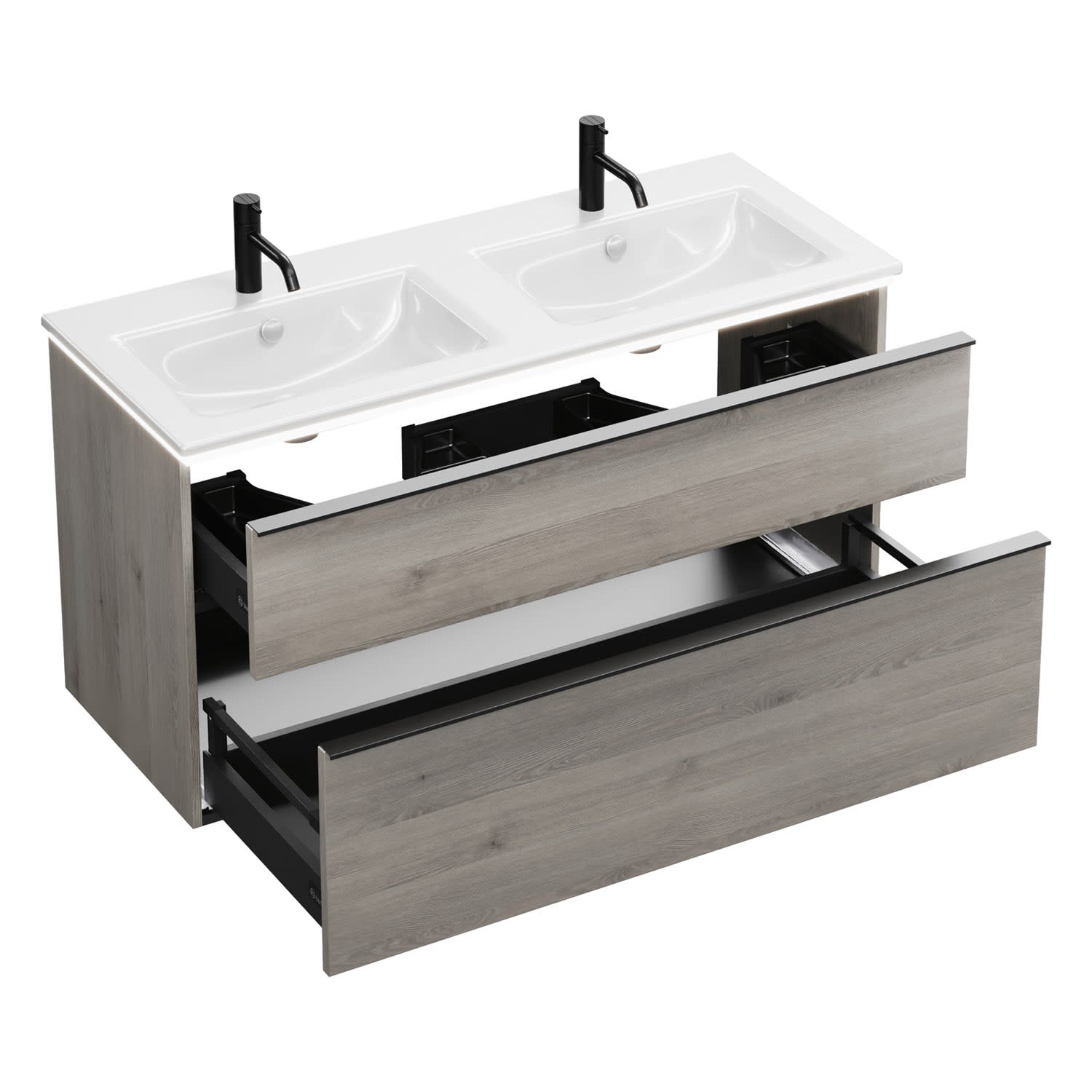 burgbad Eqio Doppelwaschtischkombination mit Keramik-Doppelwaschtisch Slim und LED-Beleuchtung, 122 cm, mit Griffleiste G0252