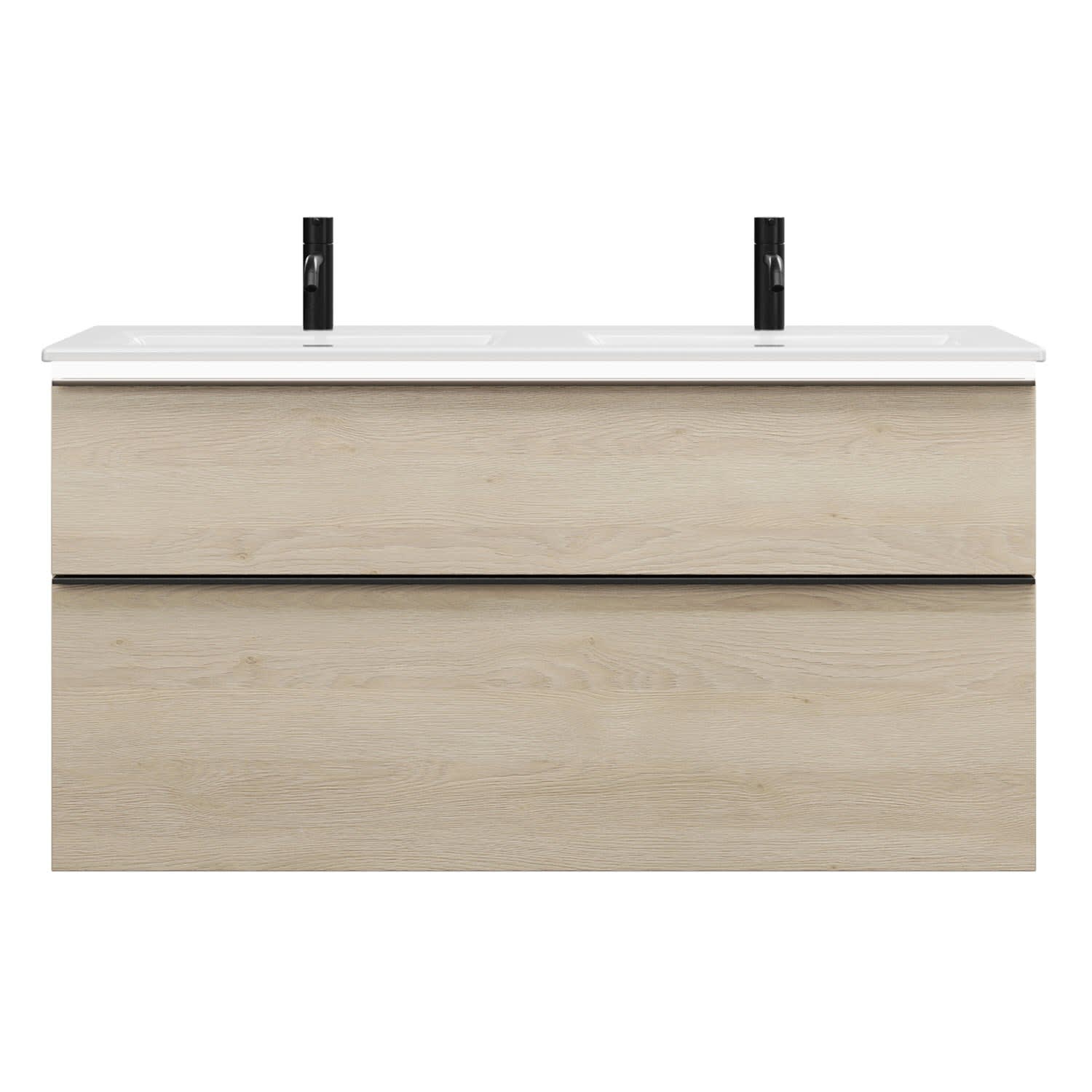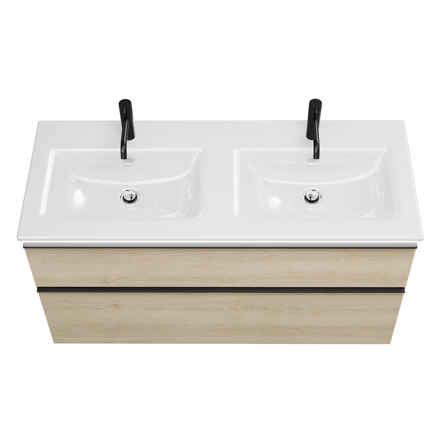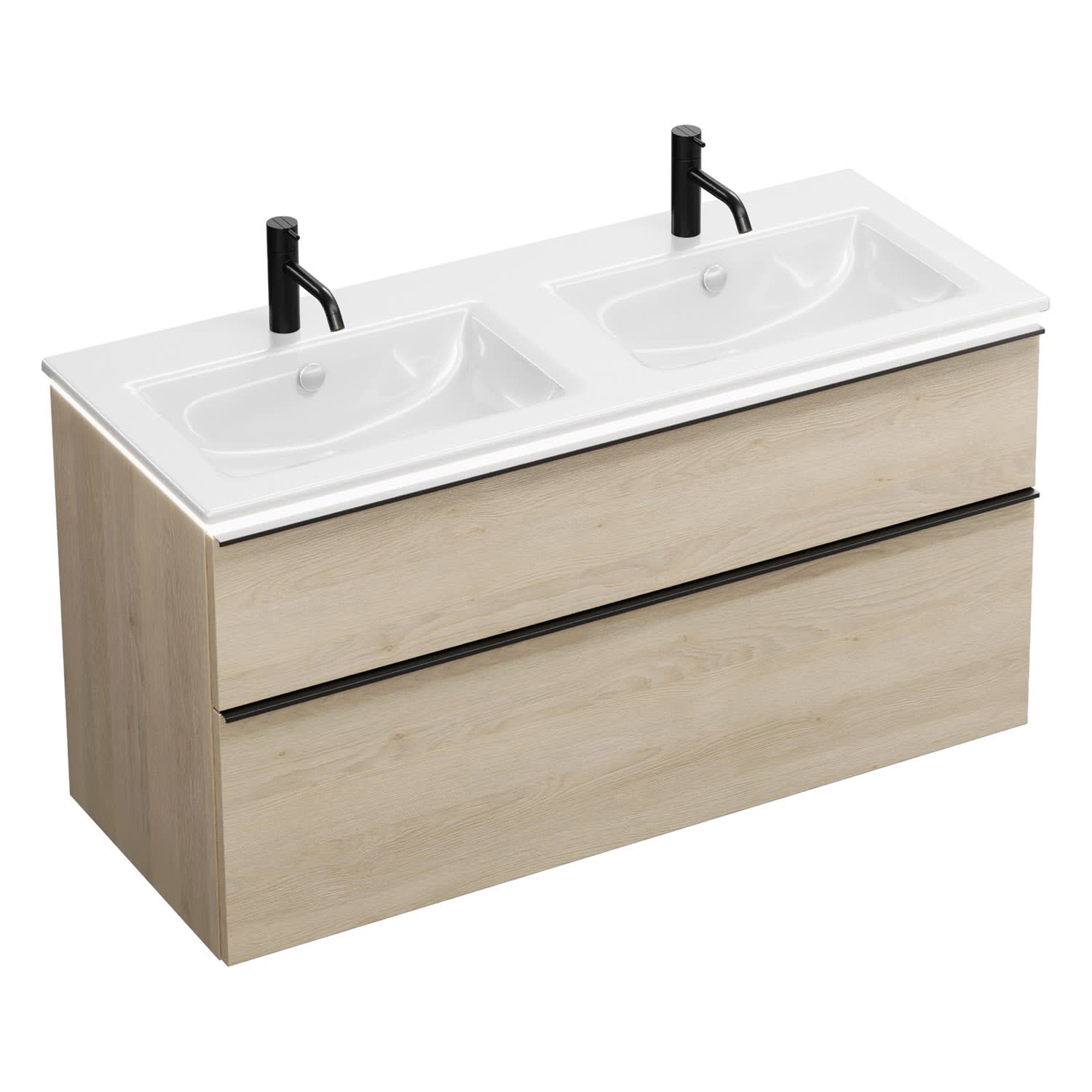 burgbad Eqio Doppelwaschtischkombination mit Keramik-Doppelwaschtisch Slim und LED-Beleuchtung, 122 cm, mit Griffleiste G0252