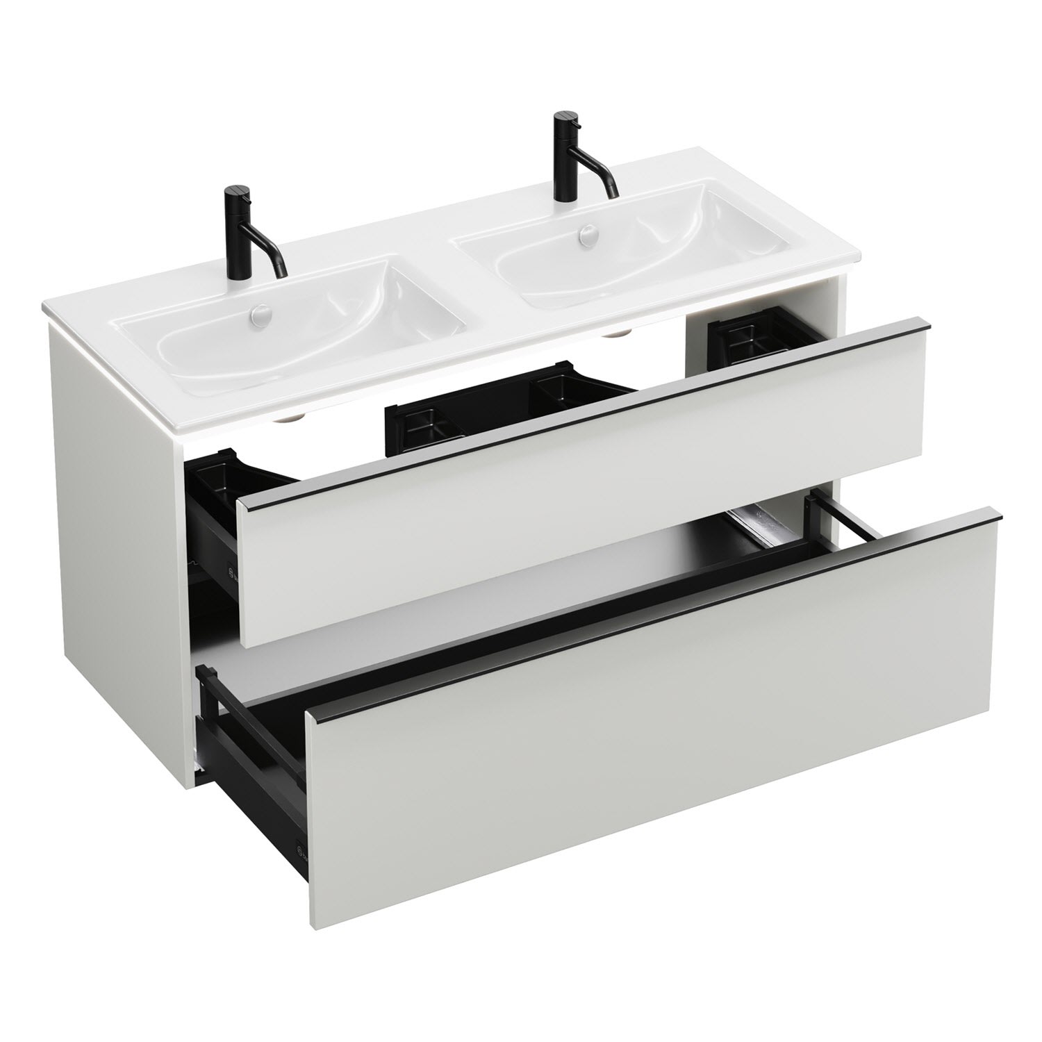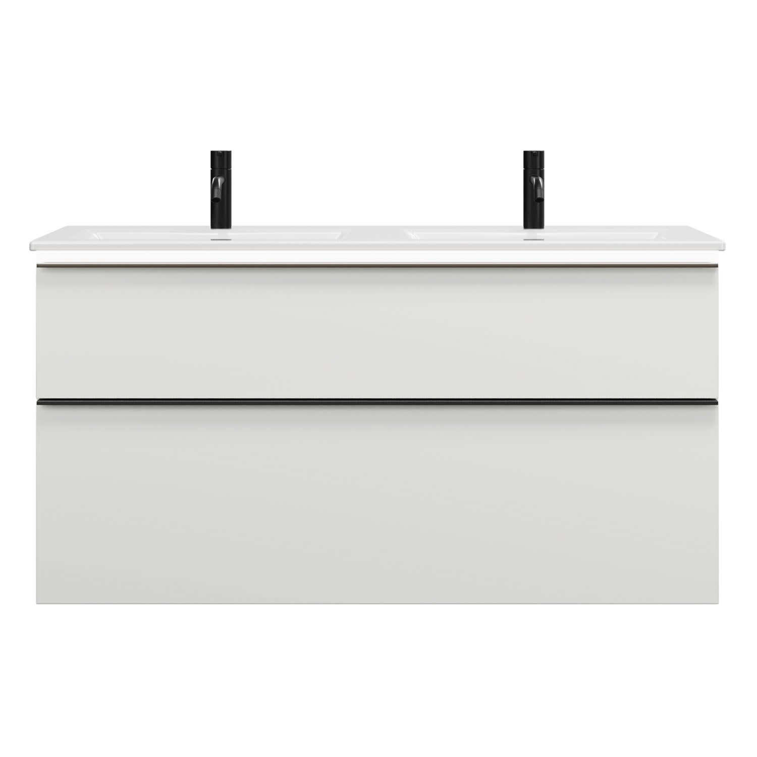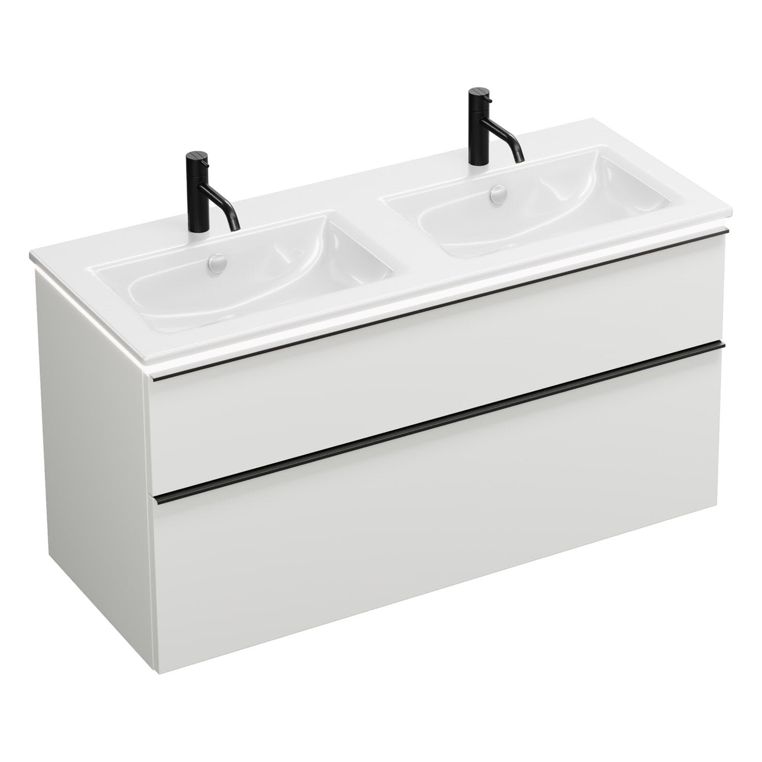 burgbad Eqio Doppelwaschtischkombination mit Keramik-Doppelwaschtisch Slim und LED-Beleuchtung, 122 cm, mit Griffleiste G0252