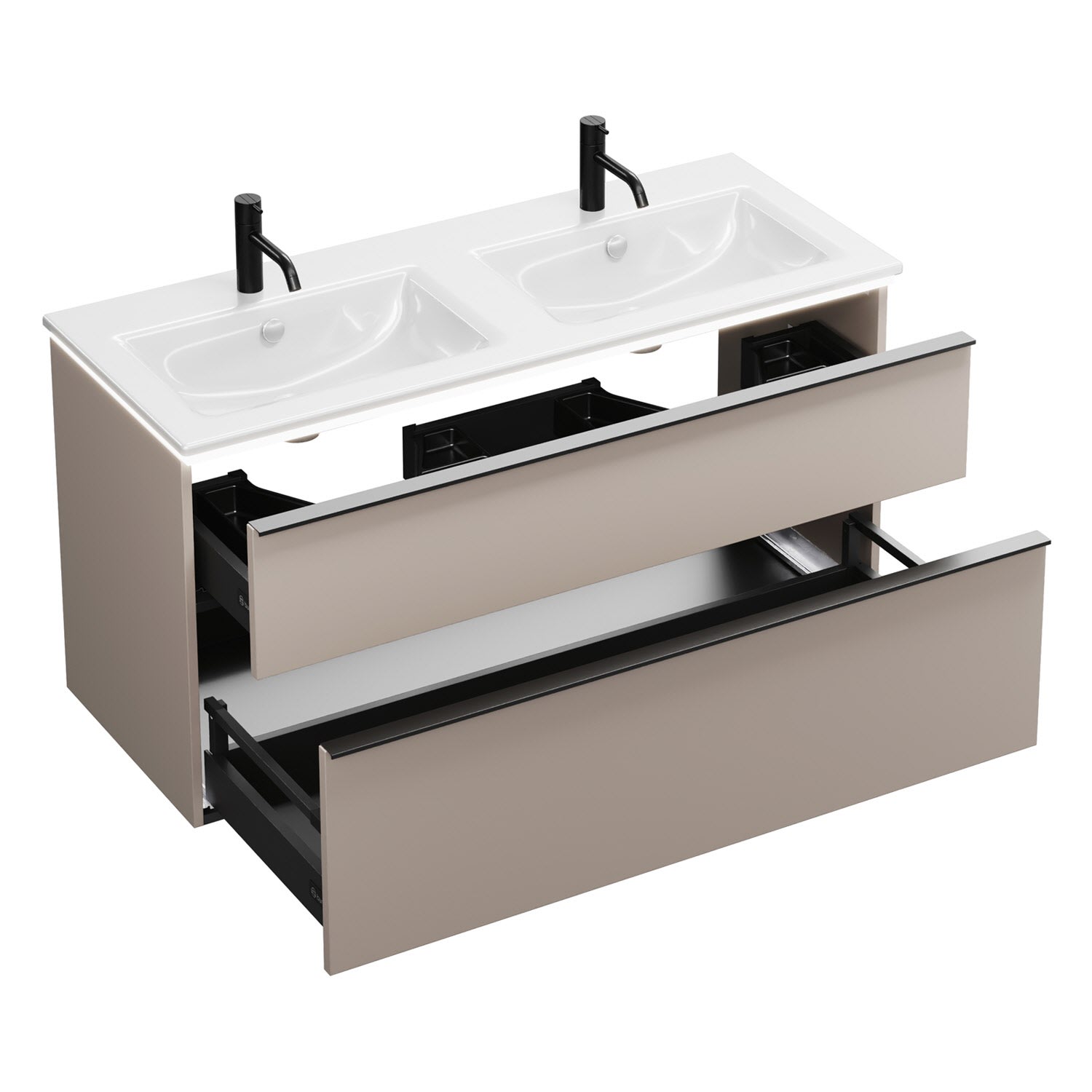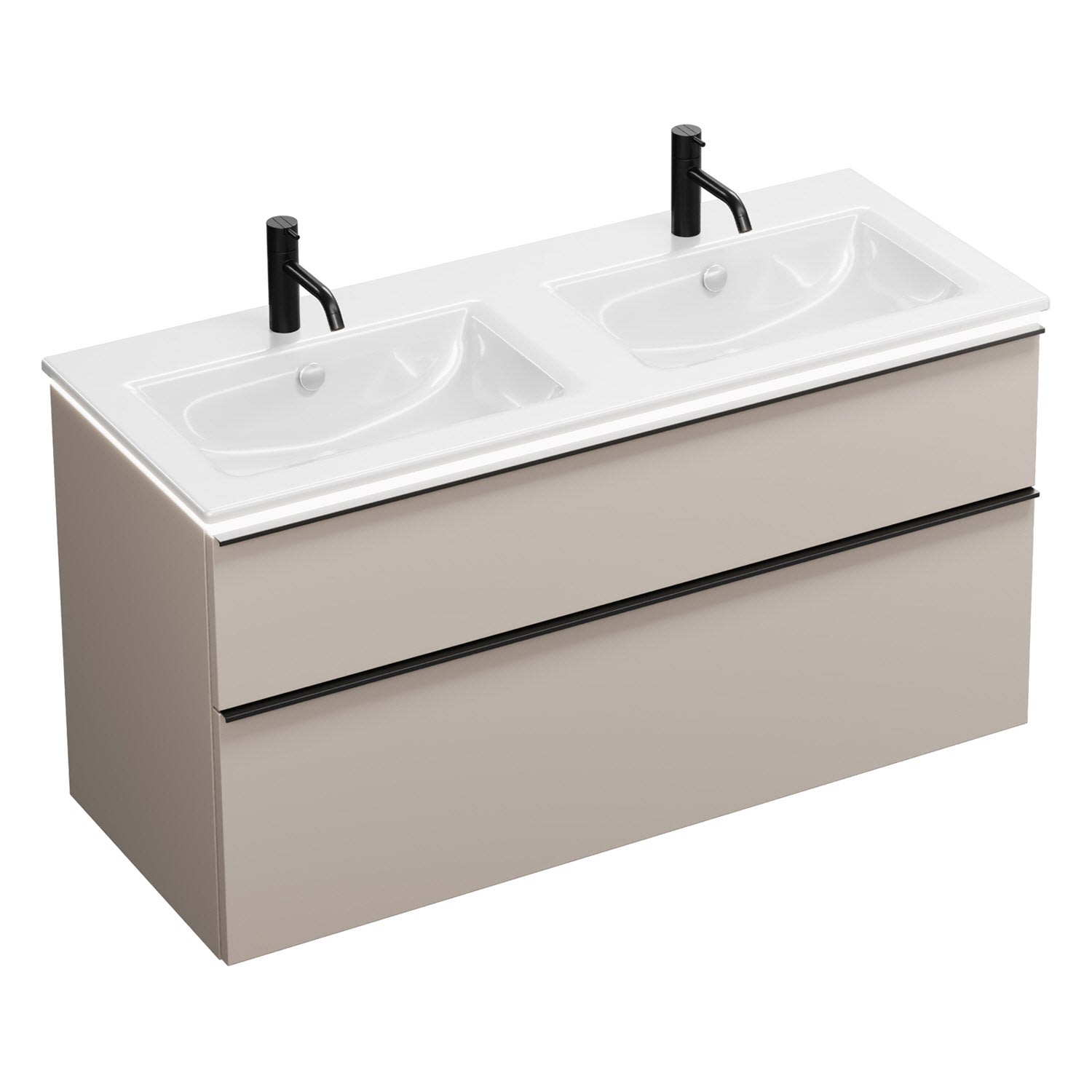 burgbad Eqio Doppelwaschtischkombination mit Keramik-Doppelwaschtisch Slim und LED-Beleuchtung, 122 cm, mit Griffleiste G0252