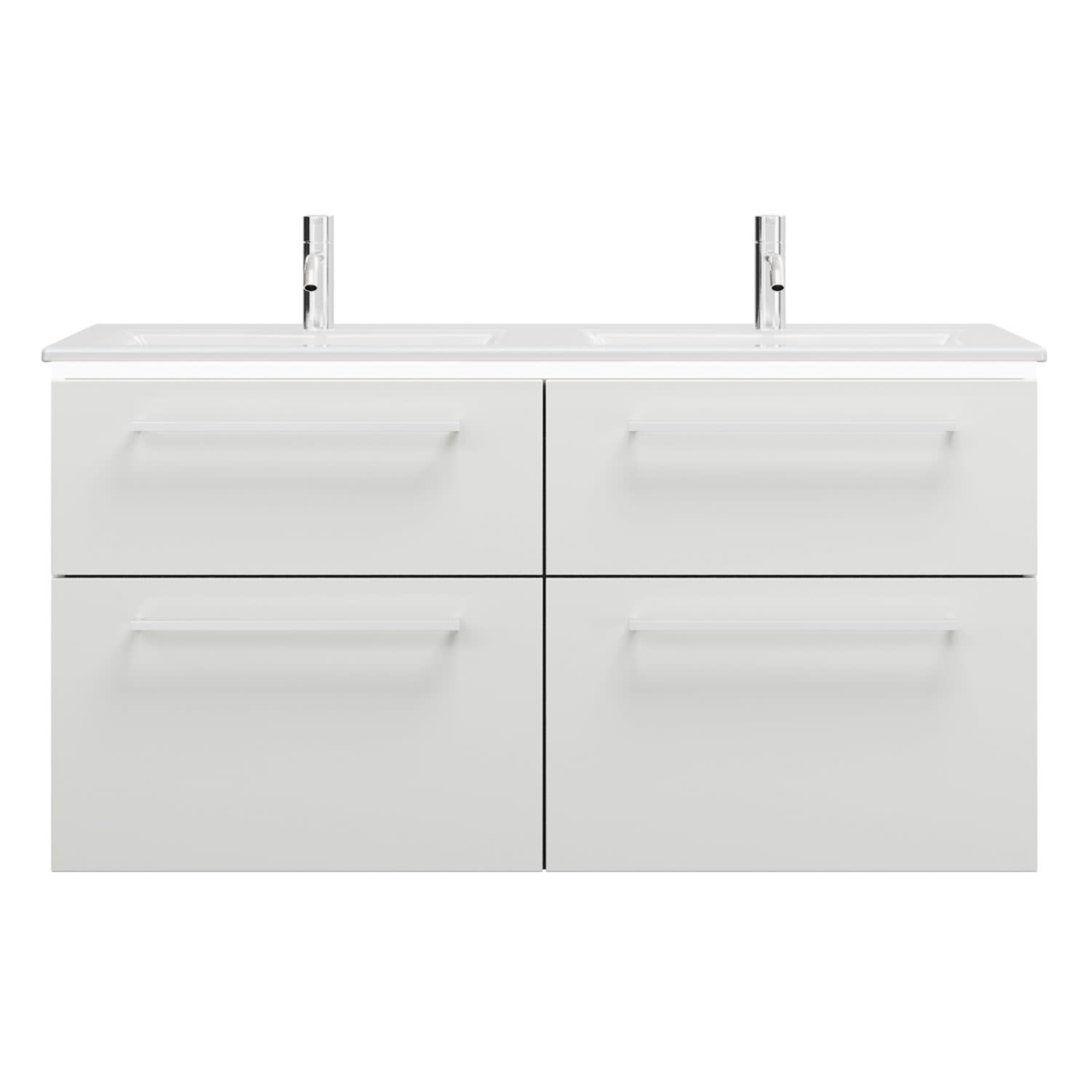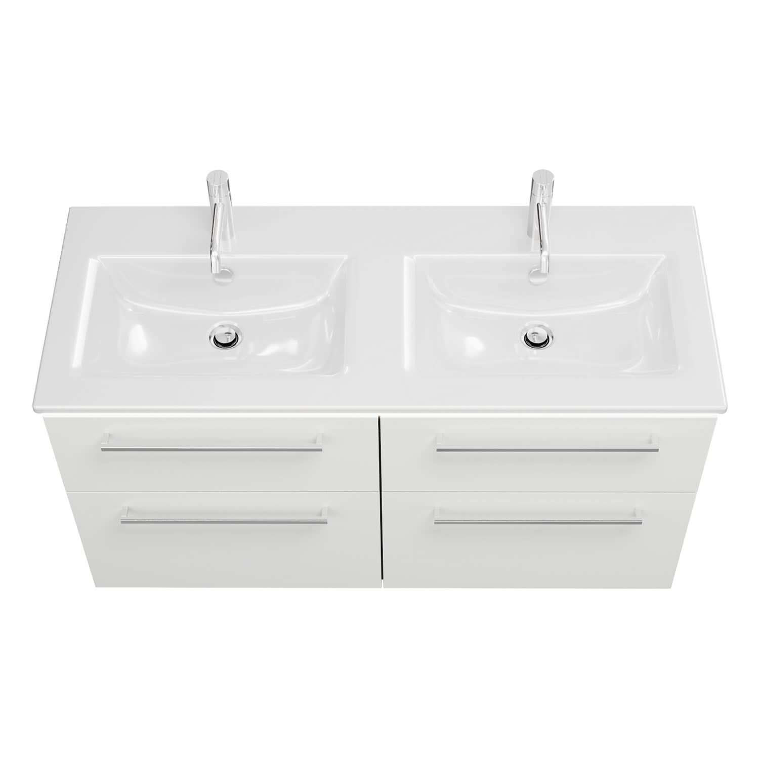 burgbad Eqio Doppelwaschtischkombination mit Keramik-Doppelwaschtisch Slim und LED-Beleuchtung, 122 cm, mit Stangengriff P95