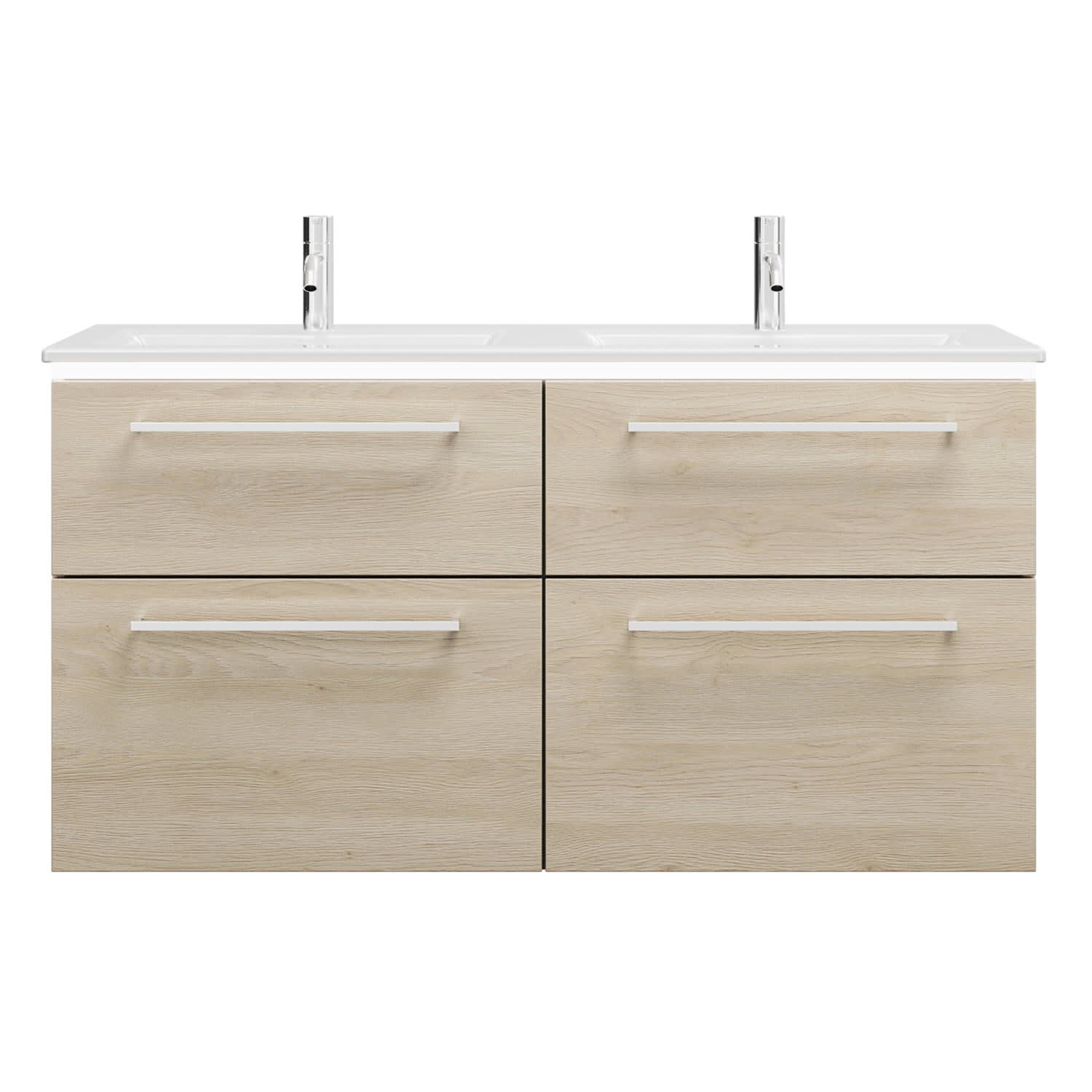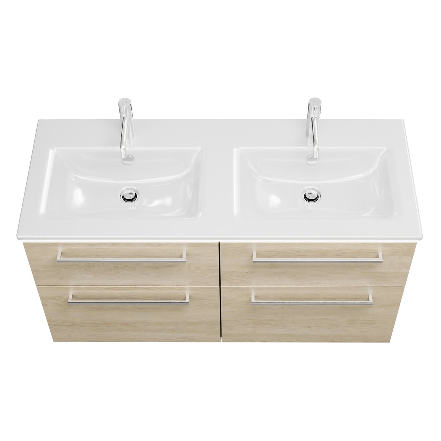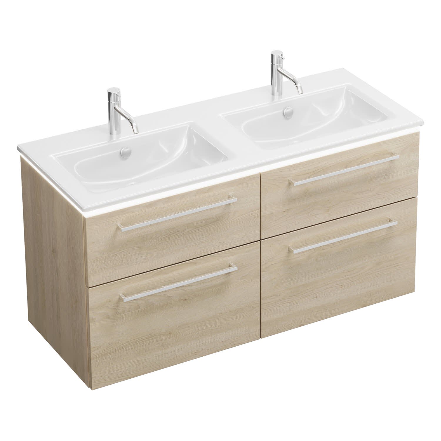 burgbad Eqio Doppelwaschtischkombination mit Keramik-Doppelwaschtisch Slim und LED-Beleuchtung, 122 cm, mit Stangengriff P95