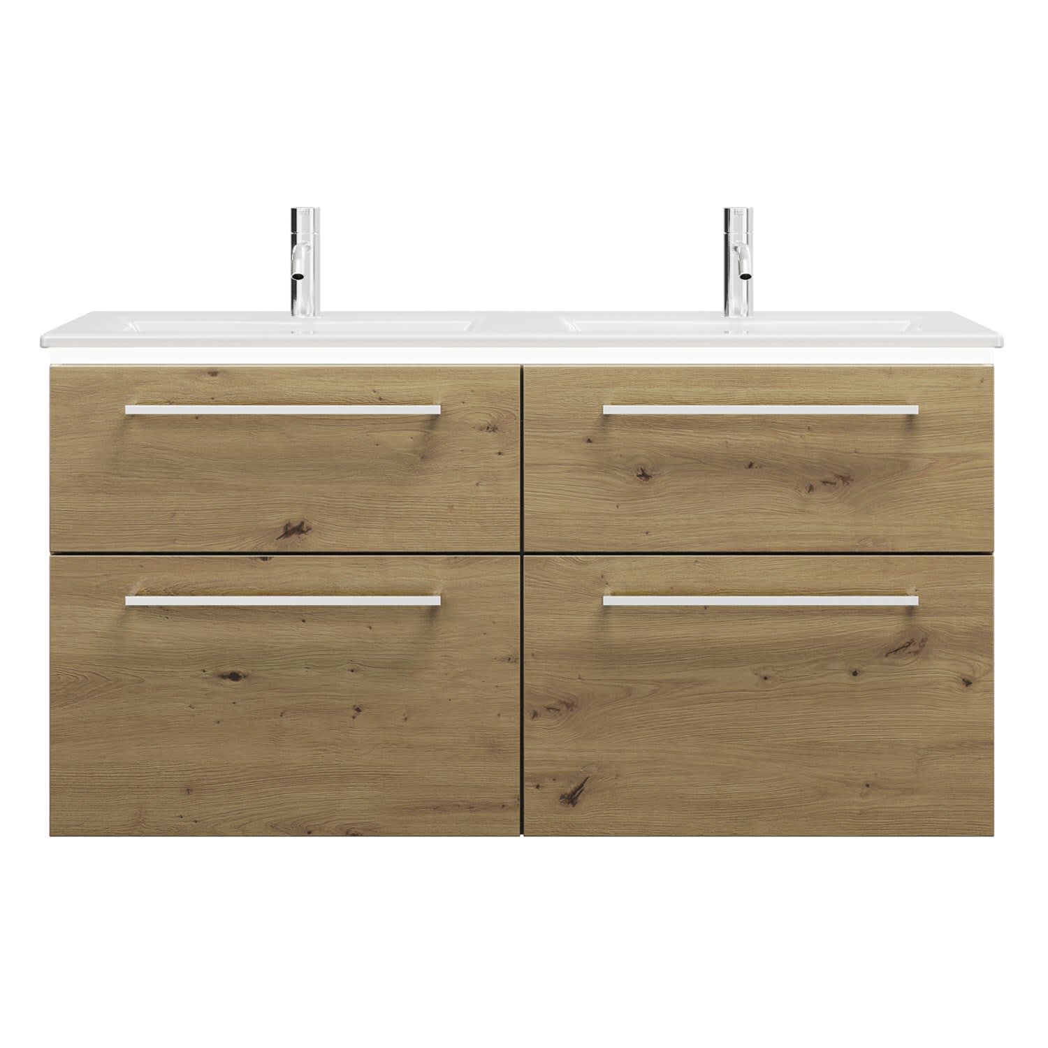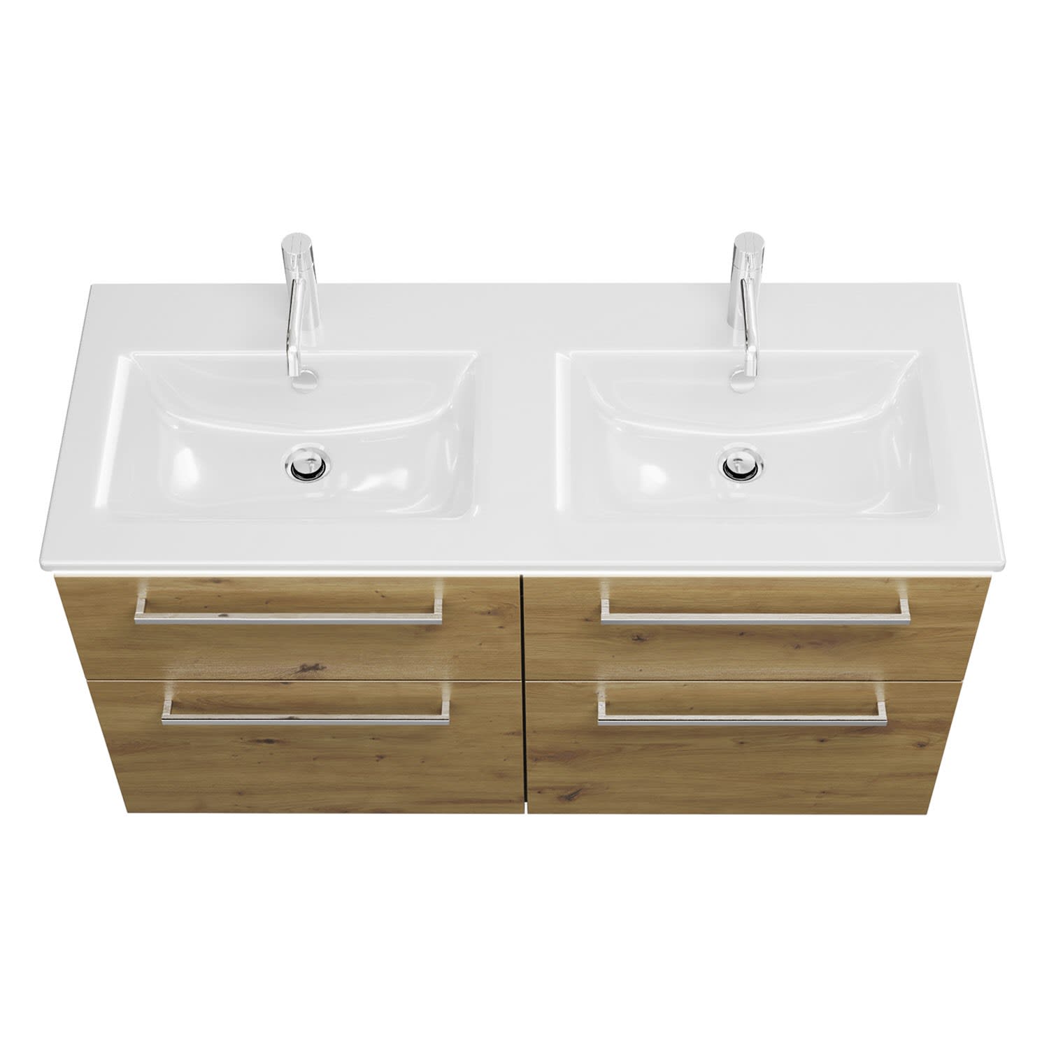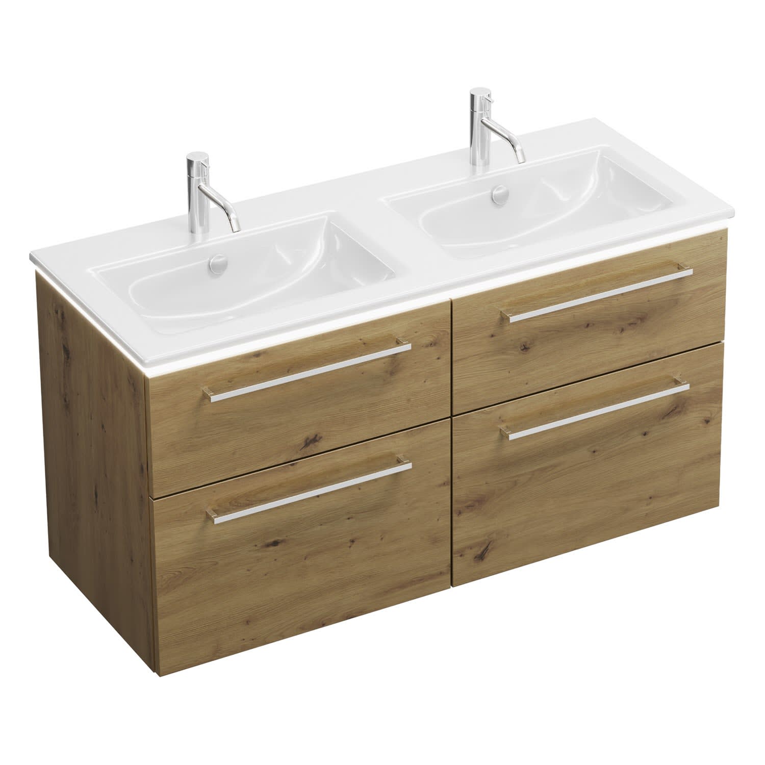 burgbad Eqio Doppelwaschtischkombination mit Keramik-Doppelwaschtisch Slim und LED-Beleuchtung, 122 cm, mit Stangengriff P95