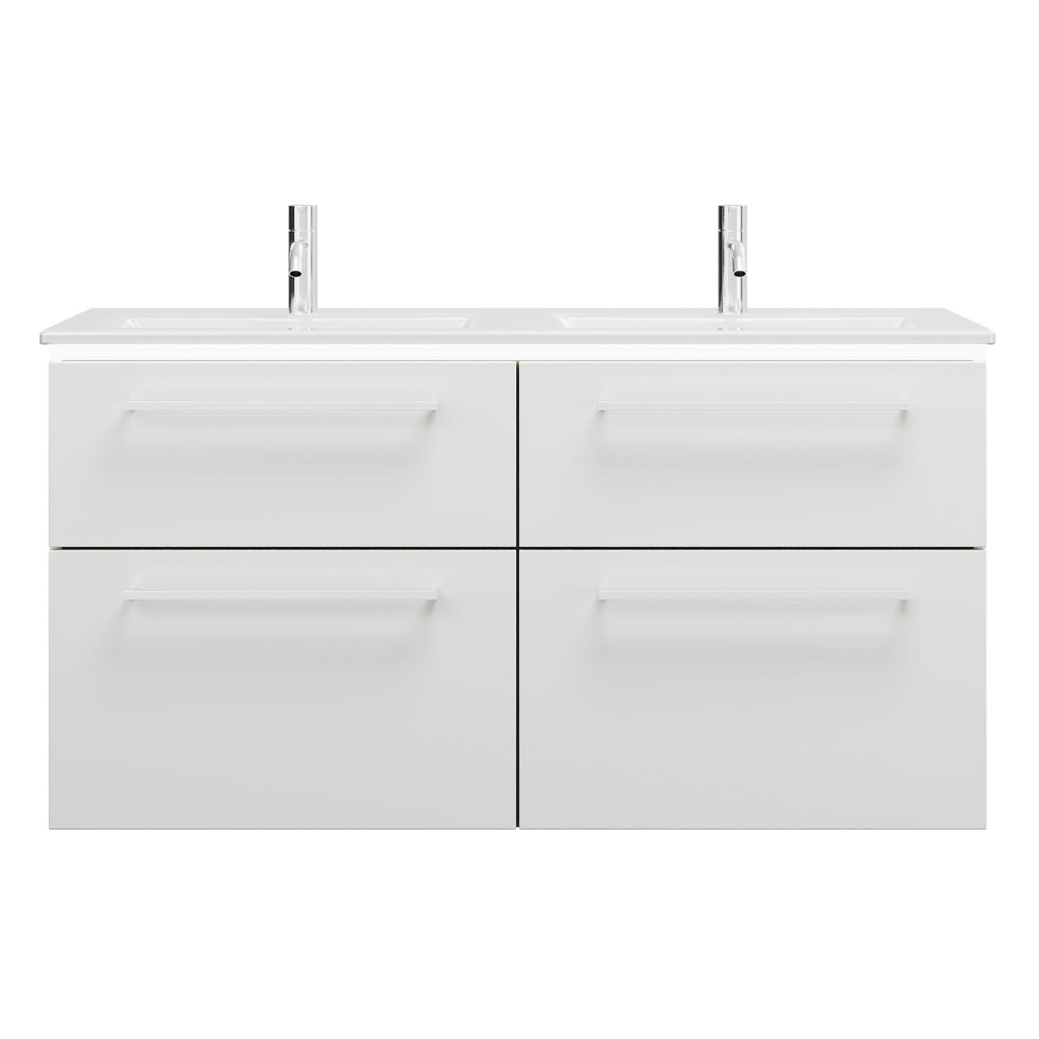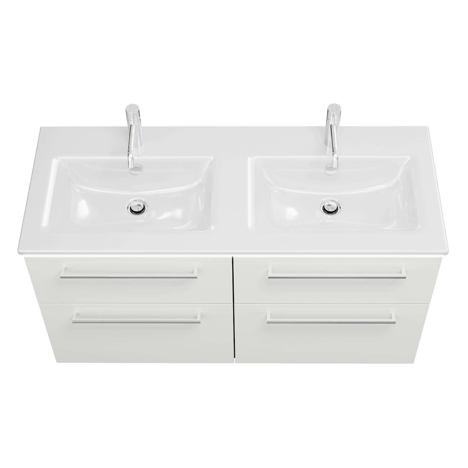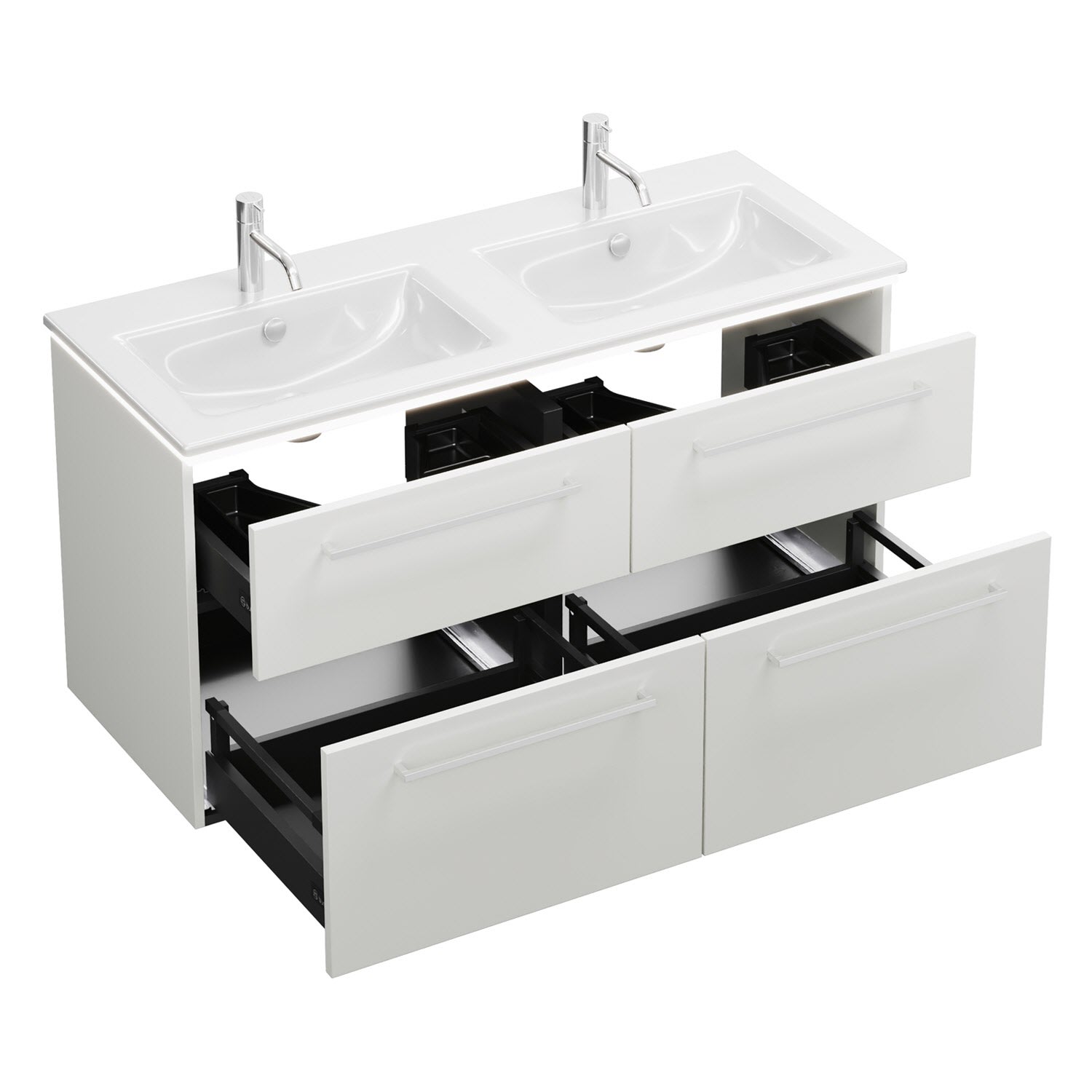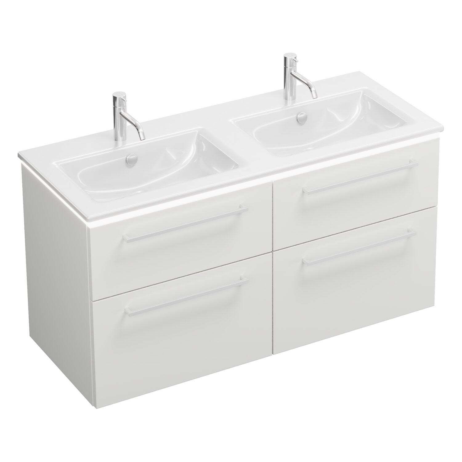 burgbad Eqio Doppelwaschtischkombination mit Keramik-Doppelwaschtisch Slim und LED-Beleuchtung, 122 cm, mit Stangengriff P95