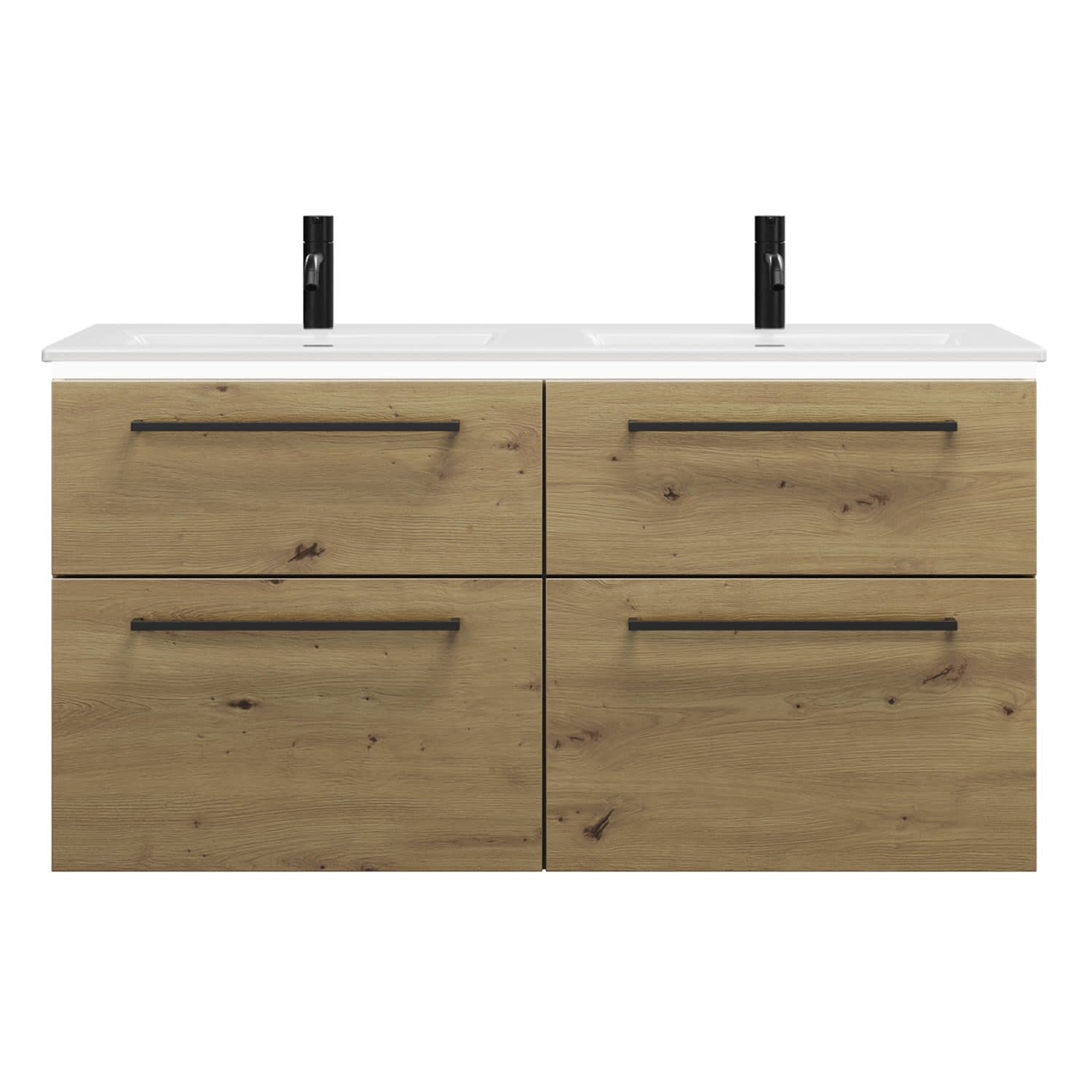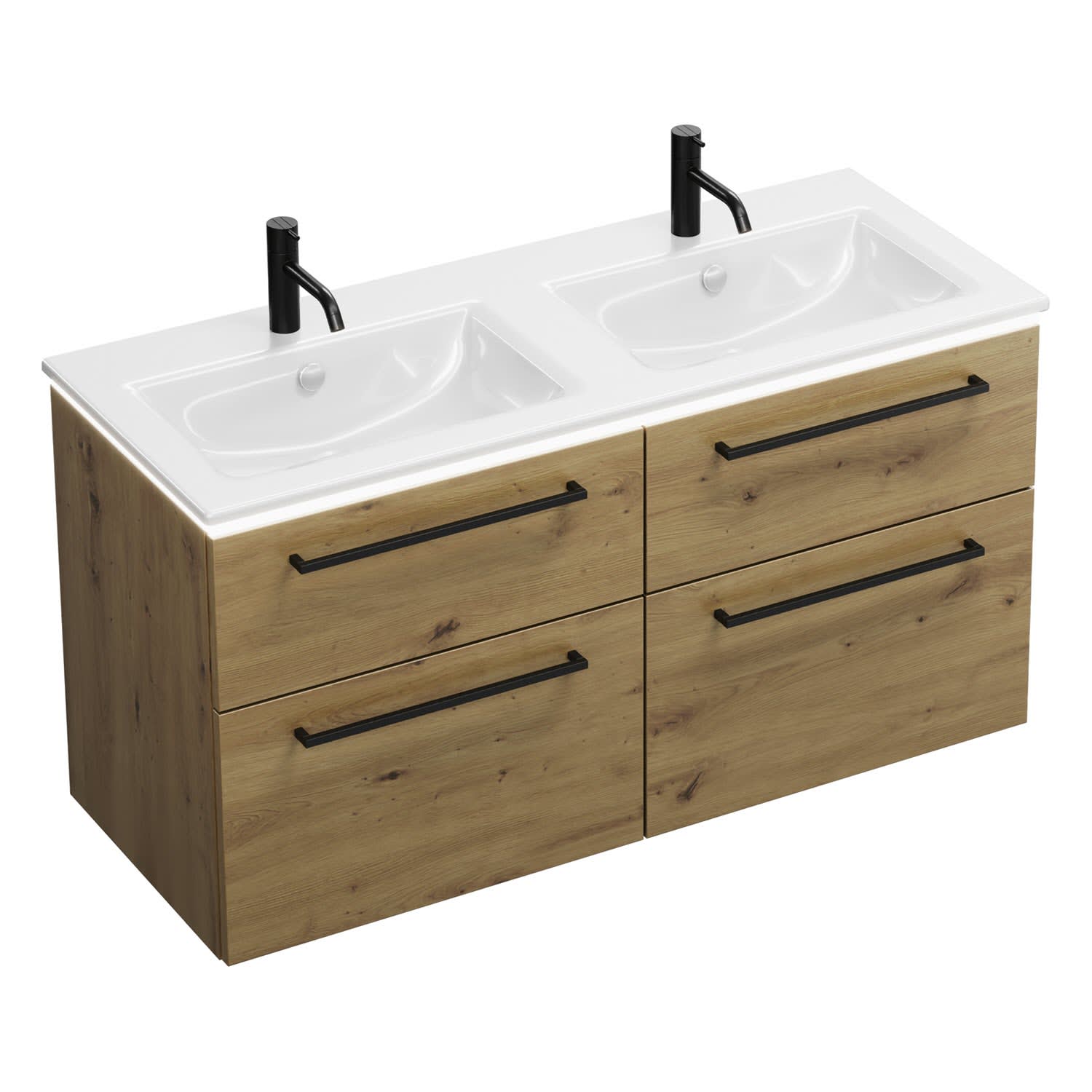 burgbad Eqio Doppelwaschtischkombination mit Keramik-Doppelwaschtisch Slim und LED-Beleuchtung, 122 cm, mit Stangengriff G0234