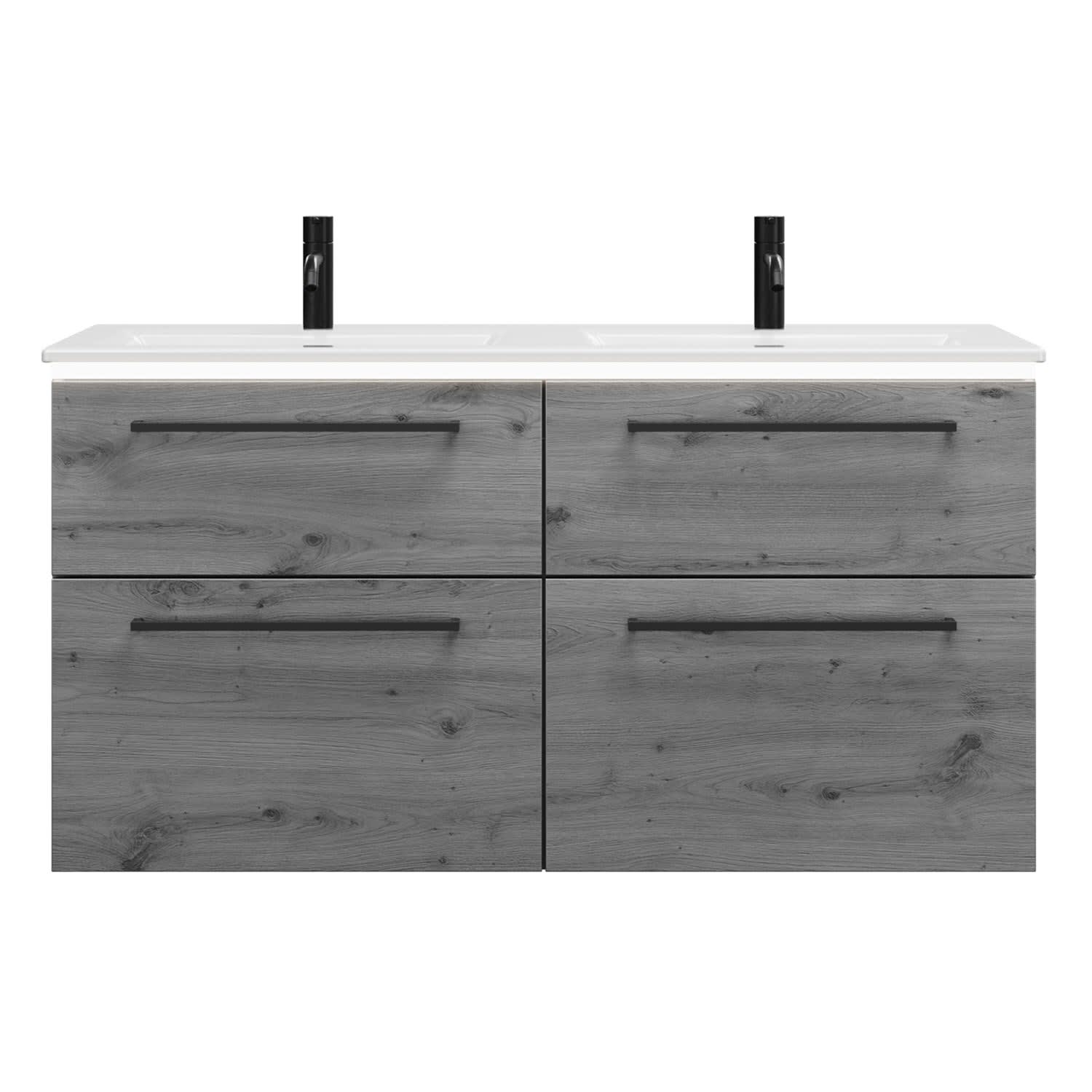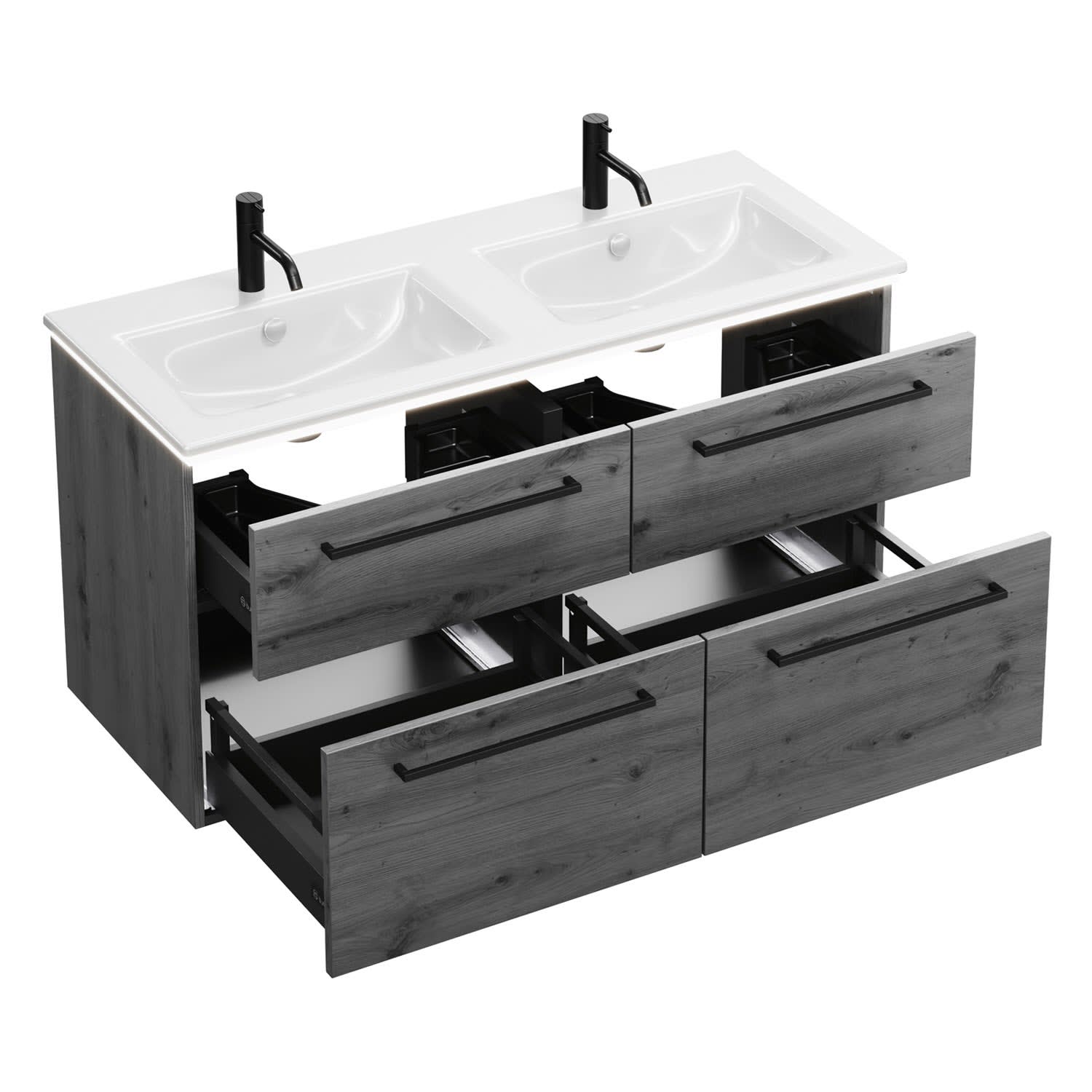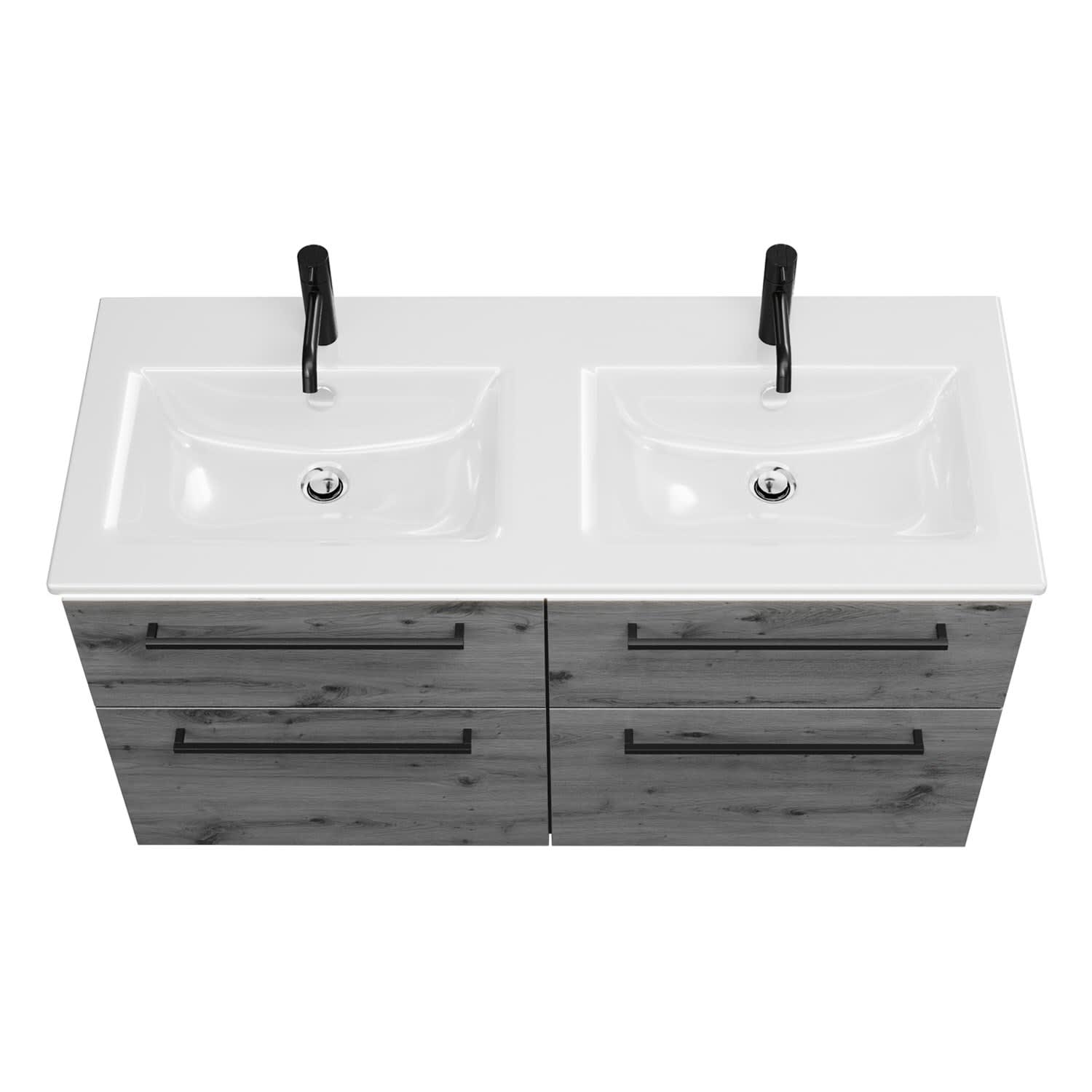 burgbad Eqio Doppelwaschtischkombination mit Keramik-Doppelwaschtisch Slim und LED-Beleuchtung, 122 cm, mit Stangengriff G0234
