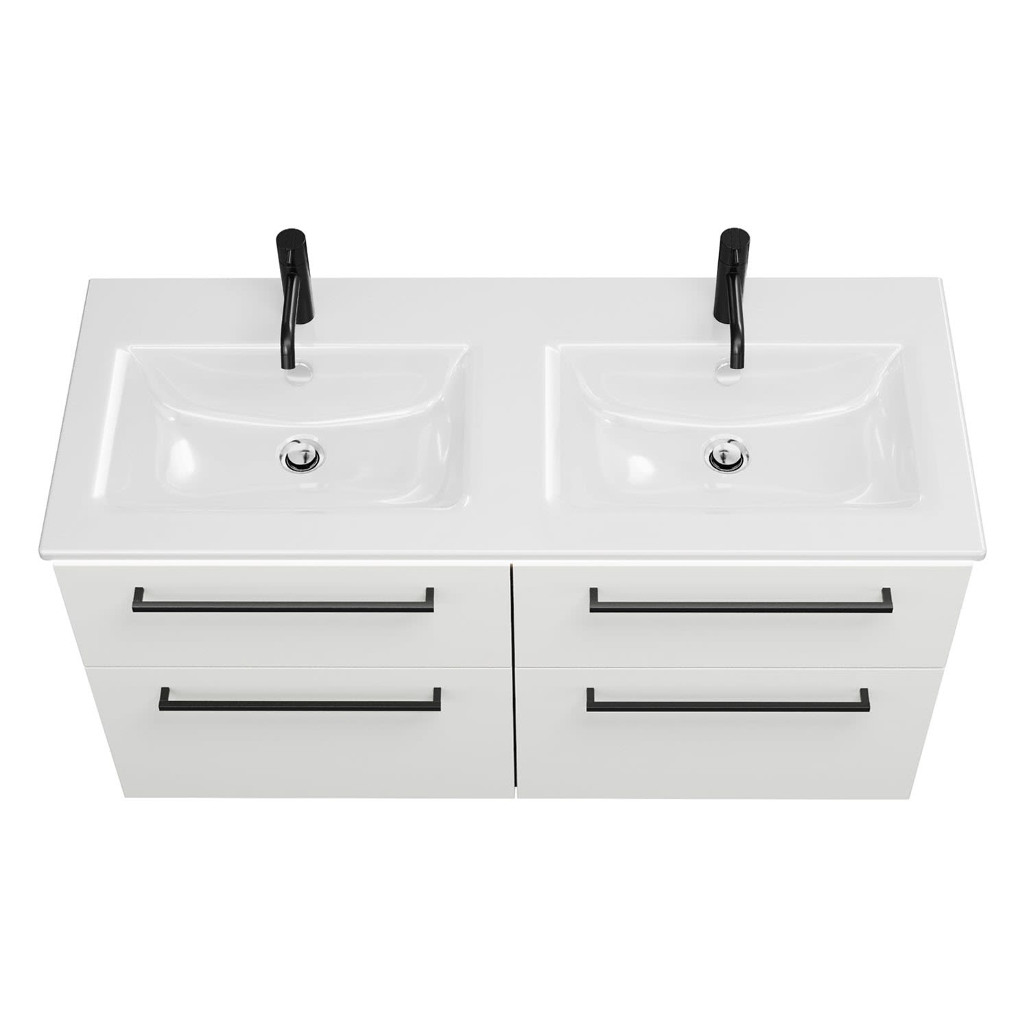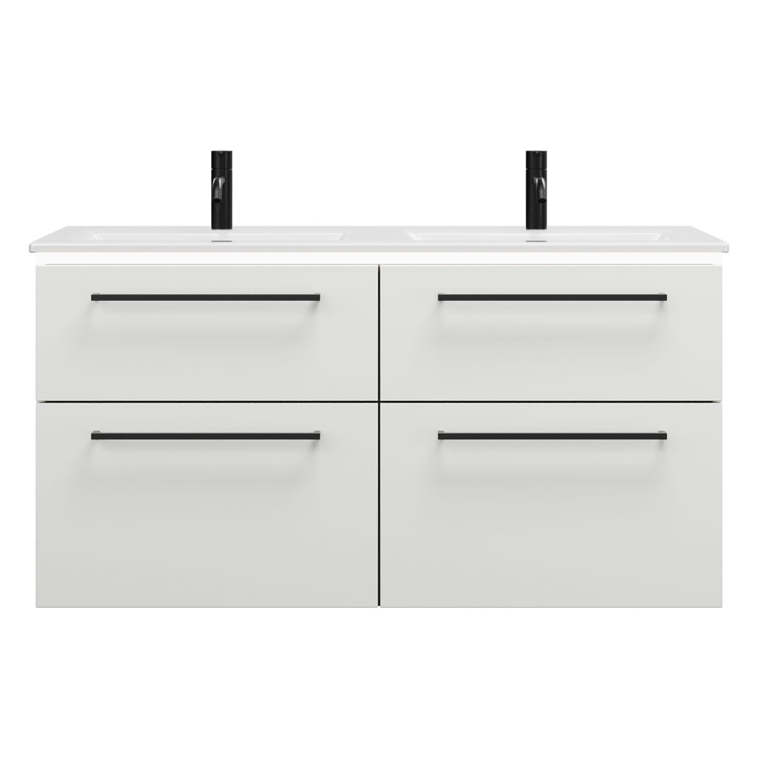 burgbad Eqio Doppelwaschtischkombination mit Keramik-Doppelwaschtisch Slim und LED-Beleuchtung, 122 cm, mit Stangengriff G0234