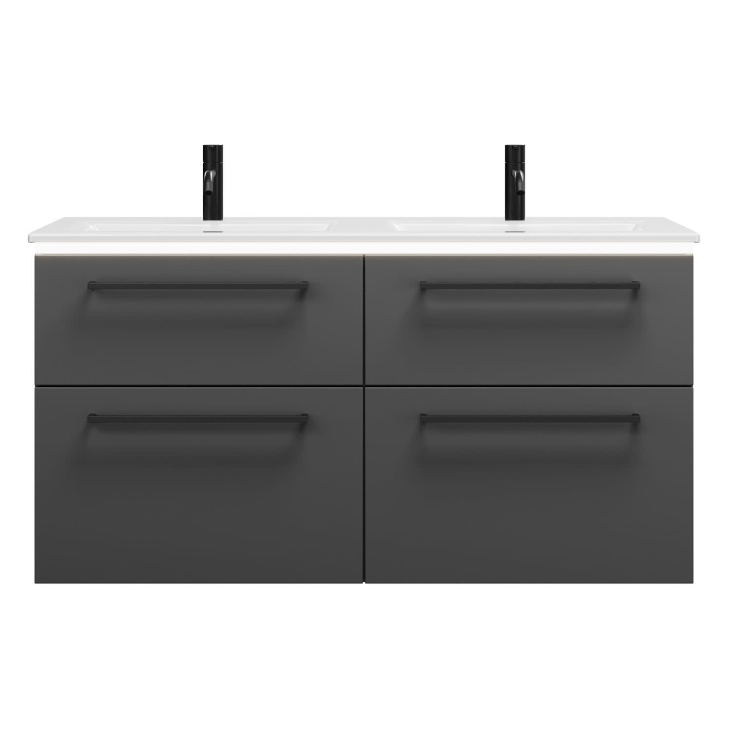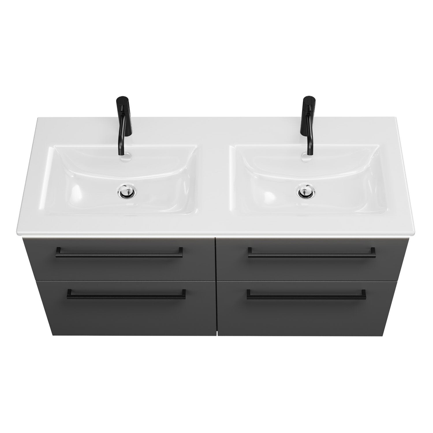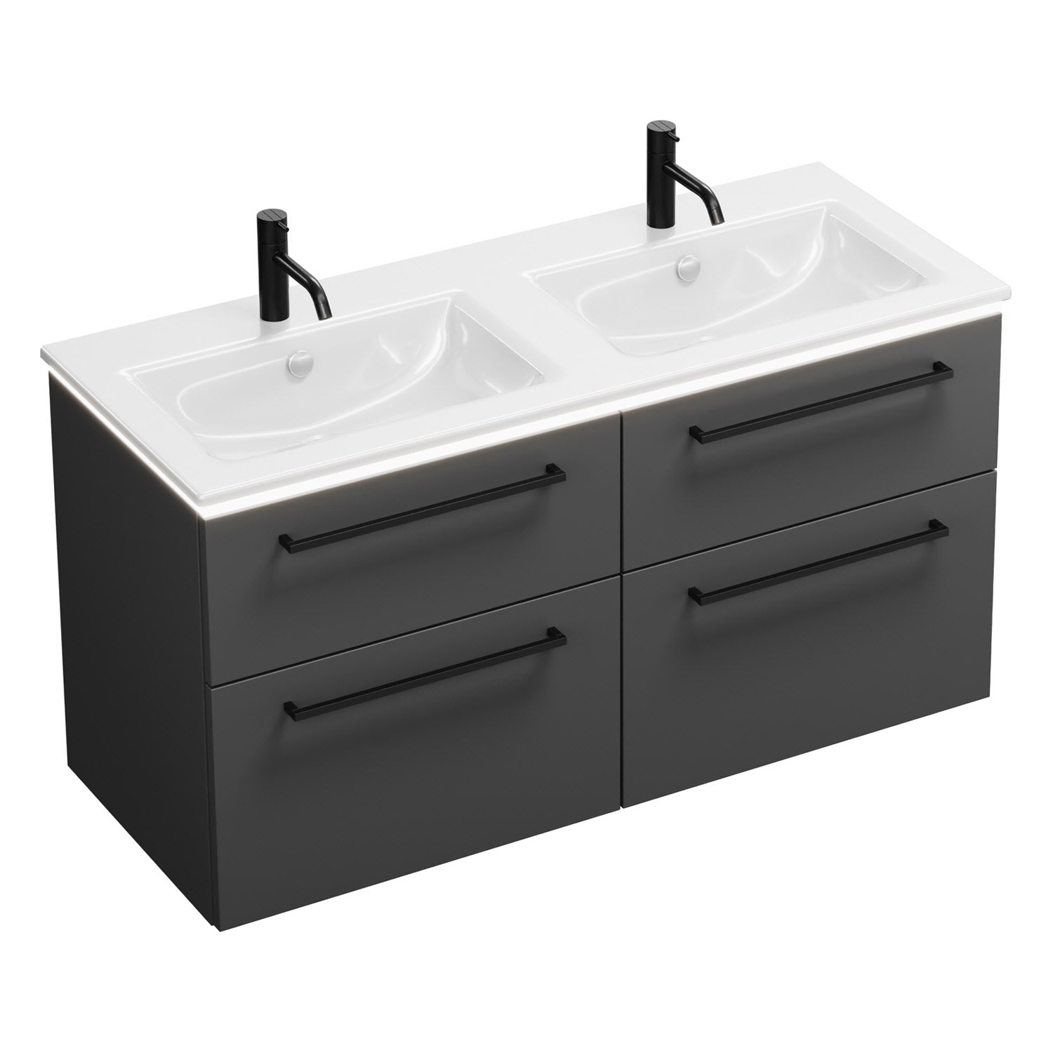 burgbad Eqio Doppelwaschtischkombination mit Keramik-Doppelwaschtisch Slim und LED-Beleuchtung, 122 cm, mit Stangengriff G0234
