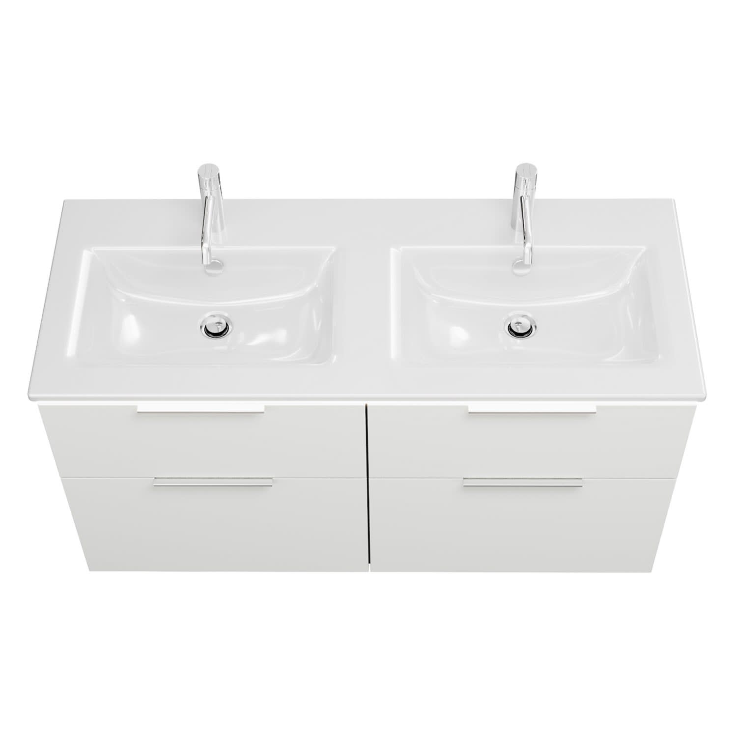 burgbad Eqio Doppelwaschtischkombination mit Keramik-Doppelwaschtisch Slim und LED-Beleuchtung, 122 cm, mit Griff G0146