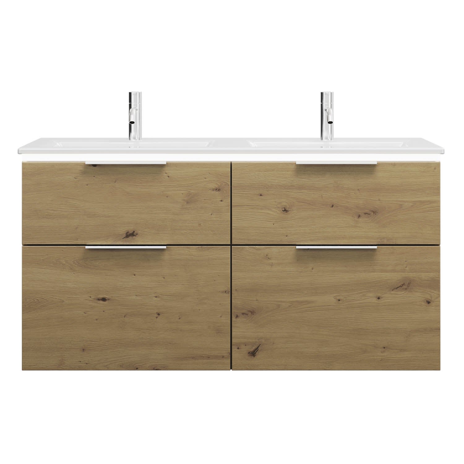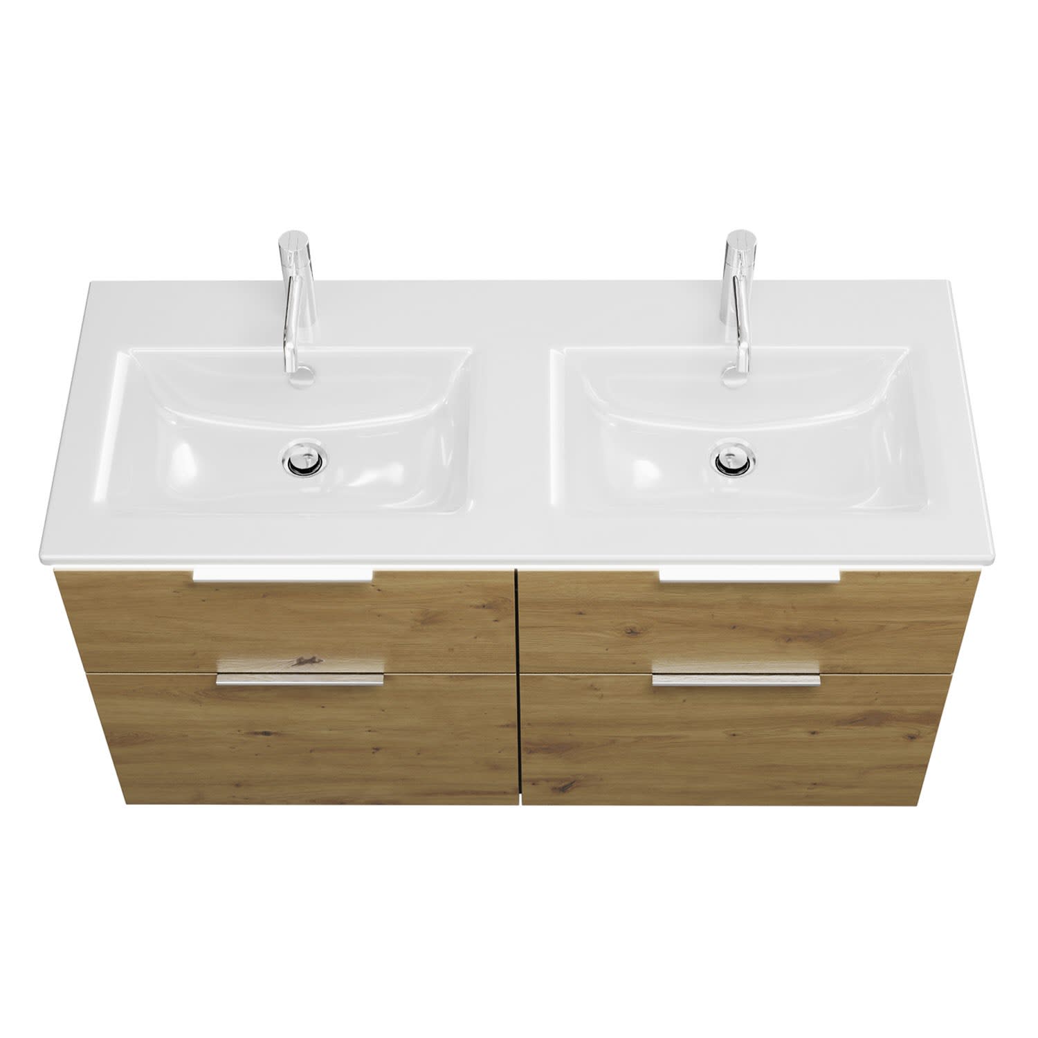 burgbad Eqio Doppelwaschtischkombination mit Keramik-Doppelwaschtisch Slim und LED-Beleuchtung, 122 cm, mit Griff G0146