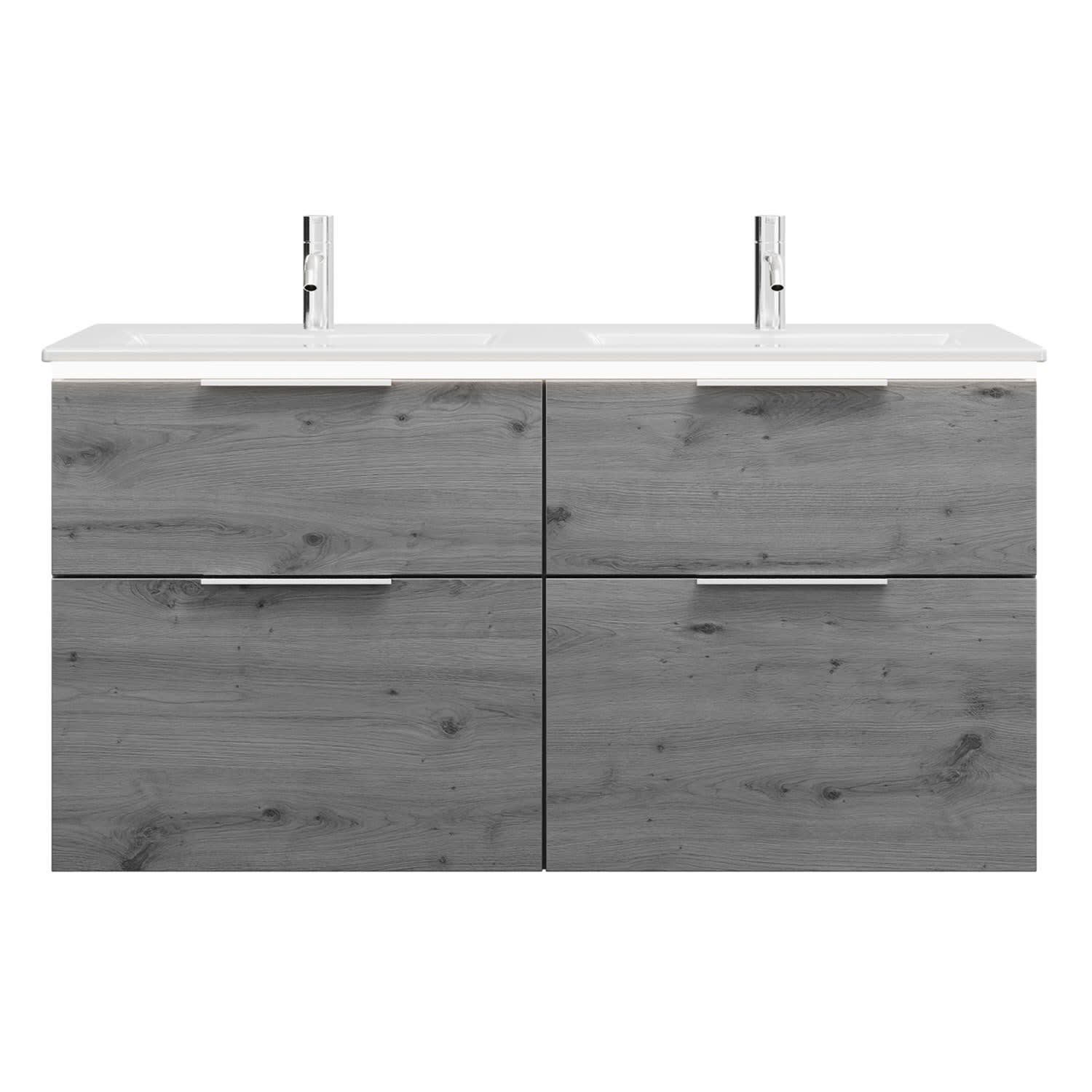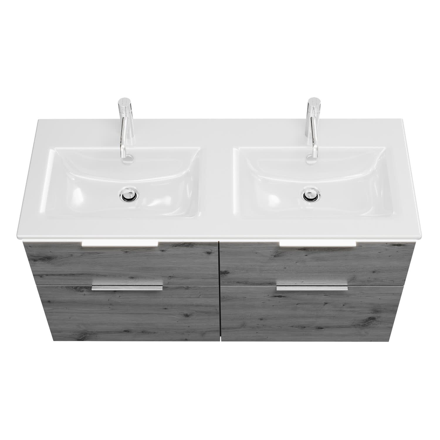 burgbad Eqio Doppelwaschtischkombination mit Keramik-Doppelwaschtisch Slim und LED-Beleuchtung, 122 cm, mit Griff G0146