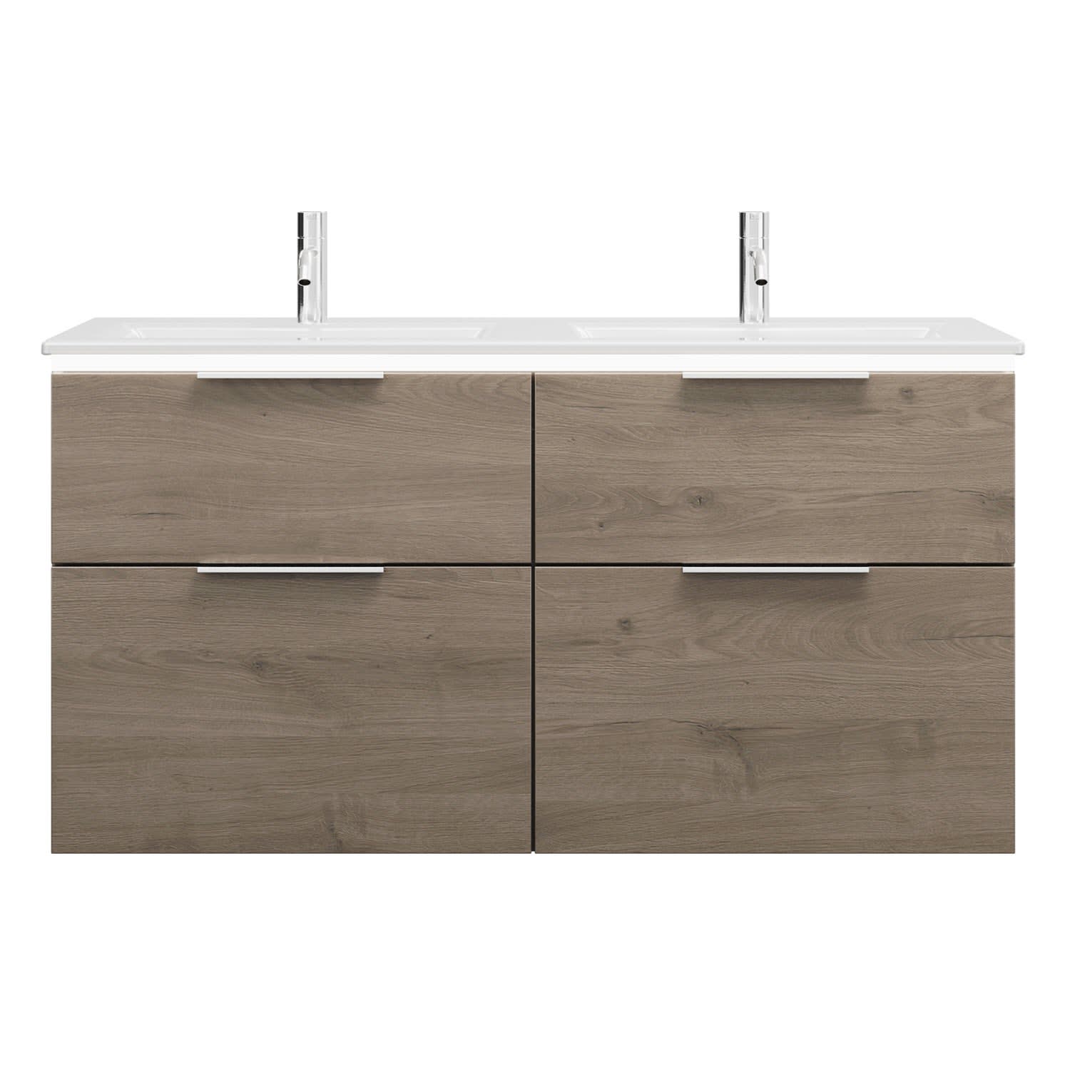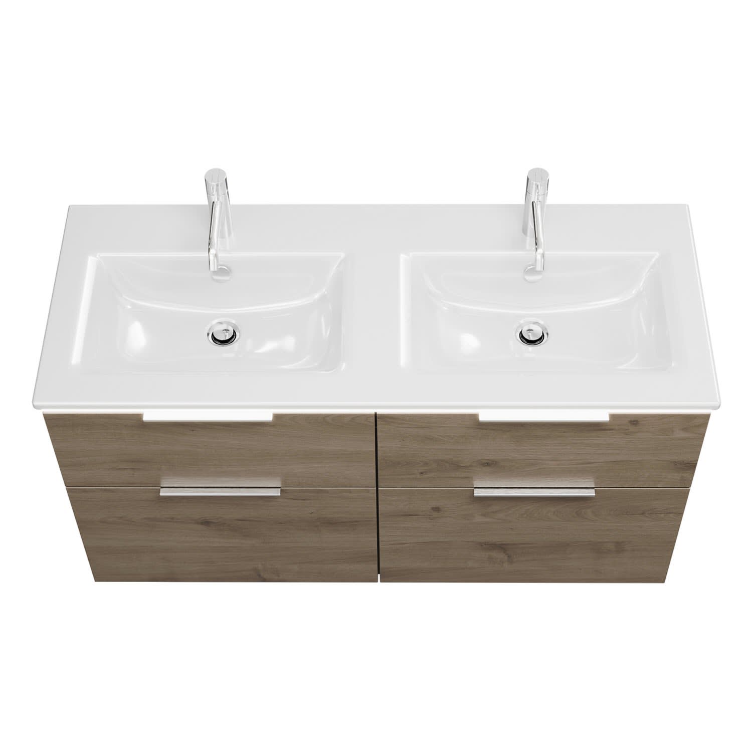 burgbad Eqio Doppelwaschtischkombination mit Keramik-Doppelwaschtisch Slim und LED-Beleuchtung, 122 cm, mit Griff G0146
