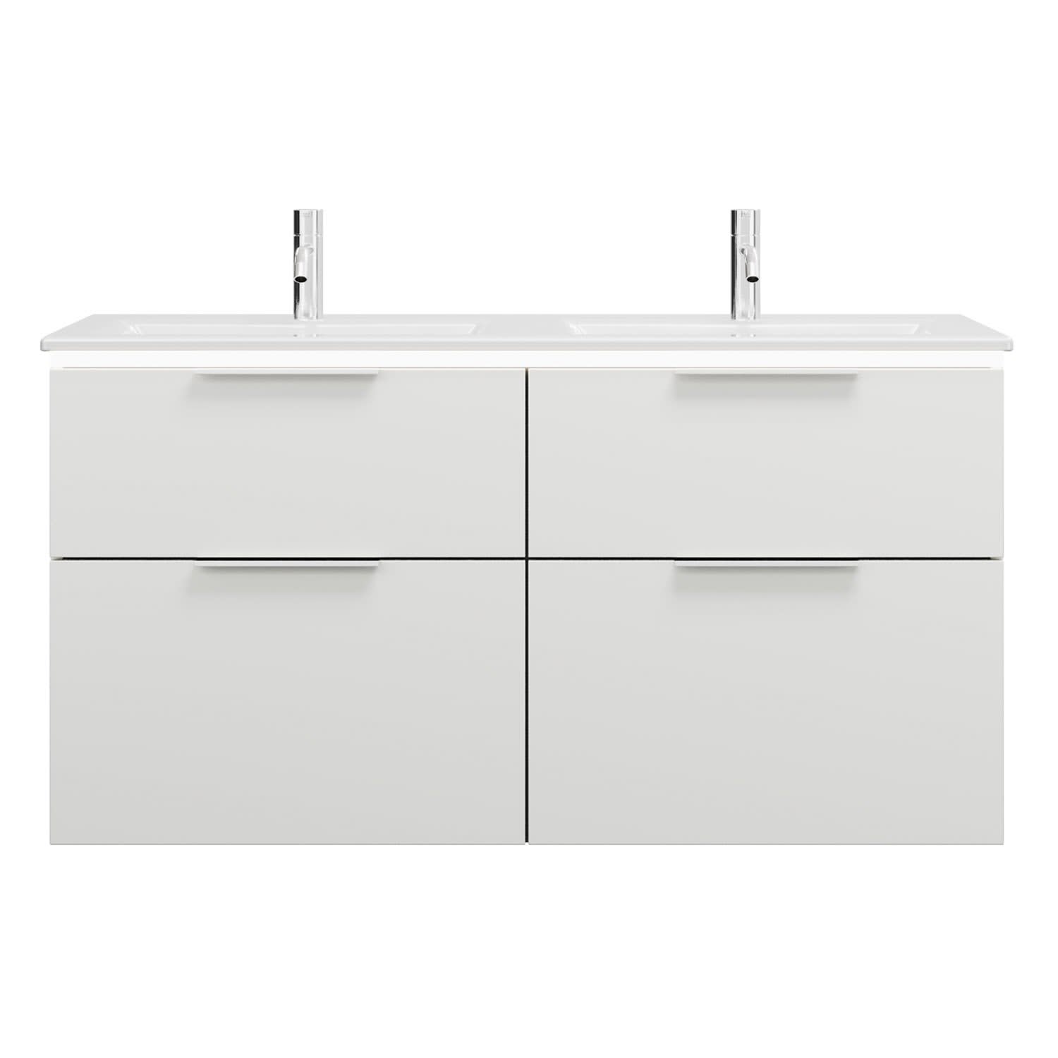 burgbad Eqio Doppelwaschtischkombination mit Keramik-Doppelwaschtisch Slim und LED-Beleuchtung, 122 cm, mit Griff G0146