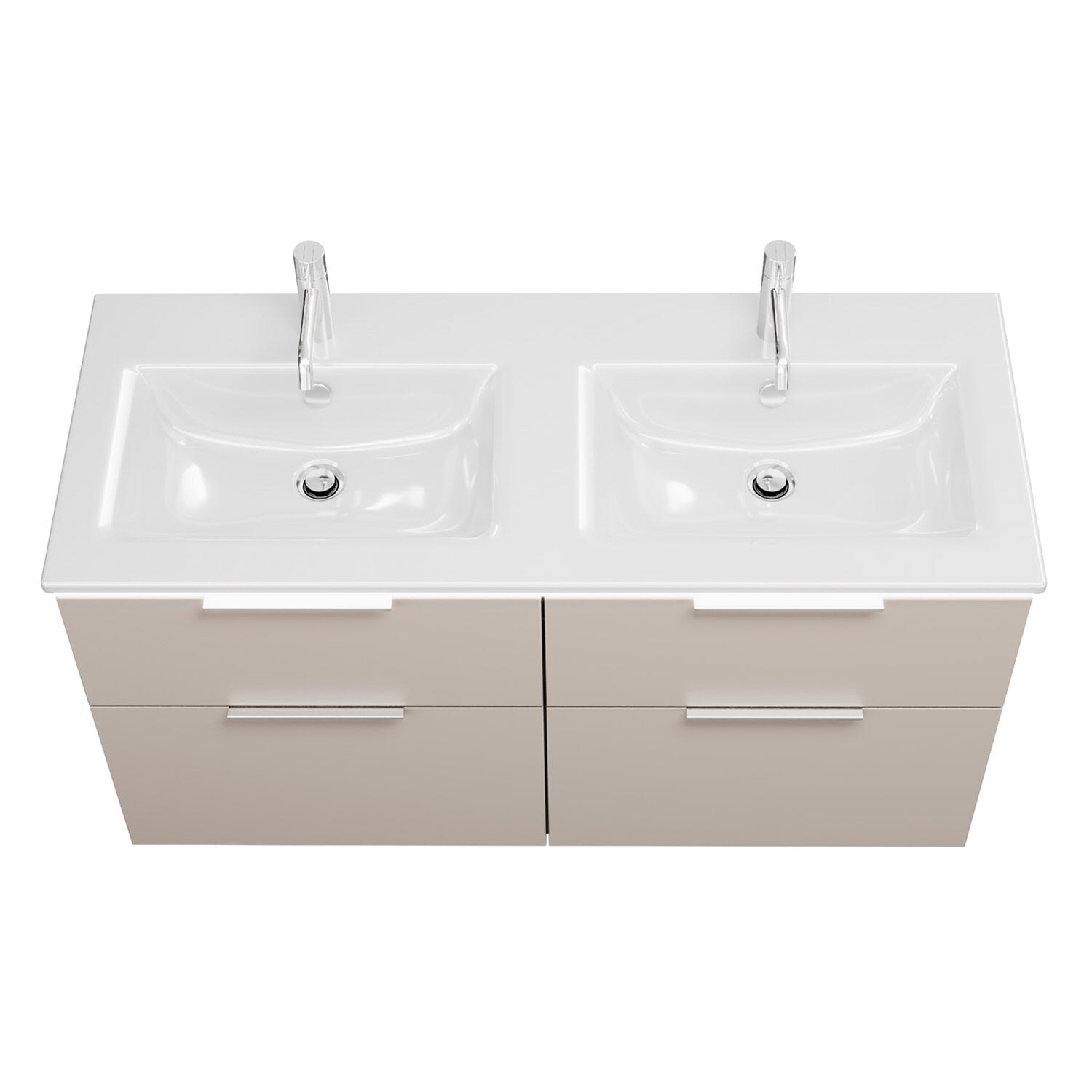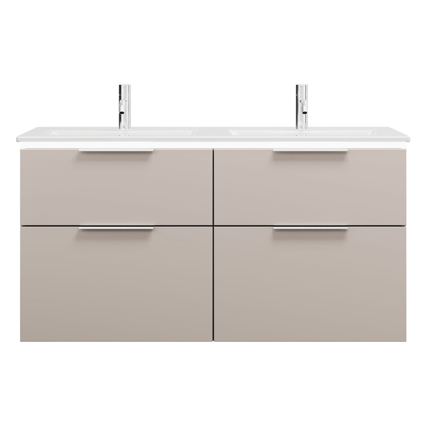 burgbad Eqio Doppelwaschtischkombination mit Keramik-Doppelwaschtisch Slim und LED-Beleuchtung, 122 cm, mit Griff G0146