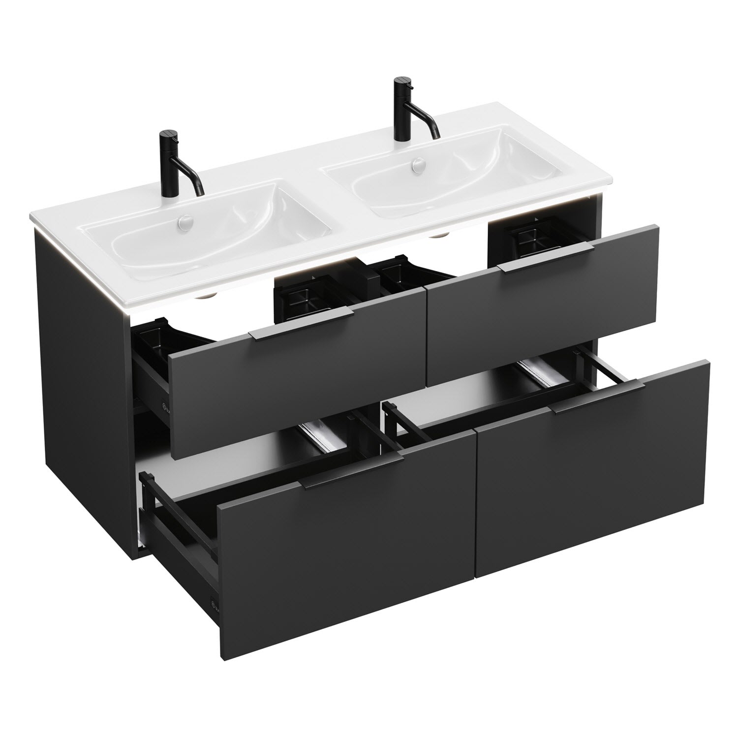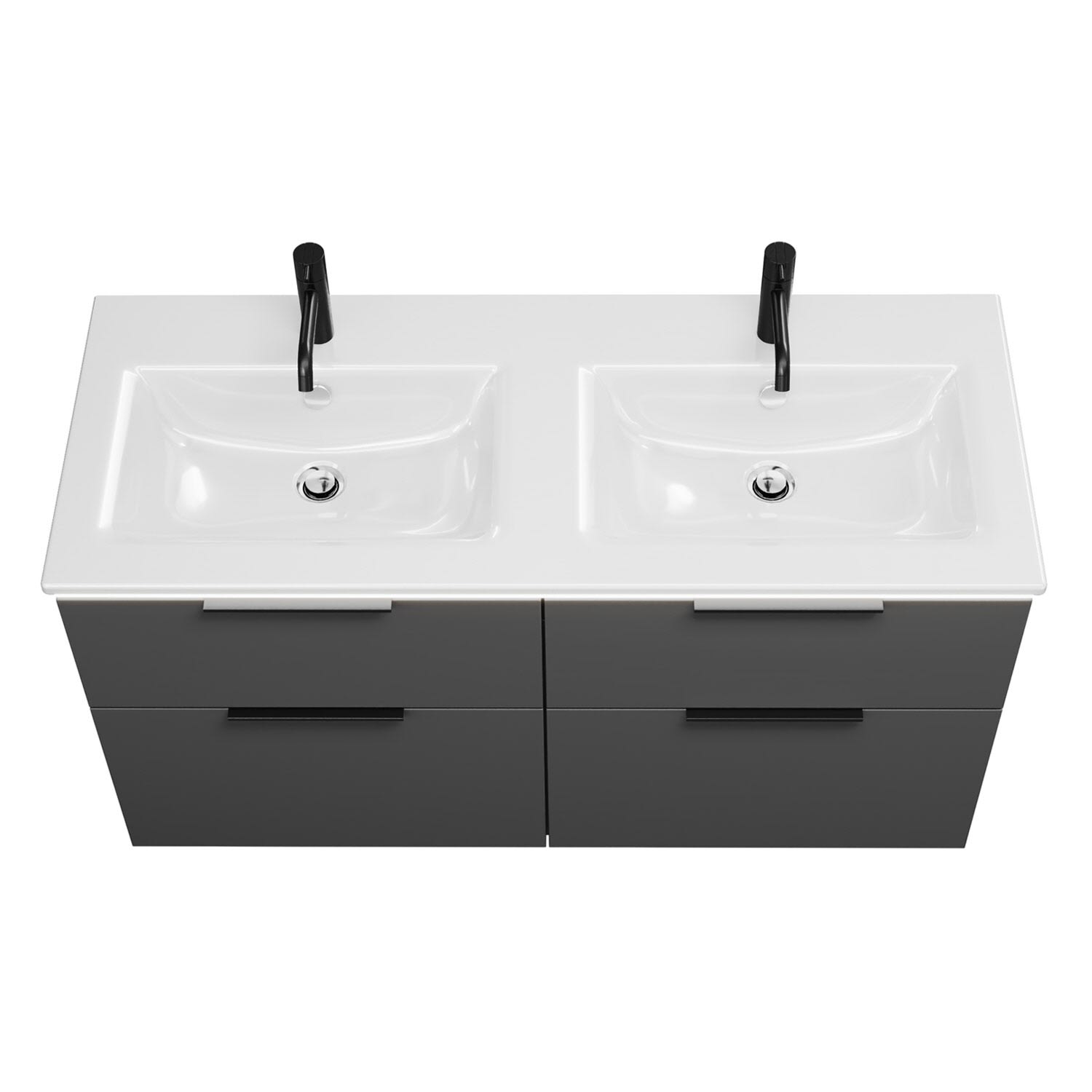 burgbad Eqio Doppelwaschtischkombination mit Keramik-Doppelwaschtisch Slim und LED-Beleuchtung, 122 cm, mit Griff G0200