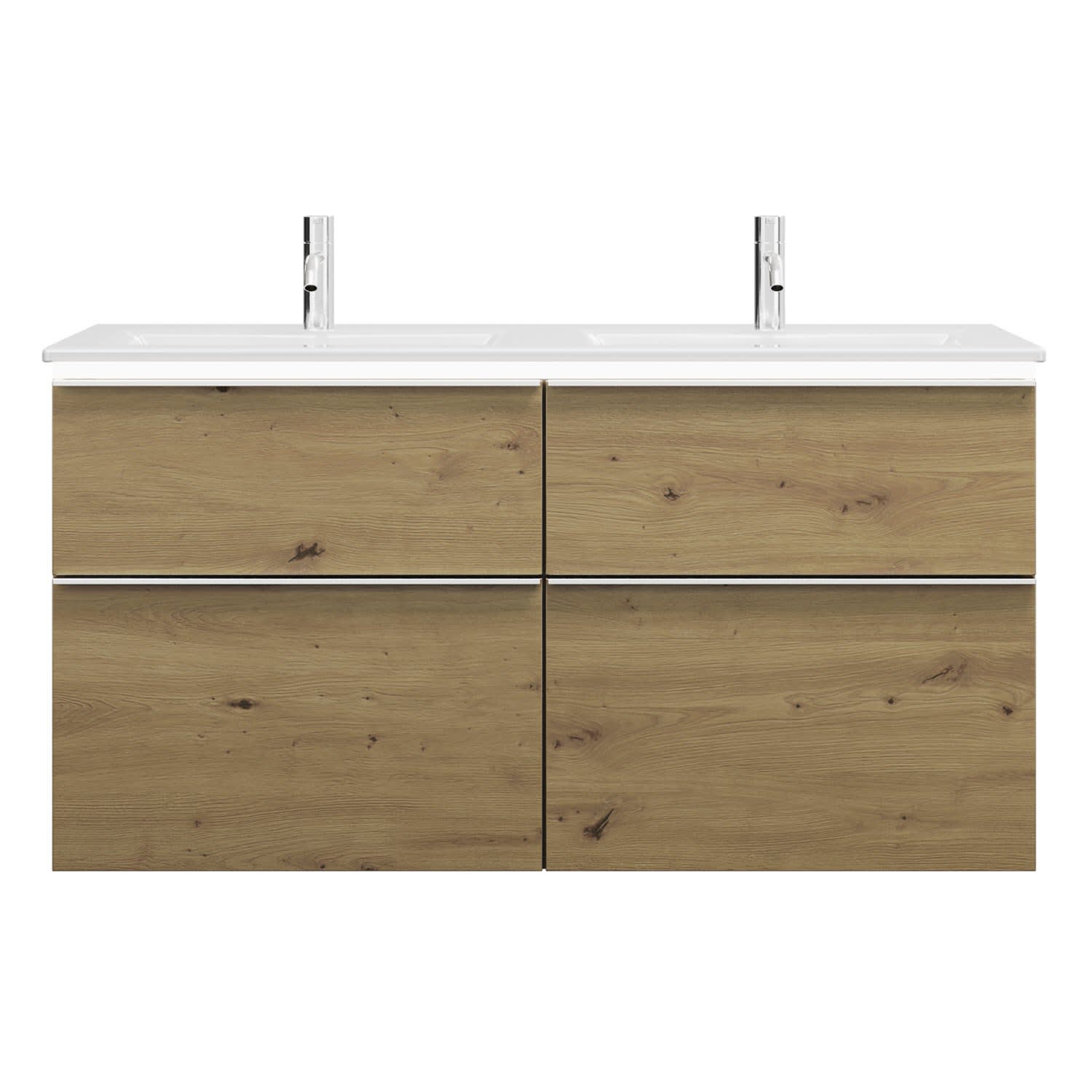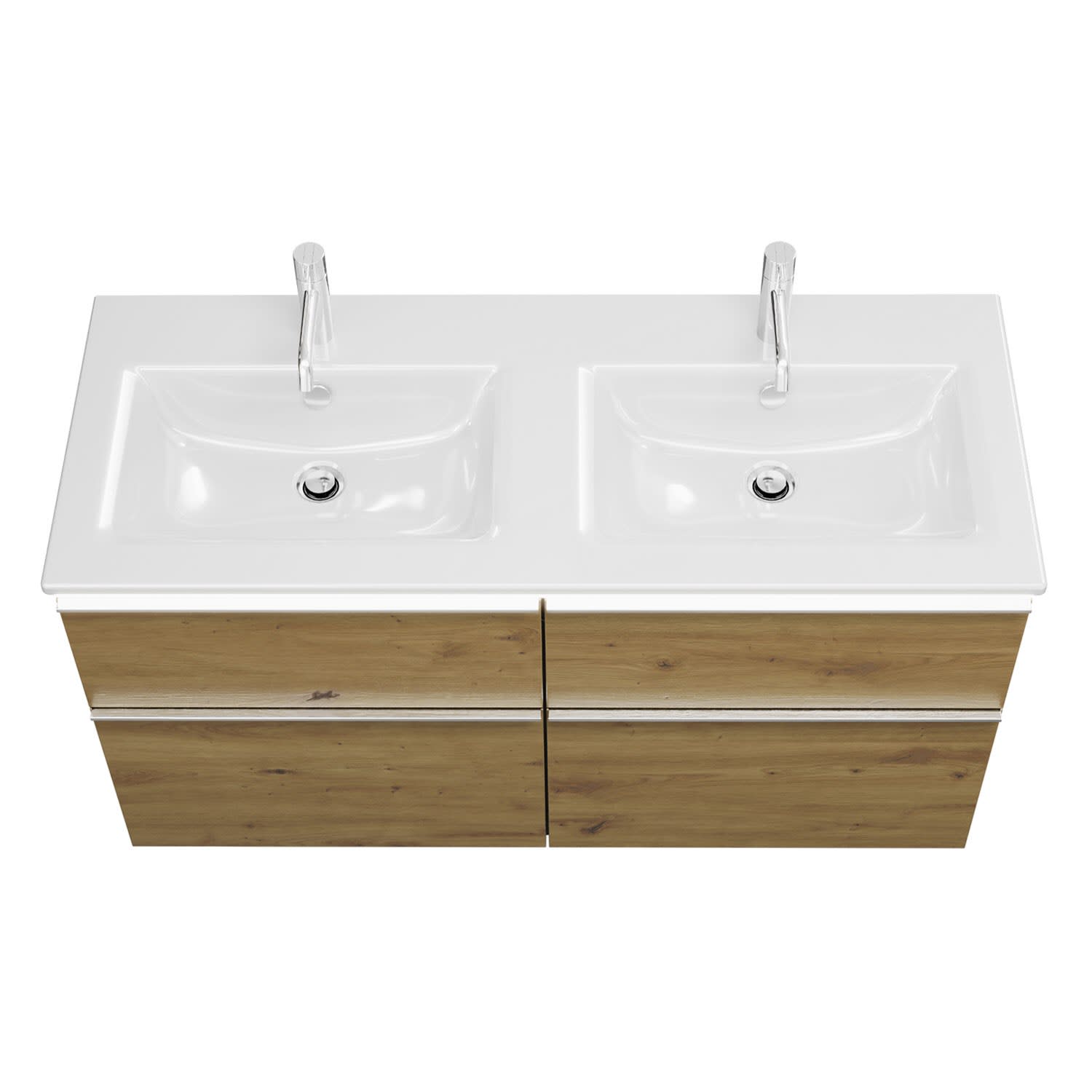 burgbad Eqio Doppelwaschtischkombination mit Keramik-Doppelwaschtisch Slim und LED-Beleuchtung, 122 cm, mit Griffleiste G0251