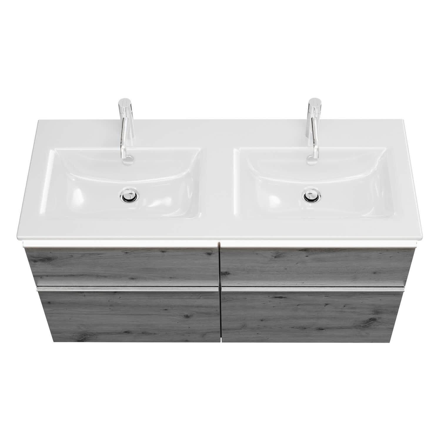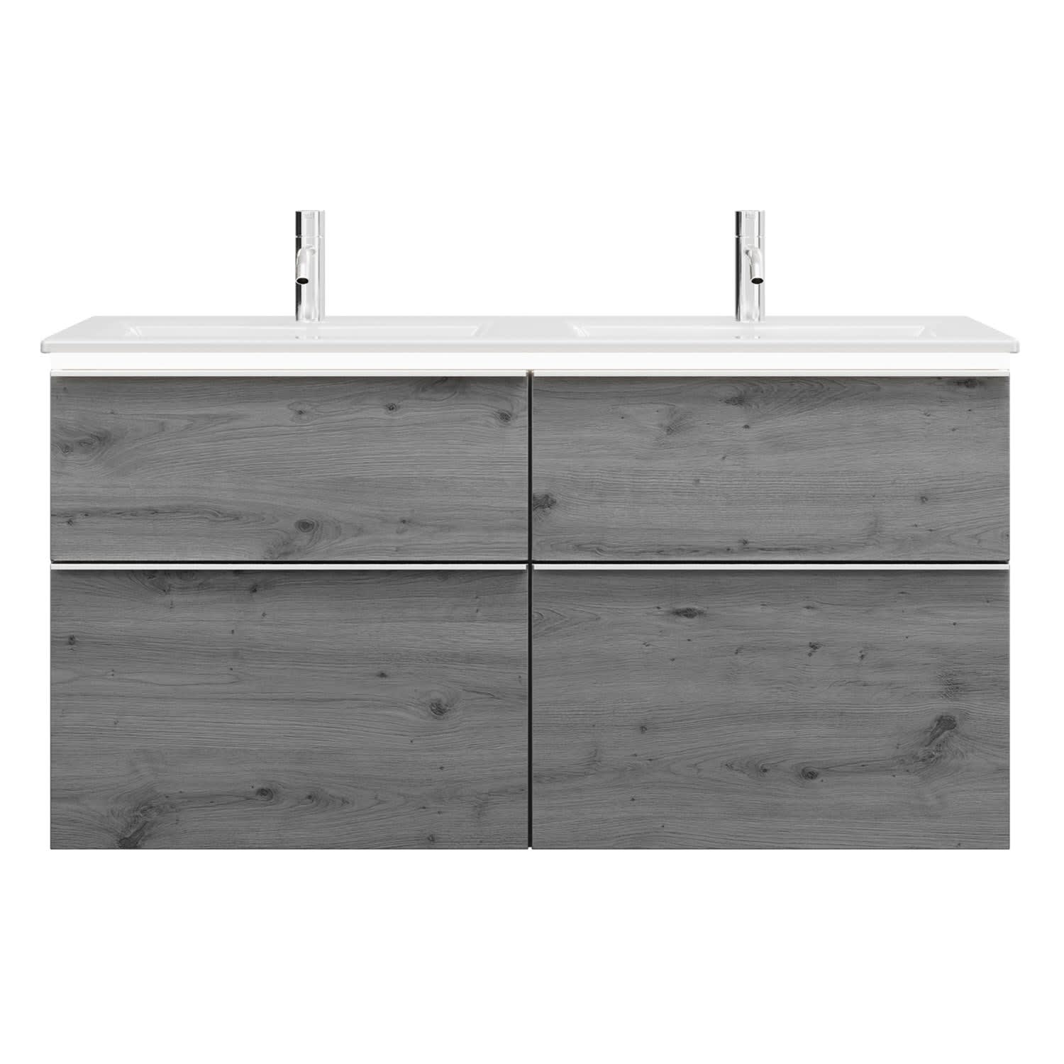 burgbad Eqio Doppelwaschtischkombination mit Keramik-Doppelwaschtisch Slim und LED-Beleuchtung, 122 cm, mit Griffleiste G0251