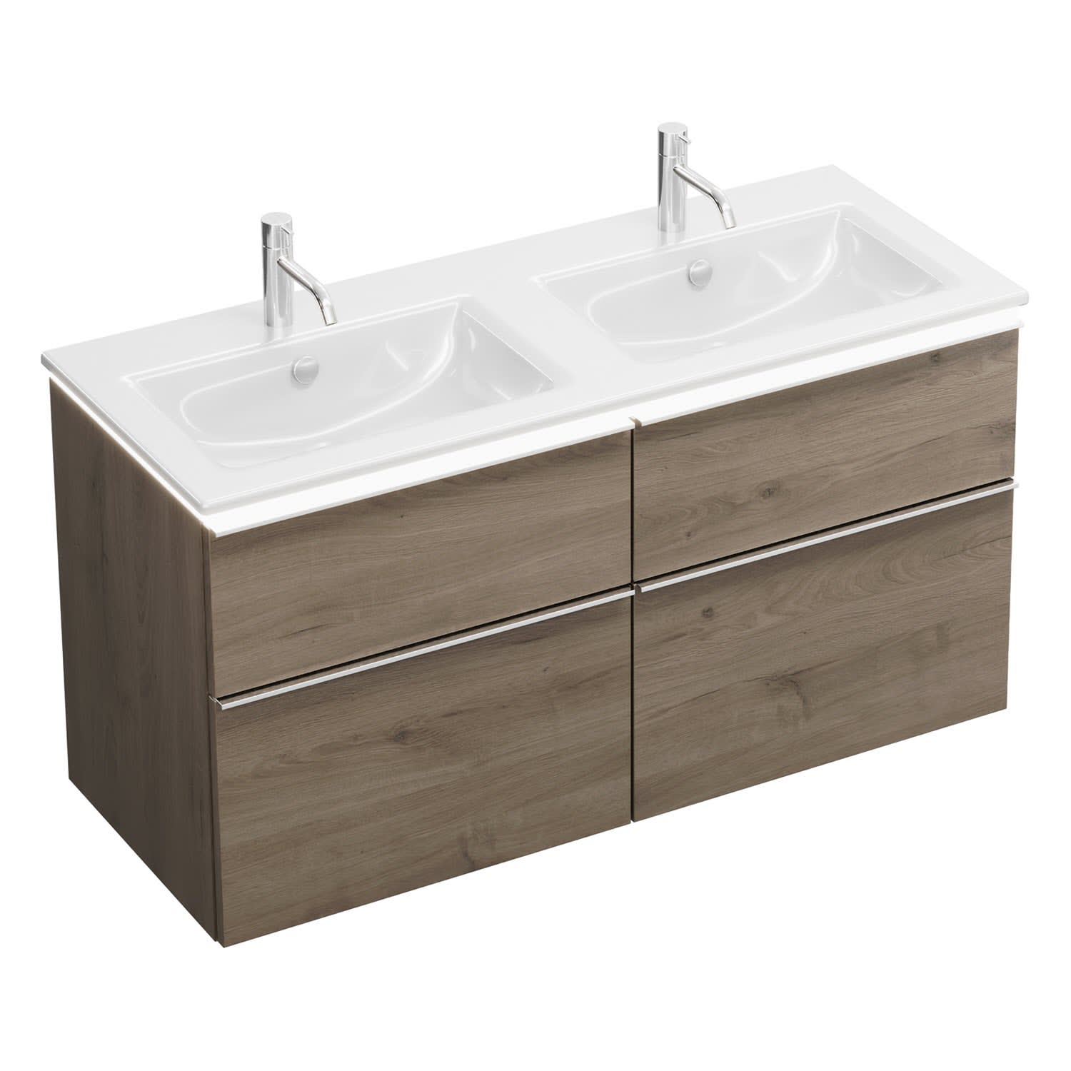 burgbad Eqio Doppelwaschtischkombination mit Keramik-Doppelwaschtisch Slim und LED-Beleuchtung, 122 cm, mit Griffleiste G0251
