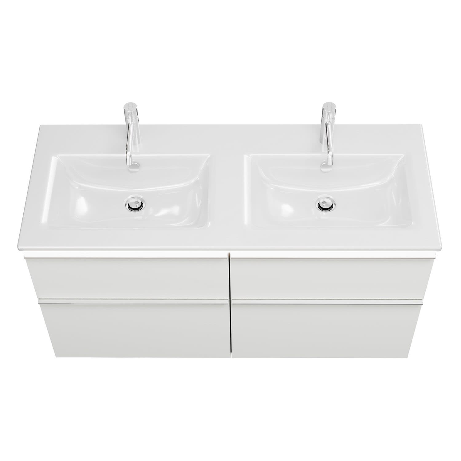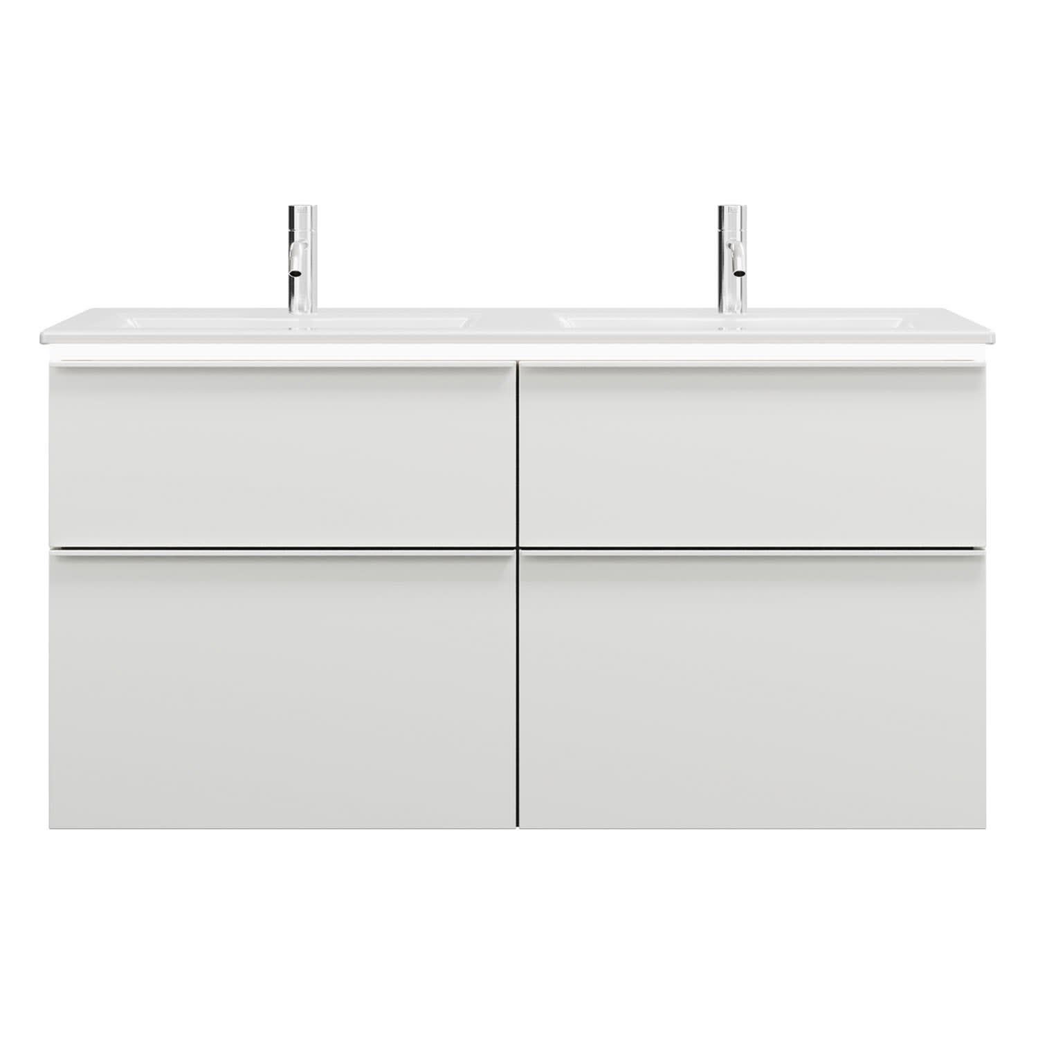 burgbad Eqio Doppelwaschtischkombination mit Keramik-Doppelwaschtisch Slim und LED-Beleuchtung, 122 cm, mit Griffleiste G0251