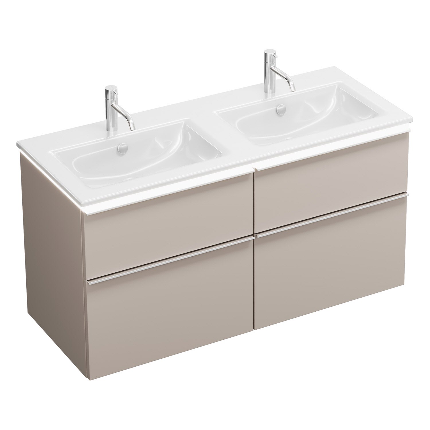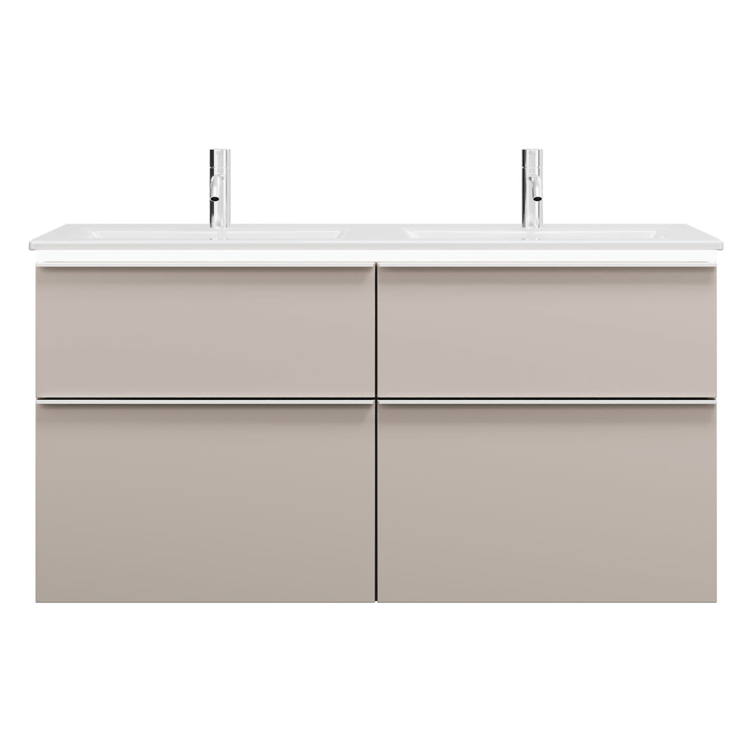 burgbad Eqio Doppelwaschtischkombination mit Keramik-Doppelwaschtisch Slim und LED-Beleuchtung, 122 cm, mit Griffleiste G0251