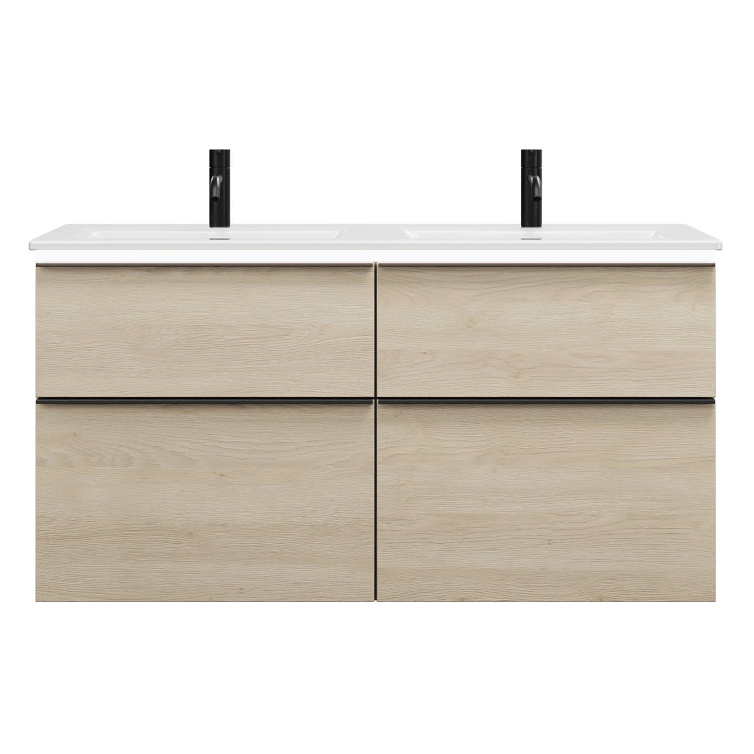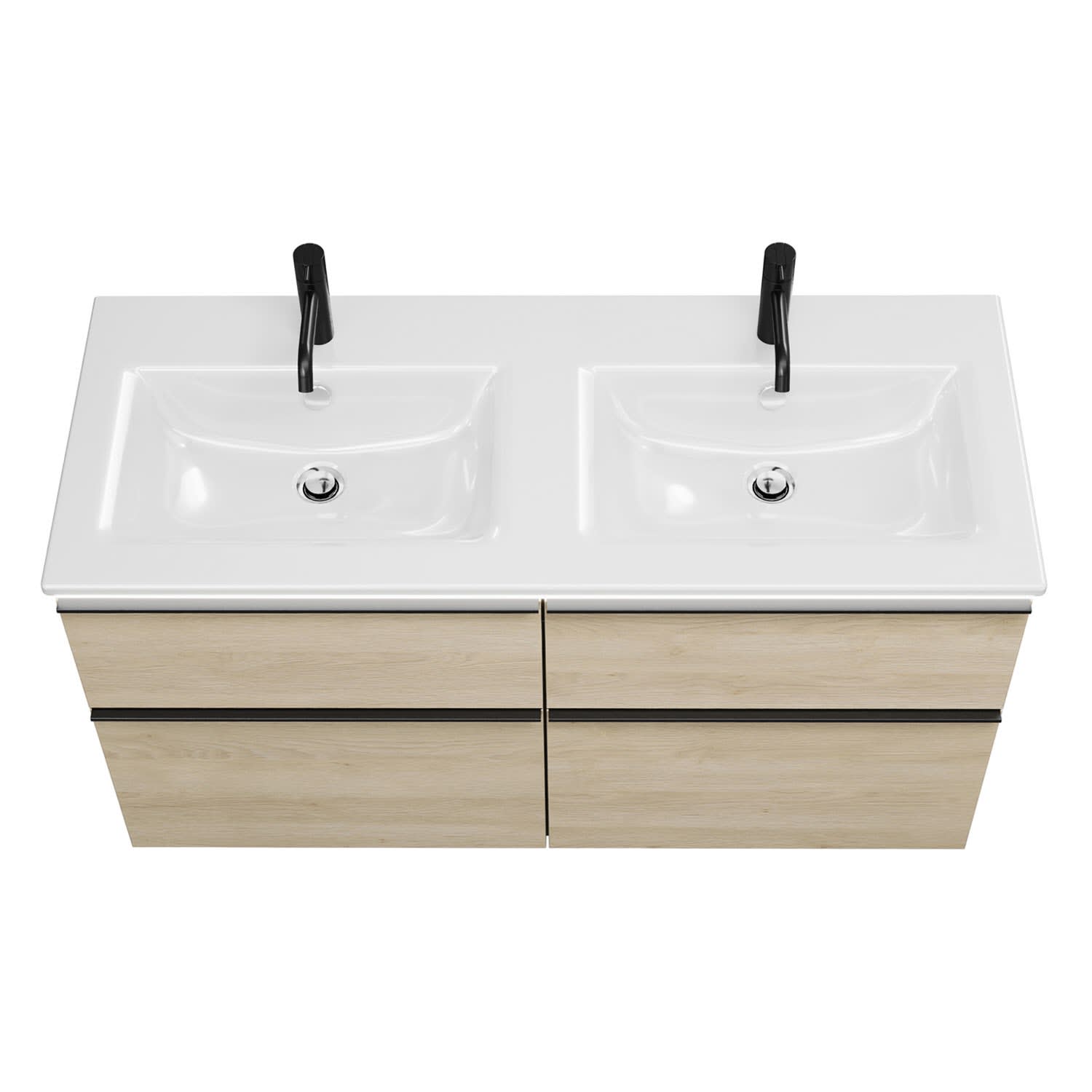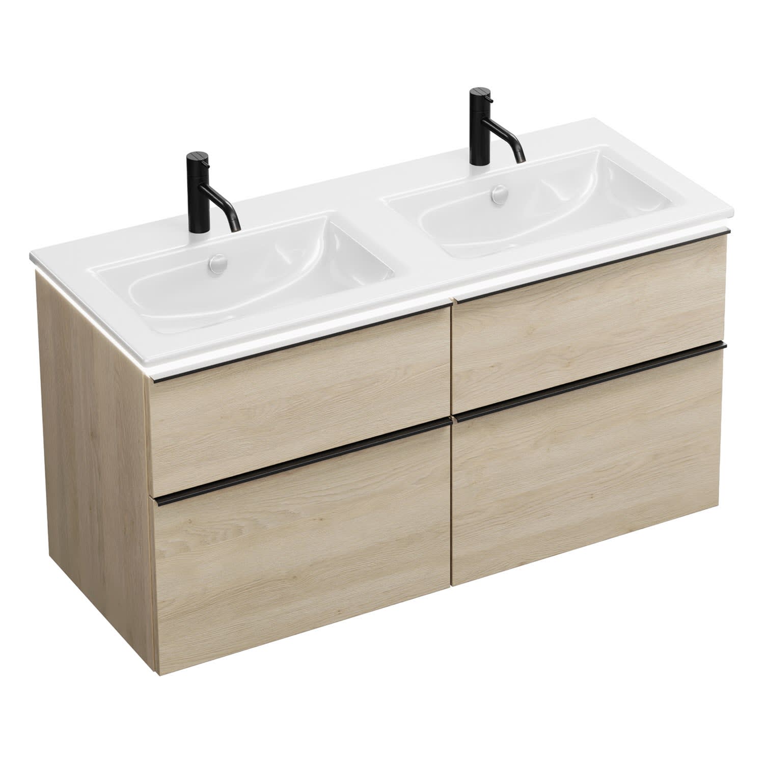 burgbad Eqio Doppelwaschtischkombination mit Keramik-Doppelwaschtisch Slim und LED-Beleuchtung, 122 cm, mit Griffleiste G0252