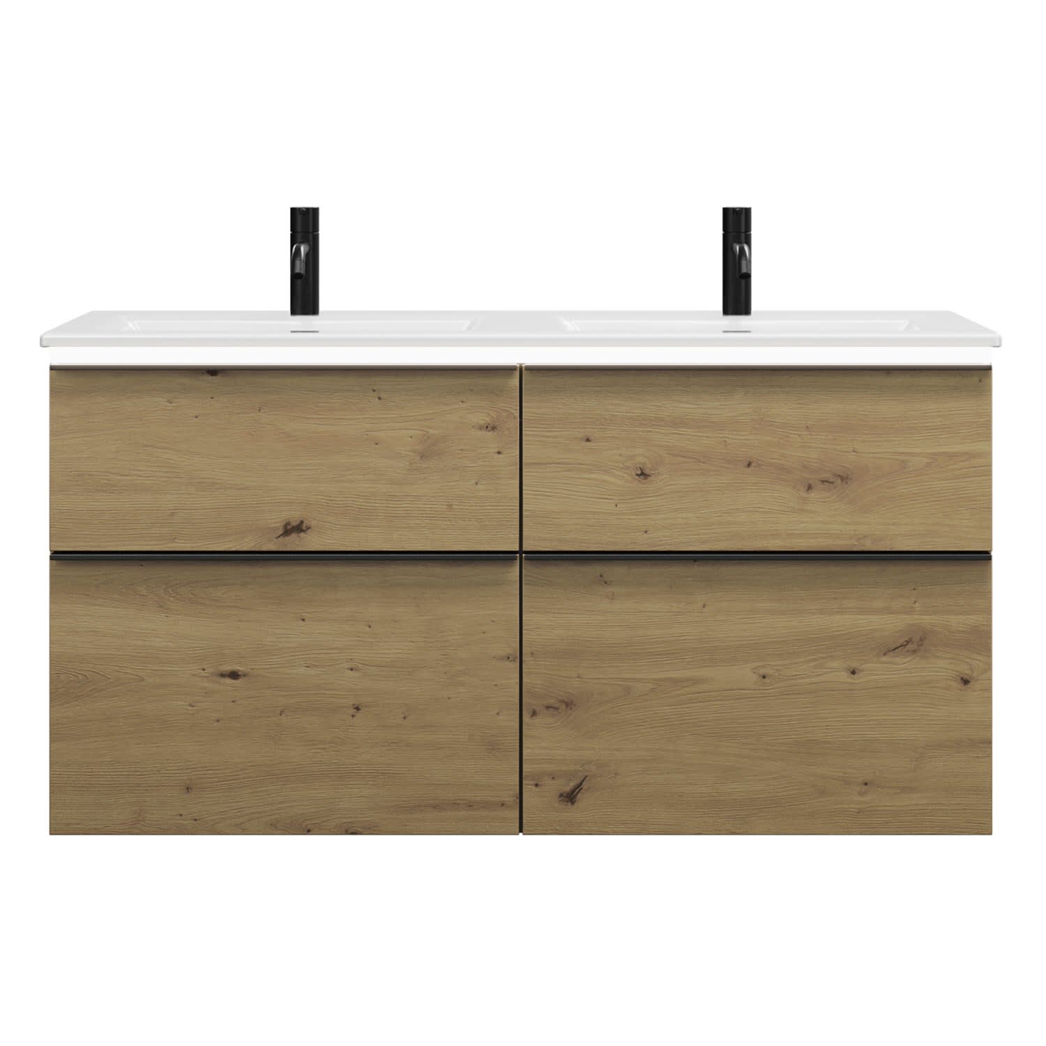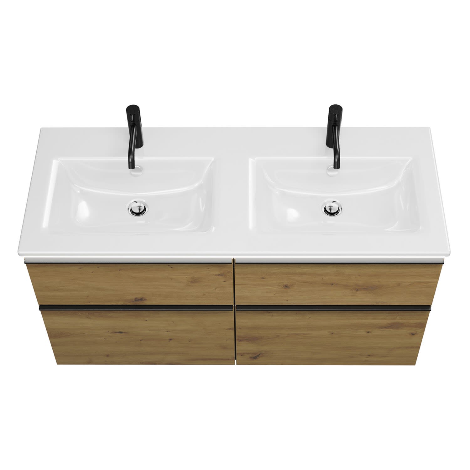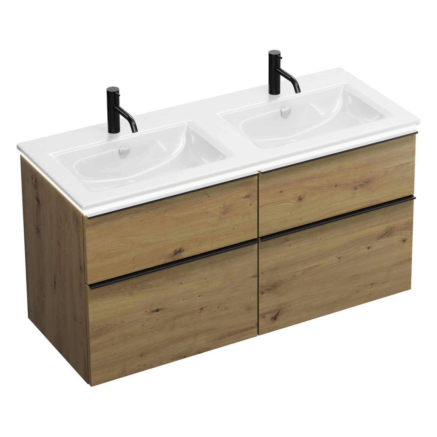 burgbad Eqio Doppelwaschtischkombination mit Keramik-Doppelwaschtisch Slim und LED-Beleuchtung, 122 cm, mit Griffleiste G0252