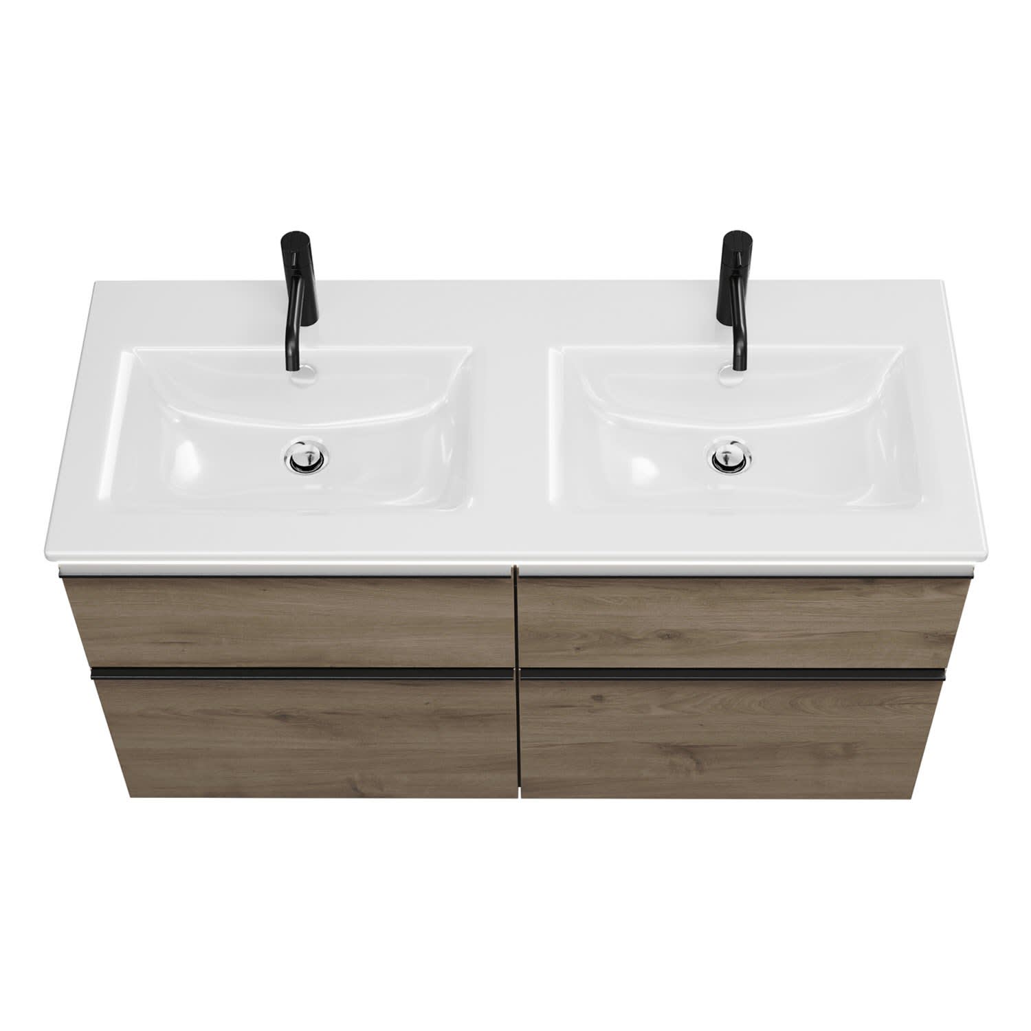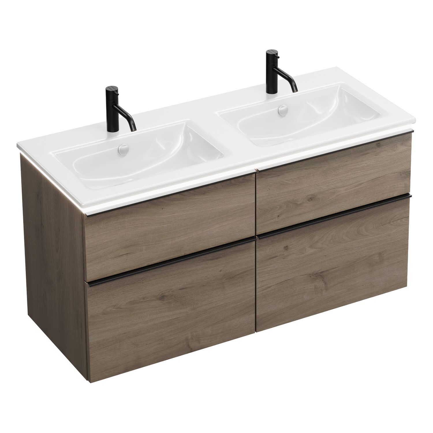 burgbad Eqio Doppelwaschtischkombination mit Keramik-Doppelwaschtisch Slim und LED-Beleuchtung, 122 cm, mit Griffleiste G0252