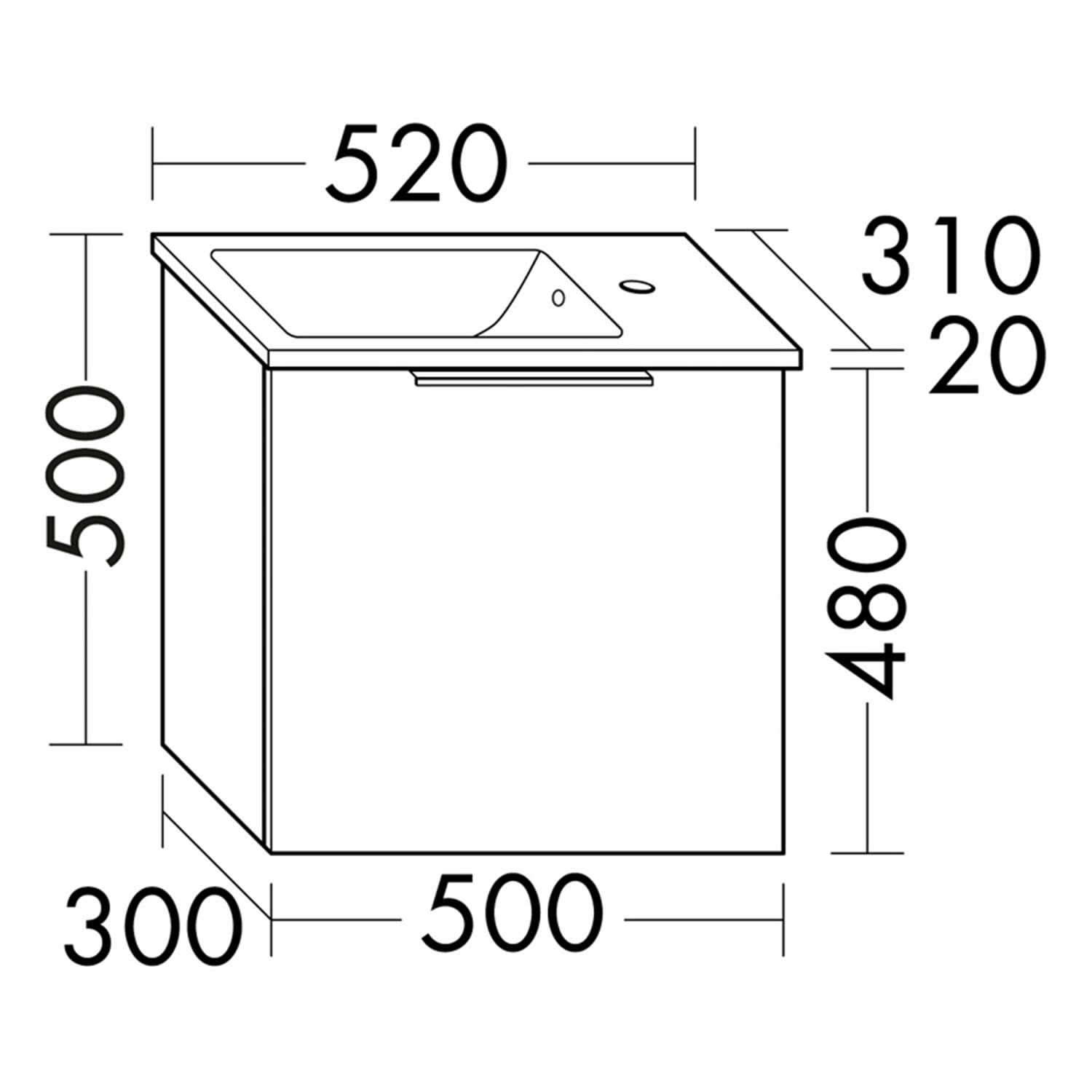 burgbad Eqio Waschtischkombination mit Keramik-Waschtisch Slim, 52 cm, mit Griff G0146