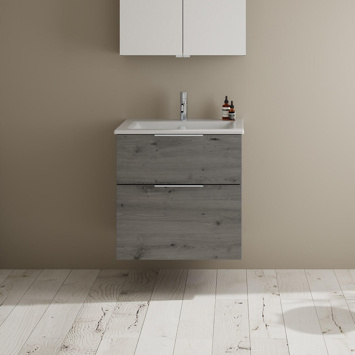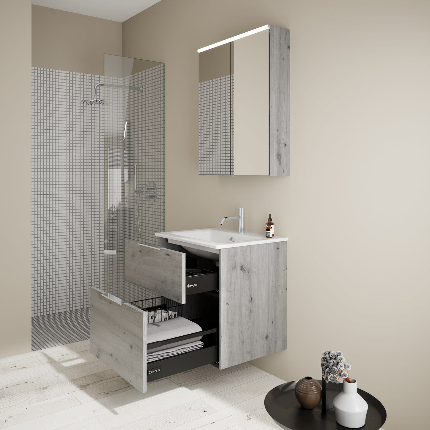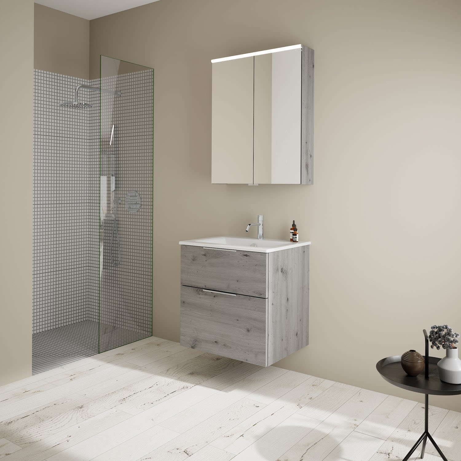 burgbad Eqio Waschtischkombination mit Keramik-Waschtisch Slim, 62 cm, mit Griff G0146
