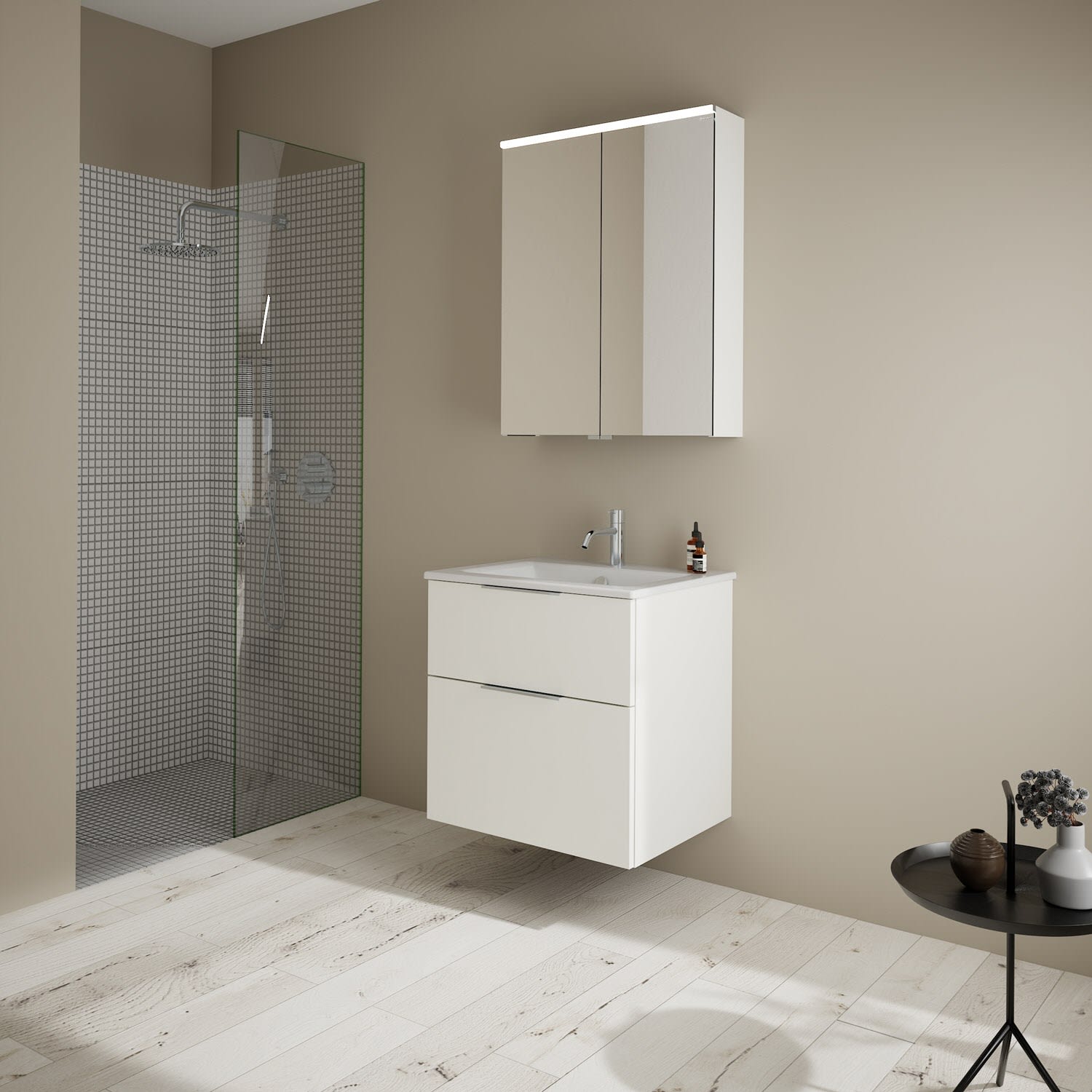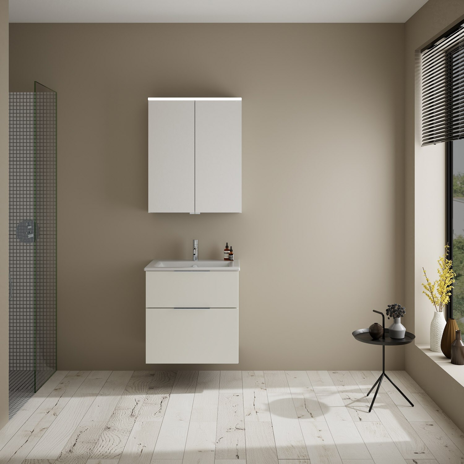 burgbad Eqio Waschtischkombination mit Keramik-Waschtisch Slim, 62 cm, mit Griff G0146