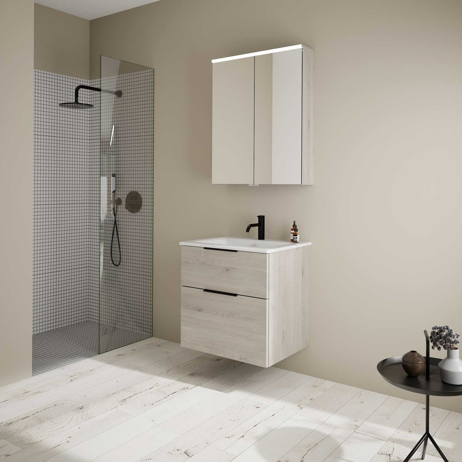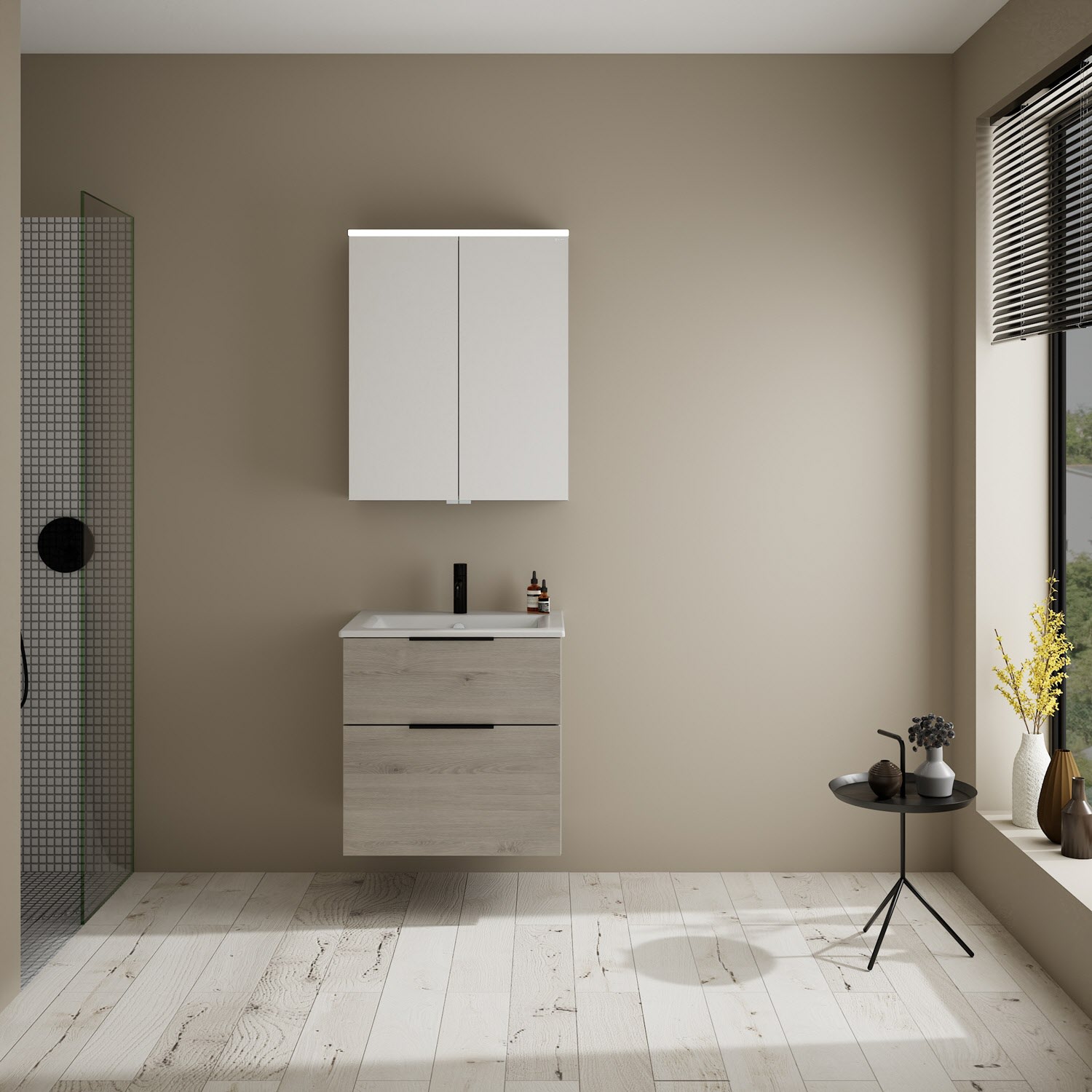 burgbad Eqio Waschtischkombination mit Keramik-Waschtisch Slim, 62 cm, mit Griff G0200