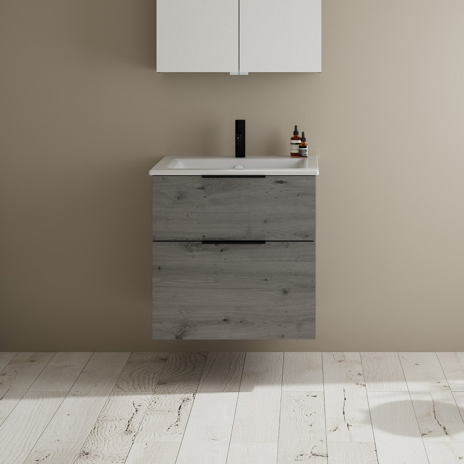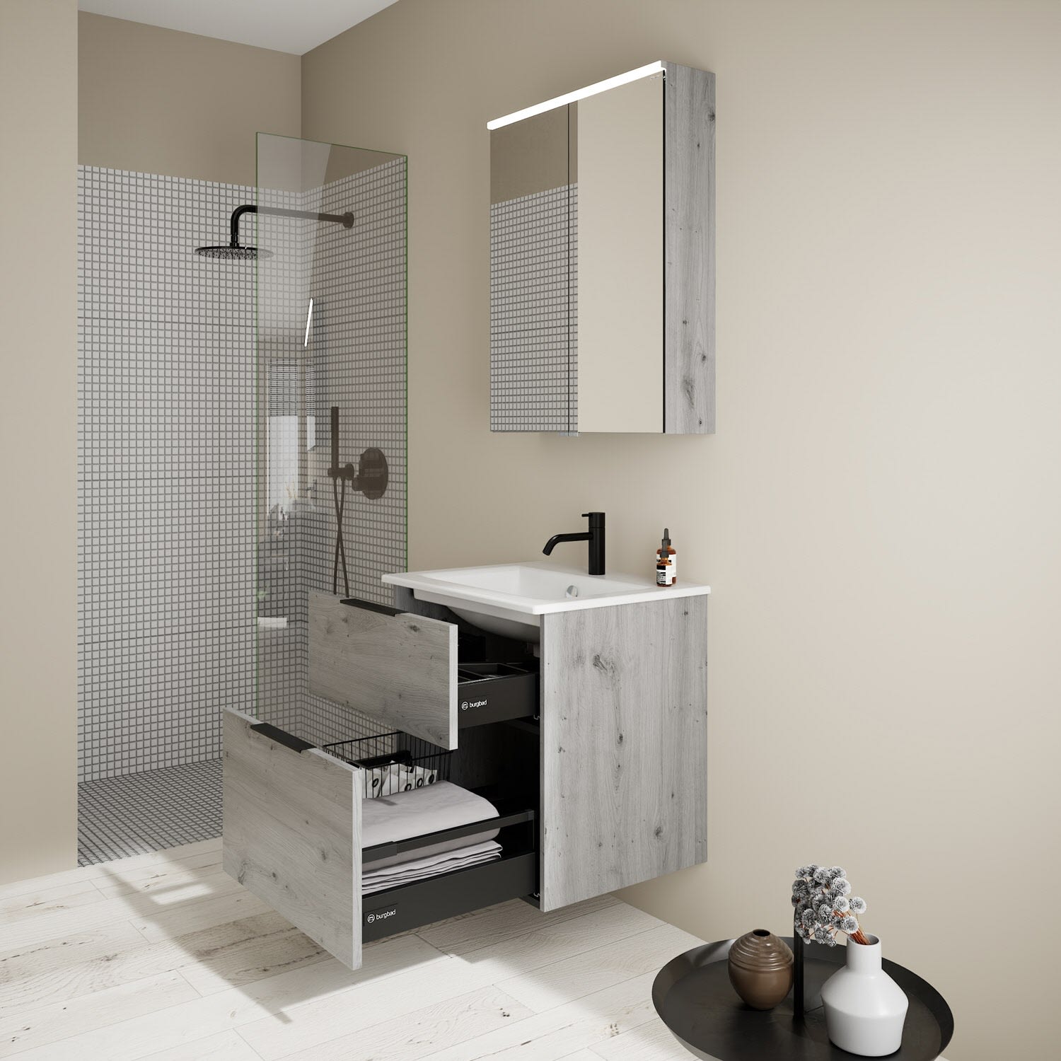 burgbad Eqio Waschtischkombination mit Keramik-Waschtisch Slim, 62 cm, mit Griff G0200