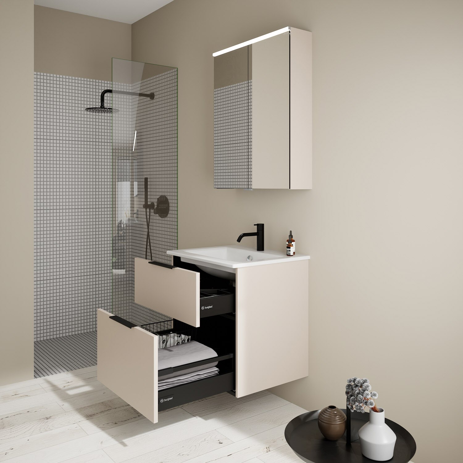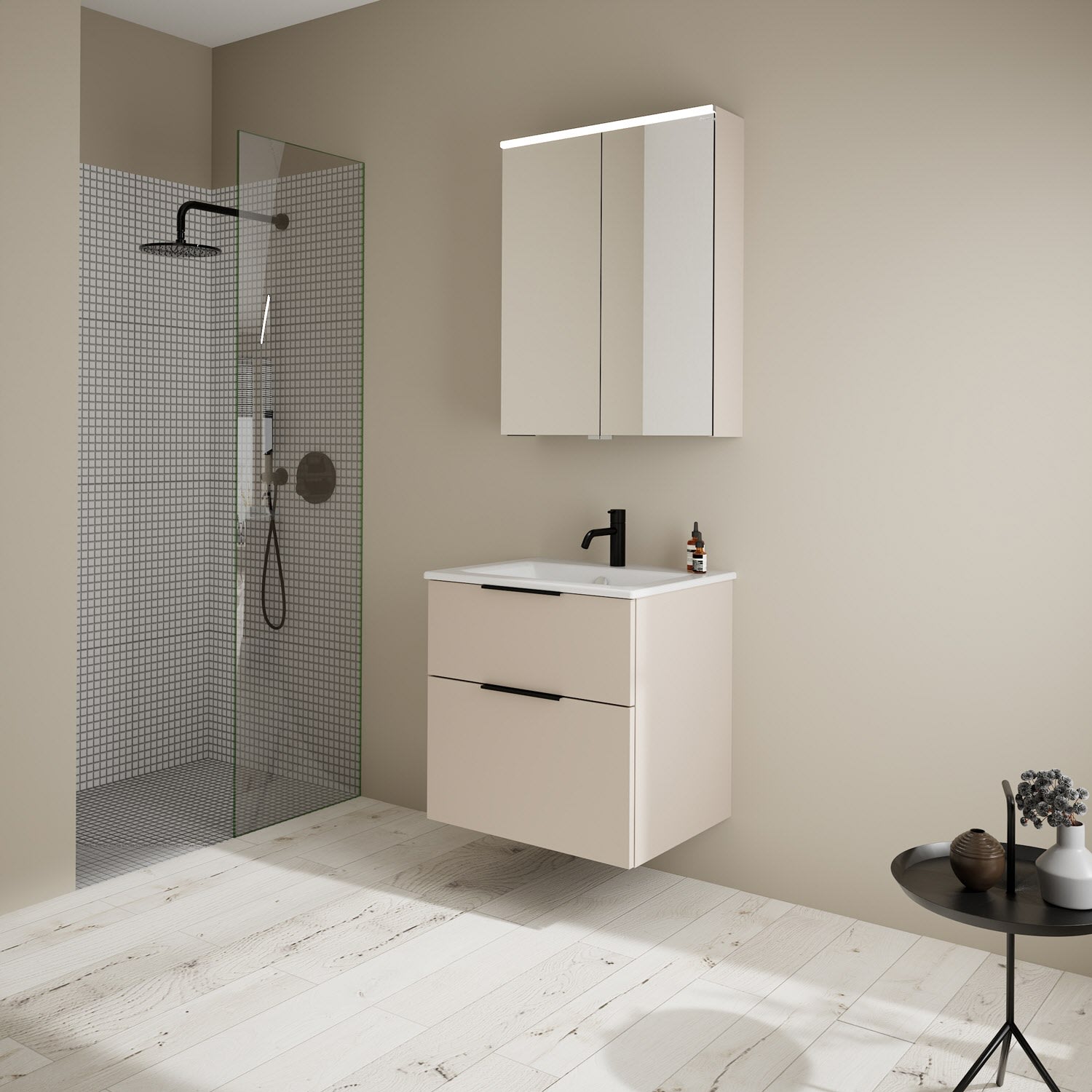 burgbad Eqio Waschtischkombination mit Keramik-Waschtisch Slim, 62 cm, mit Griff G0200