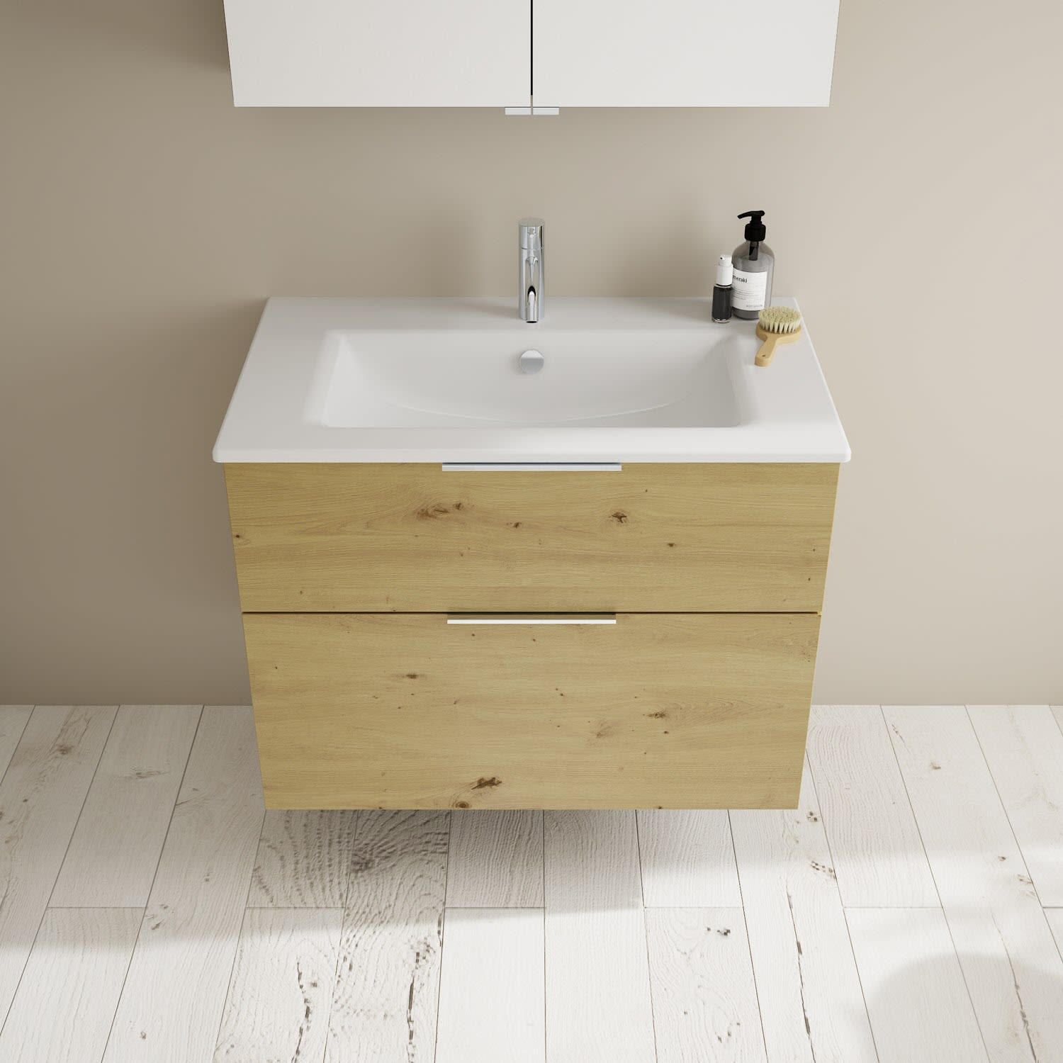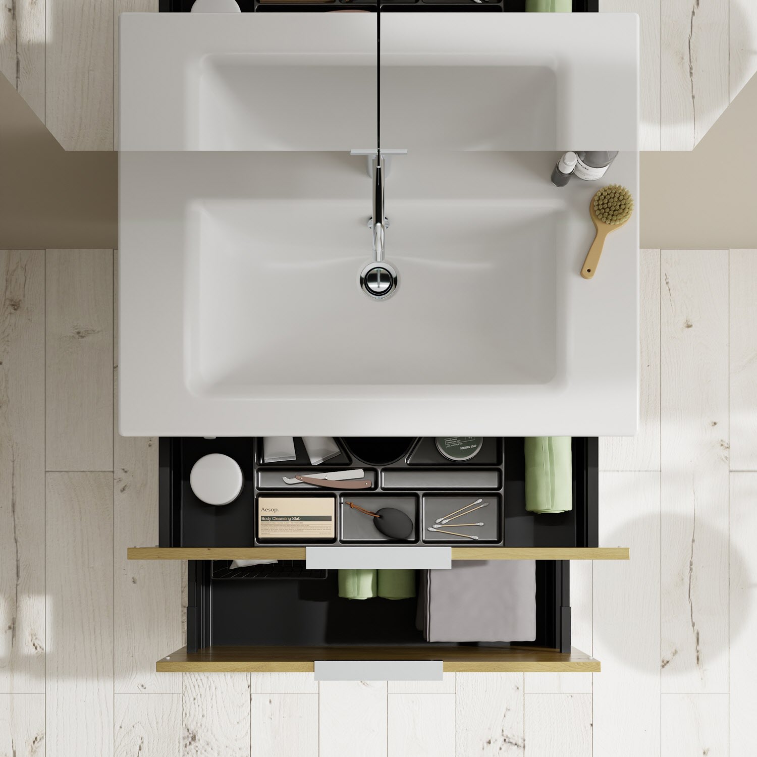 burgbad Eqio Waschtischkombination mit Keramik-Waschtisch Slim, 82 cm, mit Griff G0146