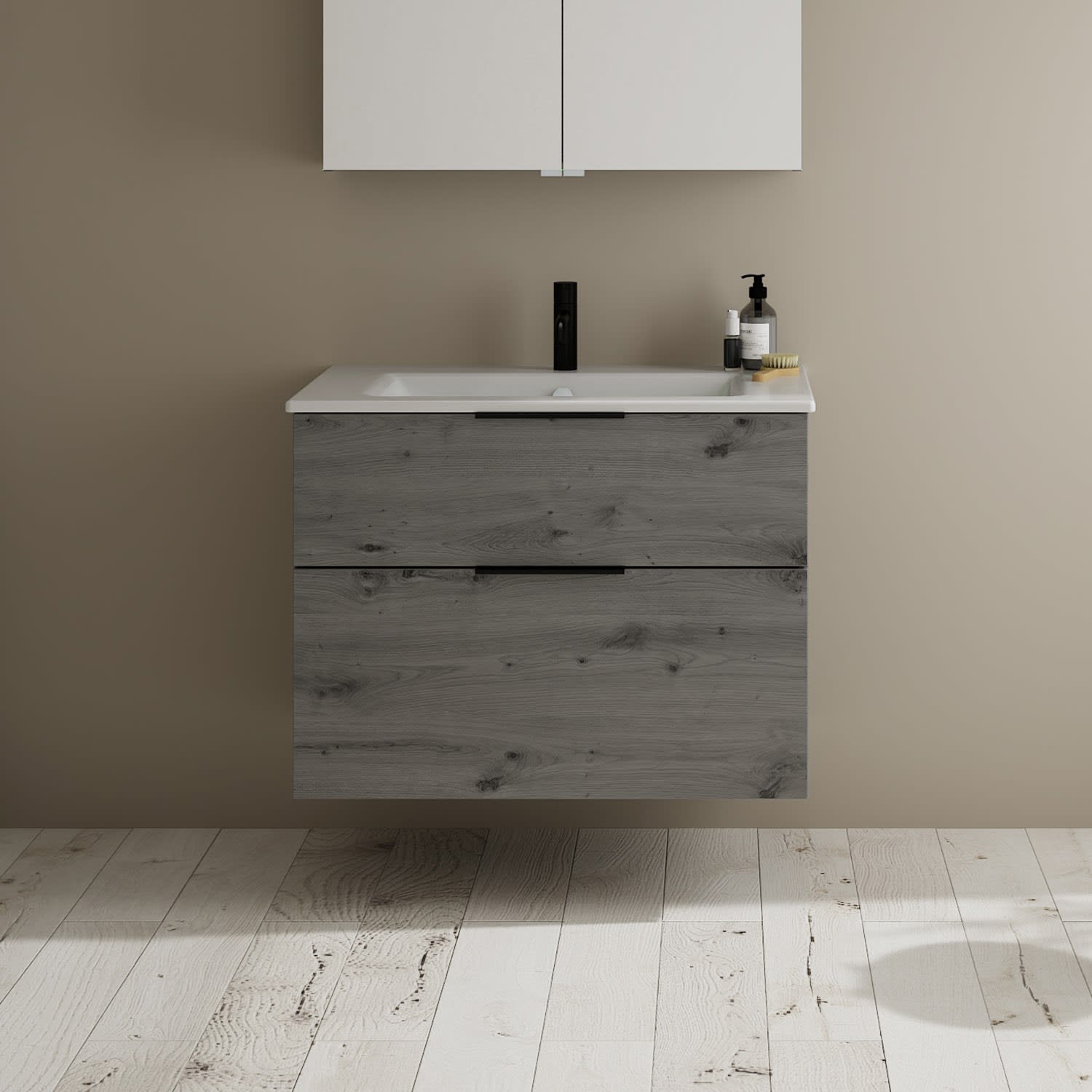 burgbad Eqio Waschtischkombination mit Keramik-Waschtisch Slim, 82 cm, mit Griff G0200